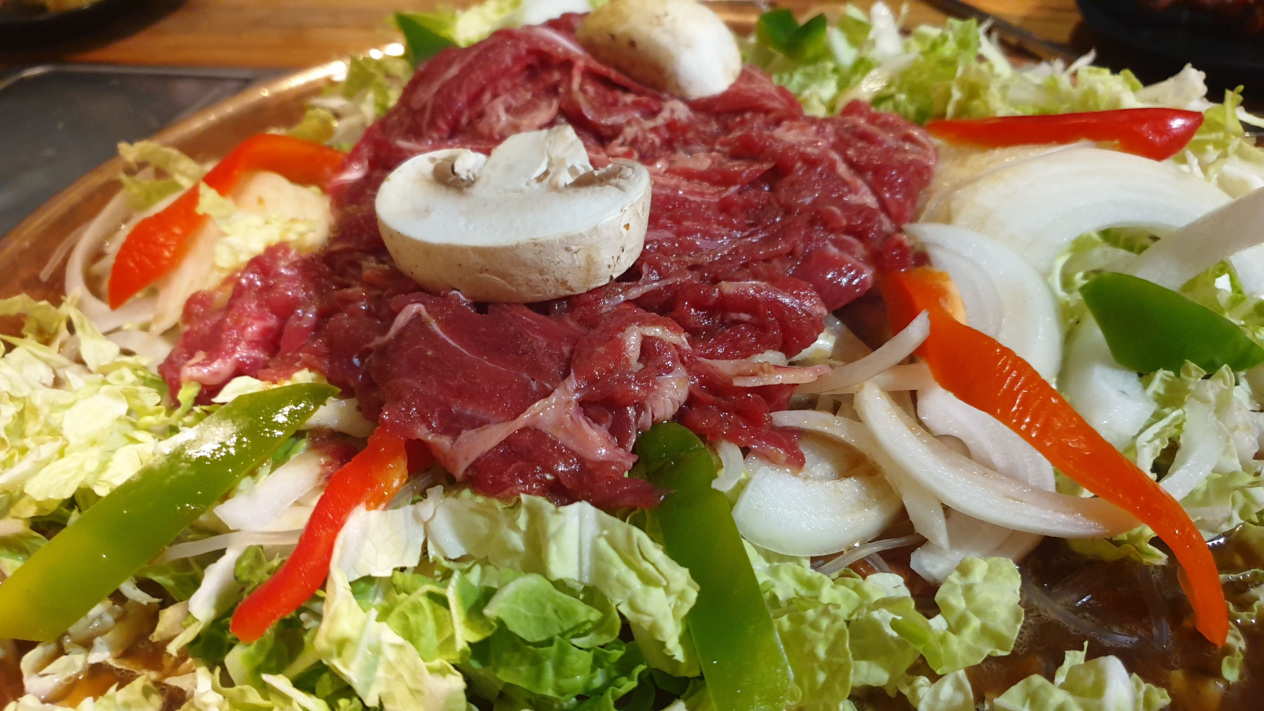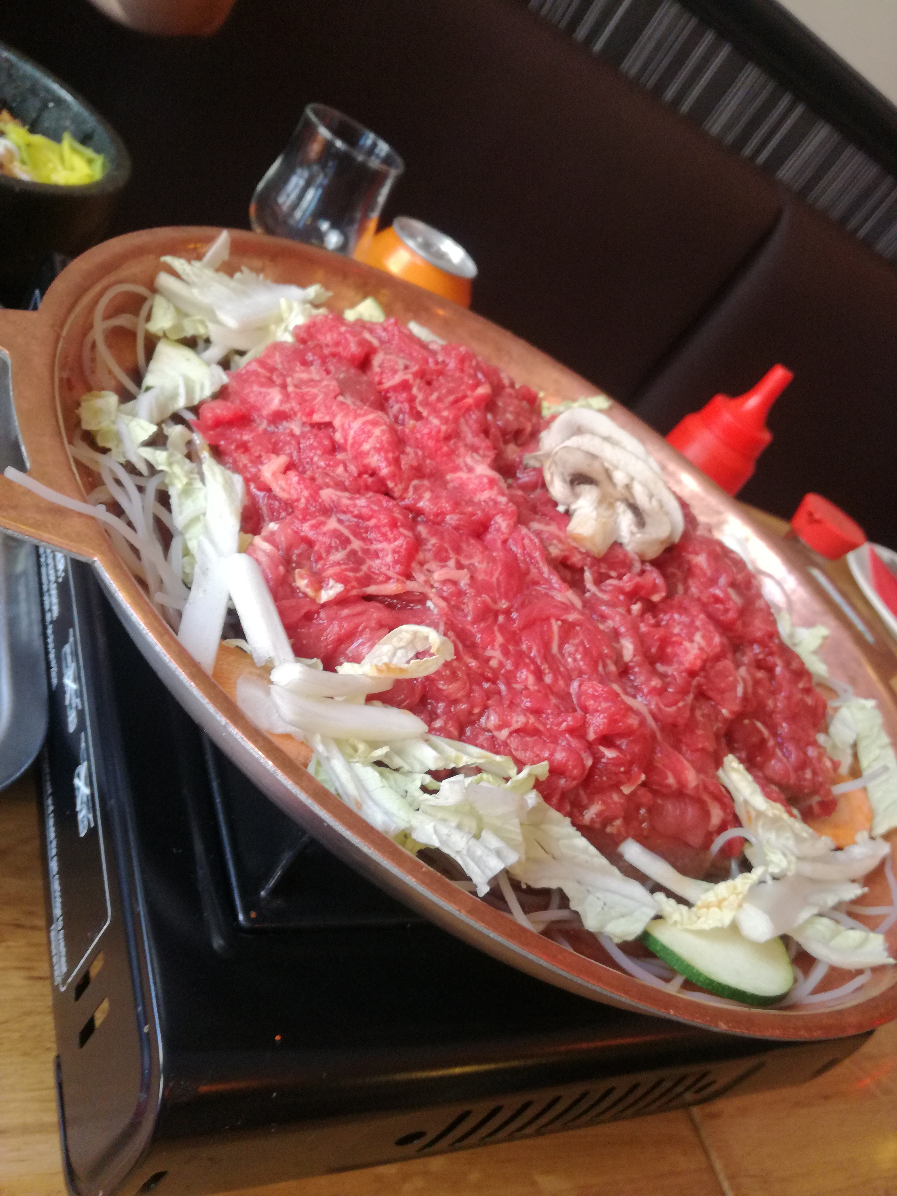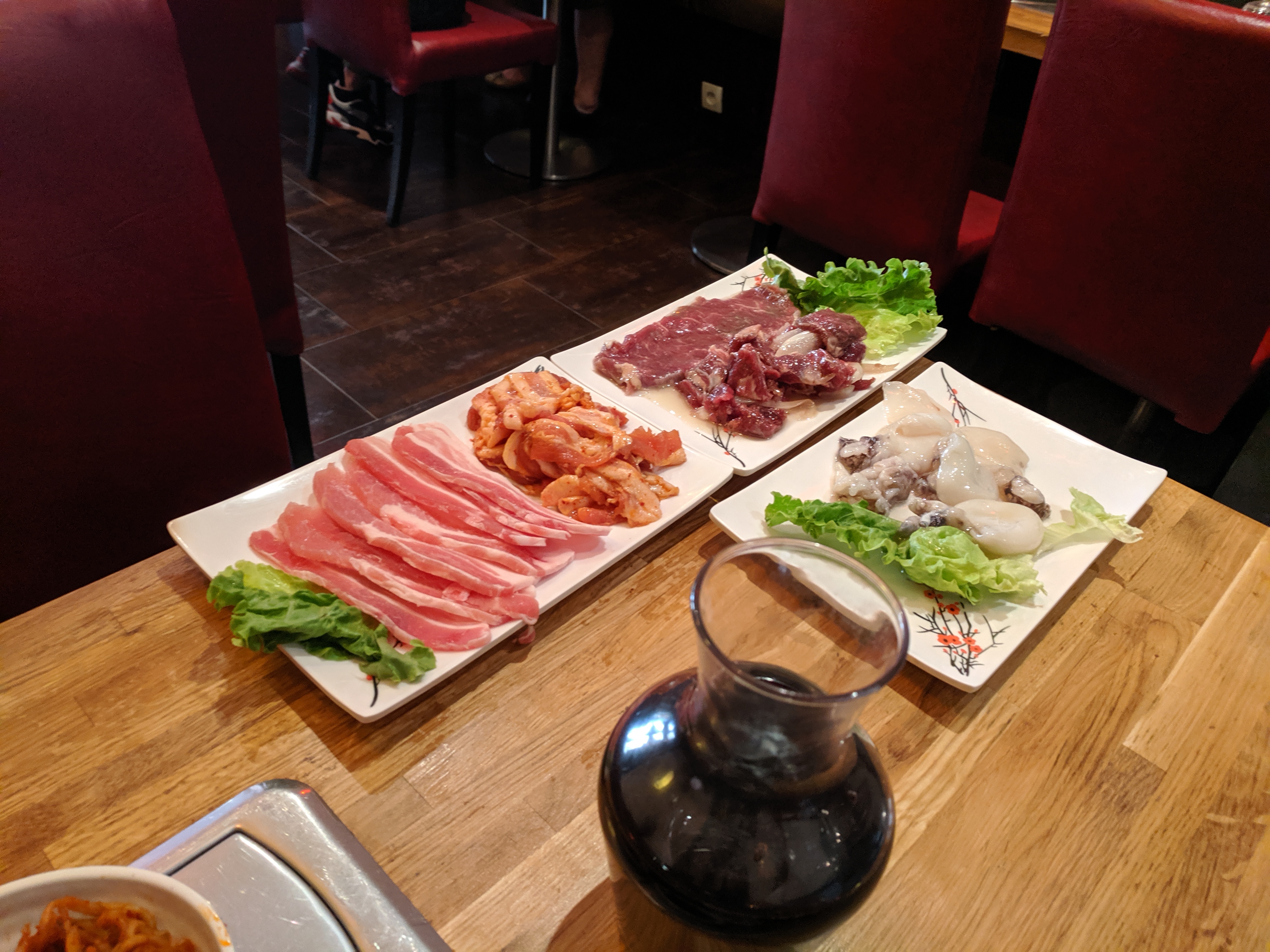 Super, on a très bien mangé, nous avons choisit le menu a volonté et nous avons été bien servi. Beaucoup de viande et de poisson. C'était surprenant pour un menu a volonté ou en général les base carné sont dissous dans des océans de nouilles ou de légumes. a part les brochettes, nous avons tout cuit sur le grill au milieu de la table, il y a des ventilation pour aspirer les fumées. Les portions servies sur demande sont généreuse, très goutue, servie assez rapidement ( contrairement à ce qu'on peut lire sur d'autres commentaires) Très différent des restaurant asiatique/chinois qu'on a l'habitude de voir. Je ne pourrais pas attester de l'authenticité coréenne mais on y trouve des plats épicé, fermenté, des sauces cacahuètes... tout un tas de saveurs inconnu dans les restaurant chinois! Avec 100% des clients qui parlaient une langue Asiatique autour de nous, et une serveuse qui parlait pas français, on se serait cru à l'autre bout du globe!! Je recommande le boeuf au barbecue servie sur un plat qui va au grill avec du chou et un bouillon de vermicelle sur les bords du plat, c'était absolument délicieux.