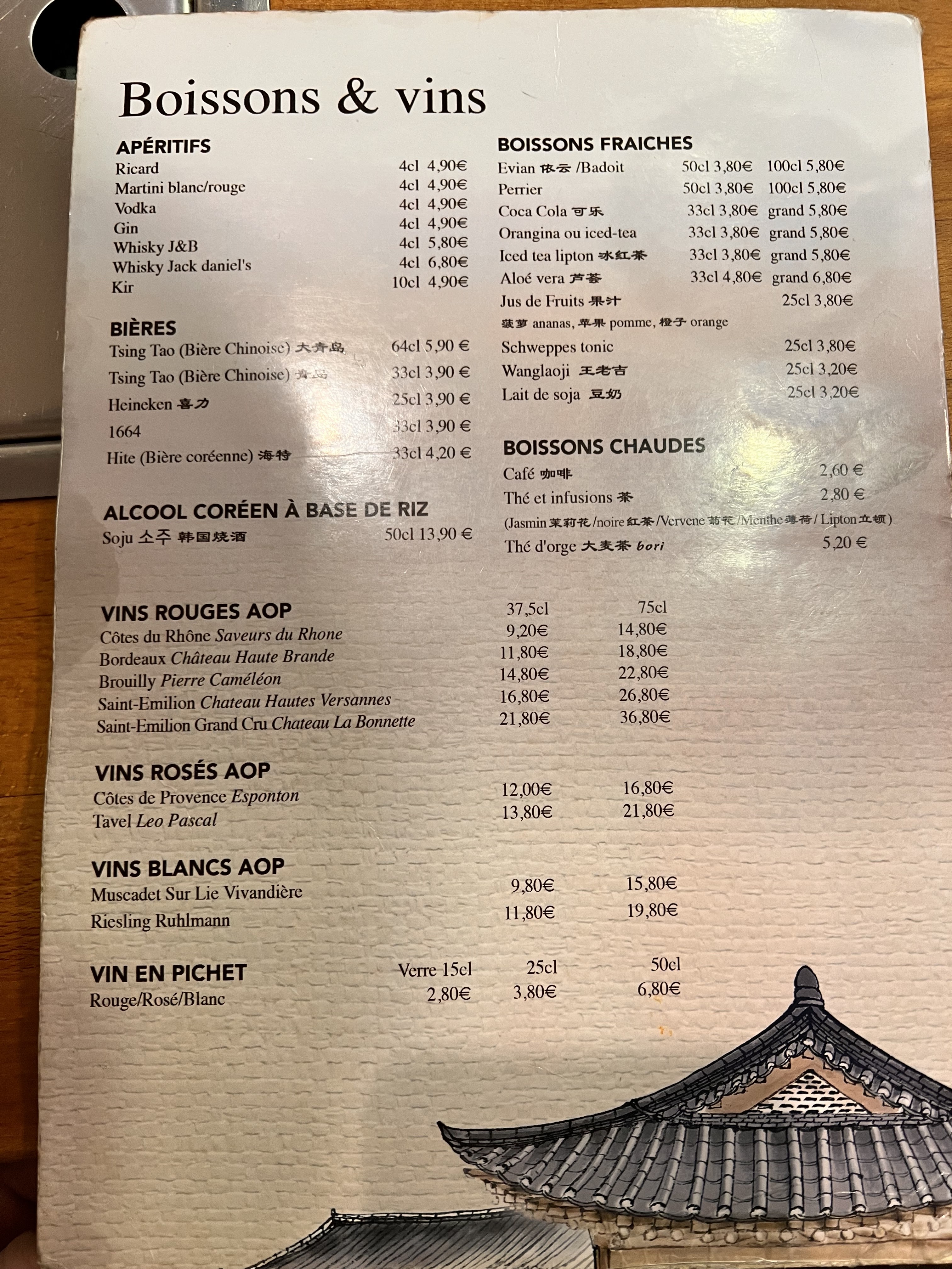 Bbq coréen à 28€ excellent rapport qualité prix si vous êtes un gros mangeur. De l’extérieur le resto ne paie pas de mine mais c’est super bon et le personnel est trop gentil :) J’y retournerai! En plus il y a des salles pour faire du karaoke en bas mais je n’ai pas encore testé.