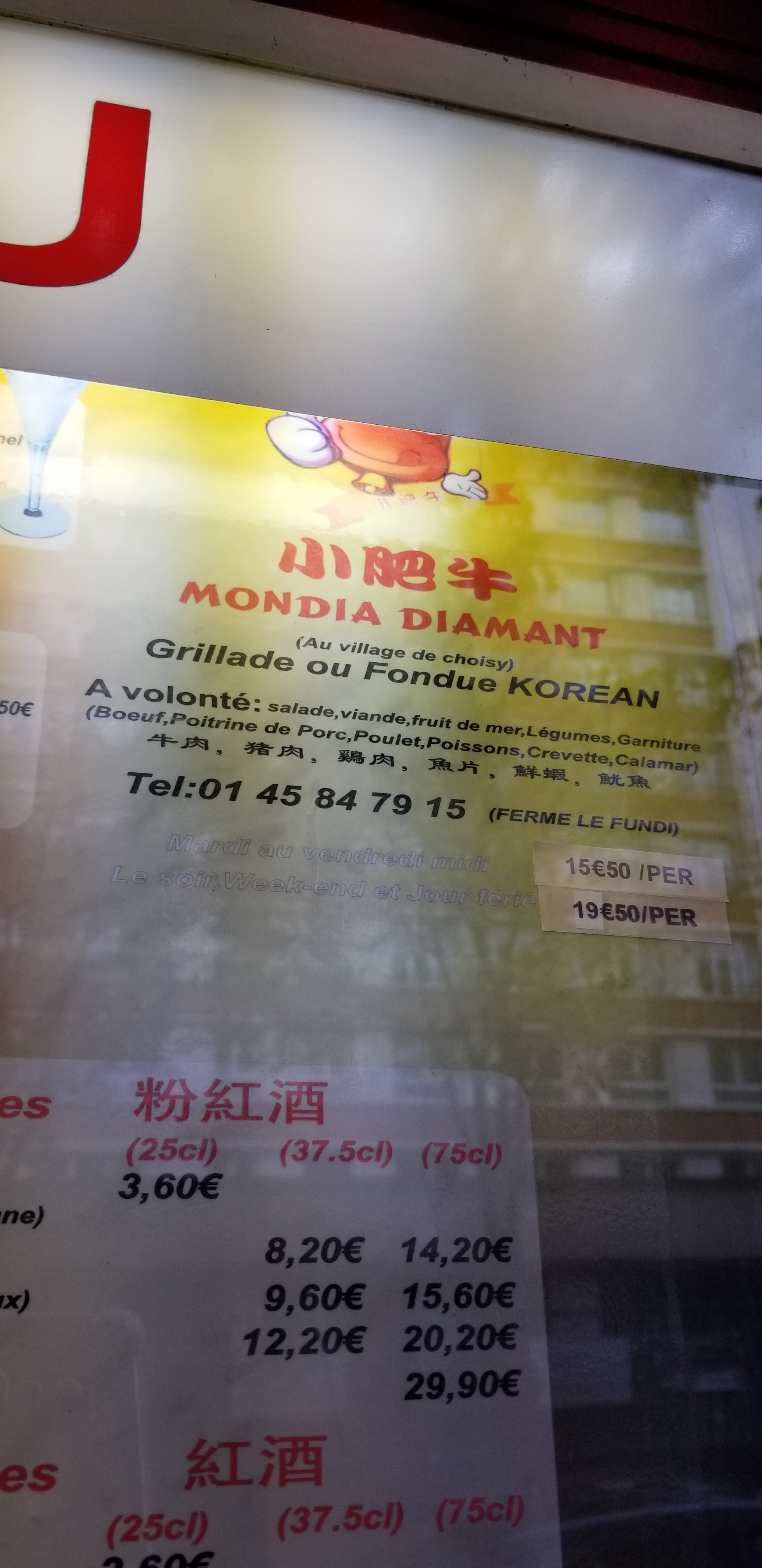 Très très bon restaurant 👍. On y mange de la fondue et du barbecue coréen à volonté, pour un prix vraiment pas chère ! Un incontournable.