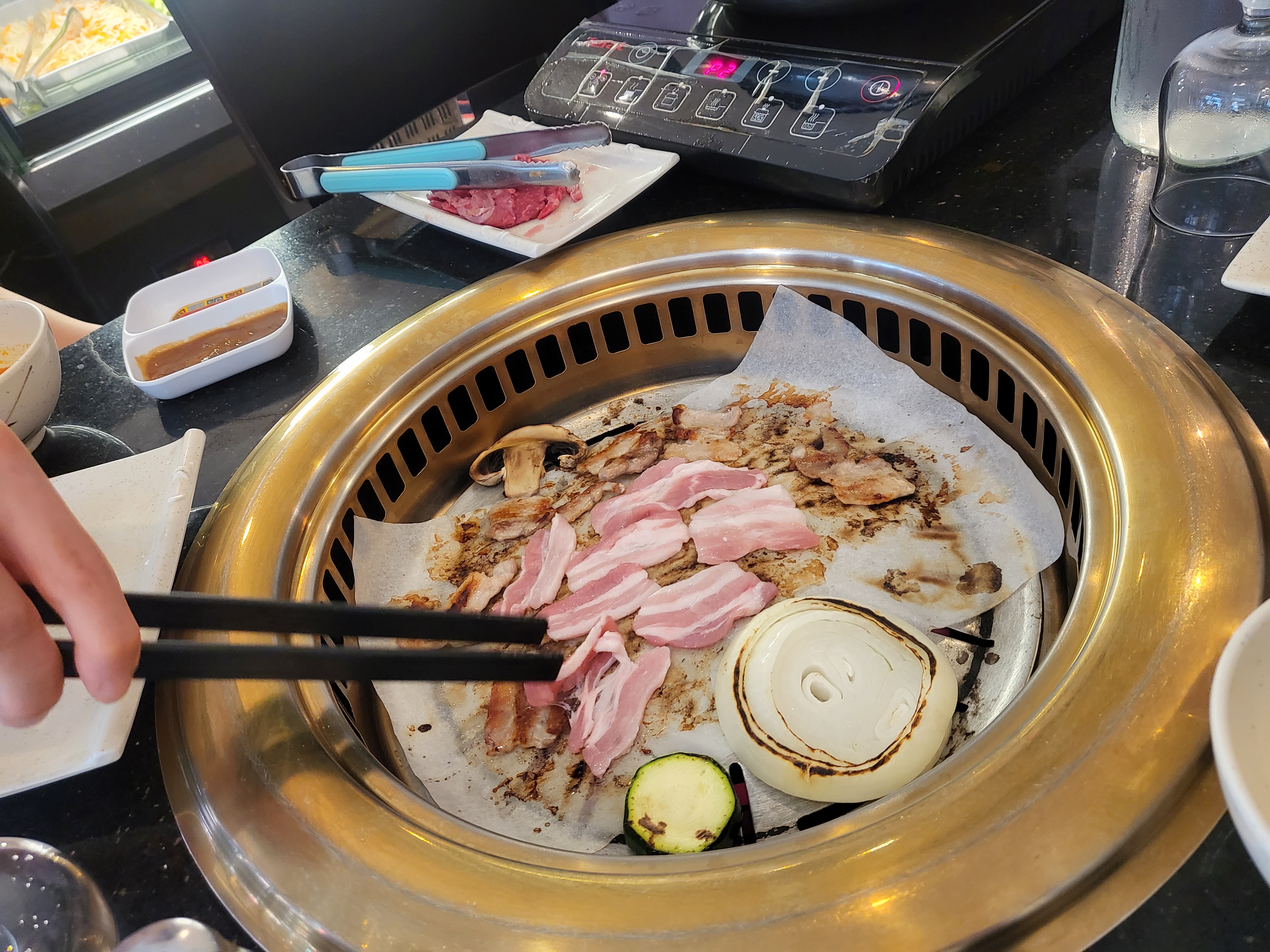 Barbecue coréen tout à fait correct. Avec pas mal de choix de viandes ou fruits de mer. Mais la salle étant petite, et souvent pleine, les tables sont bien ressérrées. Pas terrible pour poser toutes les petites assiettes