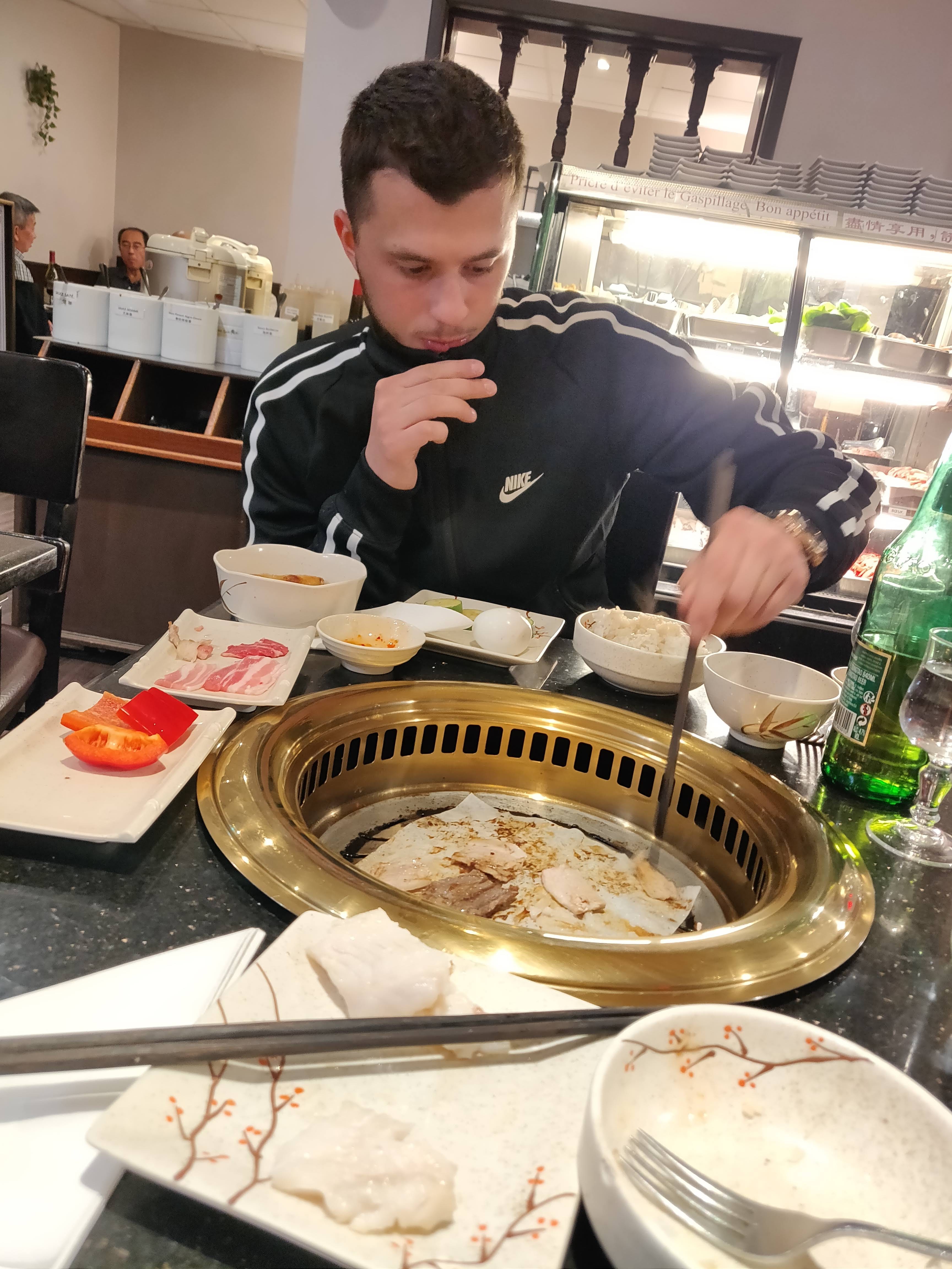 Sympa de faire cuir ses aliments soit même. Par contre le prix ne comprend que le buffet à cuir. Pas de desserts. Restaurant trop petits pour le nombre de tables, clients l'un sur l'autre, c'est oppressant et inquiétant en ce temps de Covid !