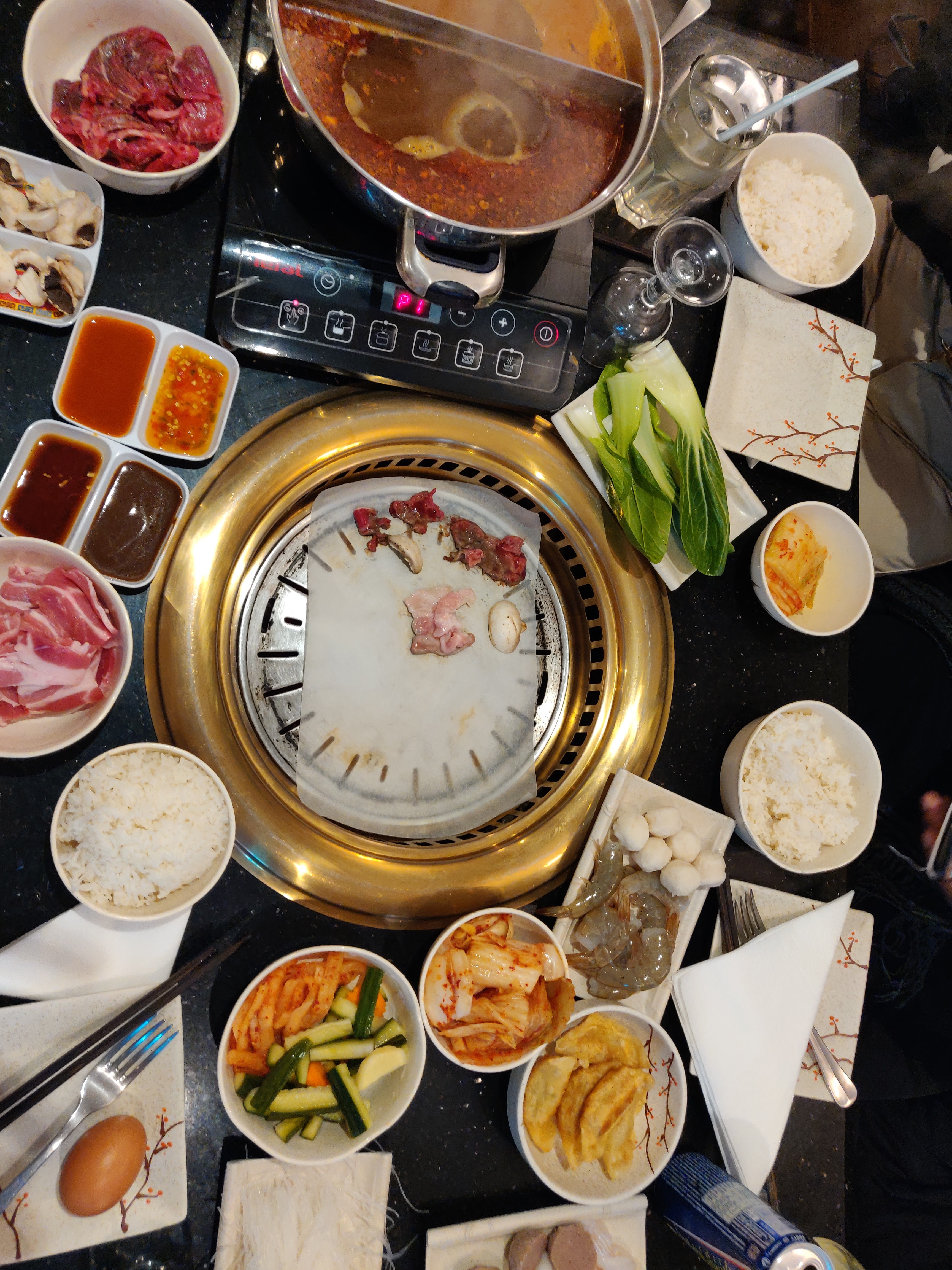 Ce restaurant propose des barbecues coréens et des fondues chinoises. N'ayant testé que le deuxième, mon commentaire ne porte que sur la fondue. Il y a un buffet où se servir soi-même, avec un grand choix d'ingrédients à mettre dans sa fondue (légumes, viande, boulettes de poisson etc.), mais rien n'est terrible en goût. La qualité n'y est pas. Je pense qu'il y a d'autres restaurants de fondue chinoise dans la même rue avec une meilleure qualité d'ingrédients, donc passez votre chemin si vous voulez manger une fondue.