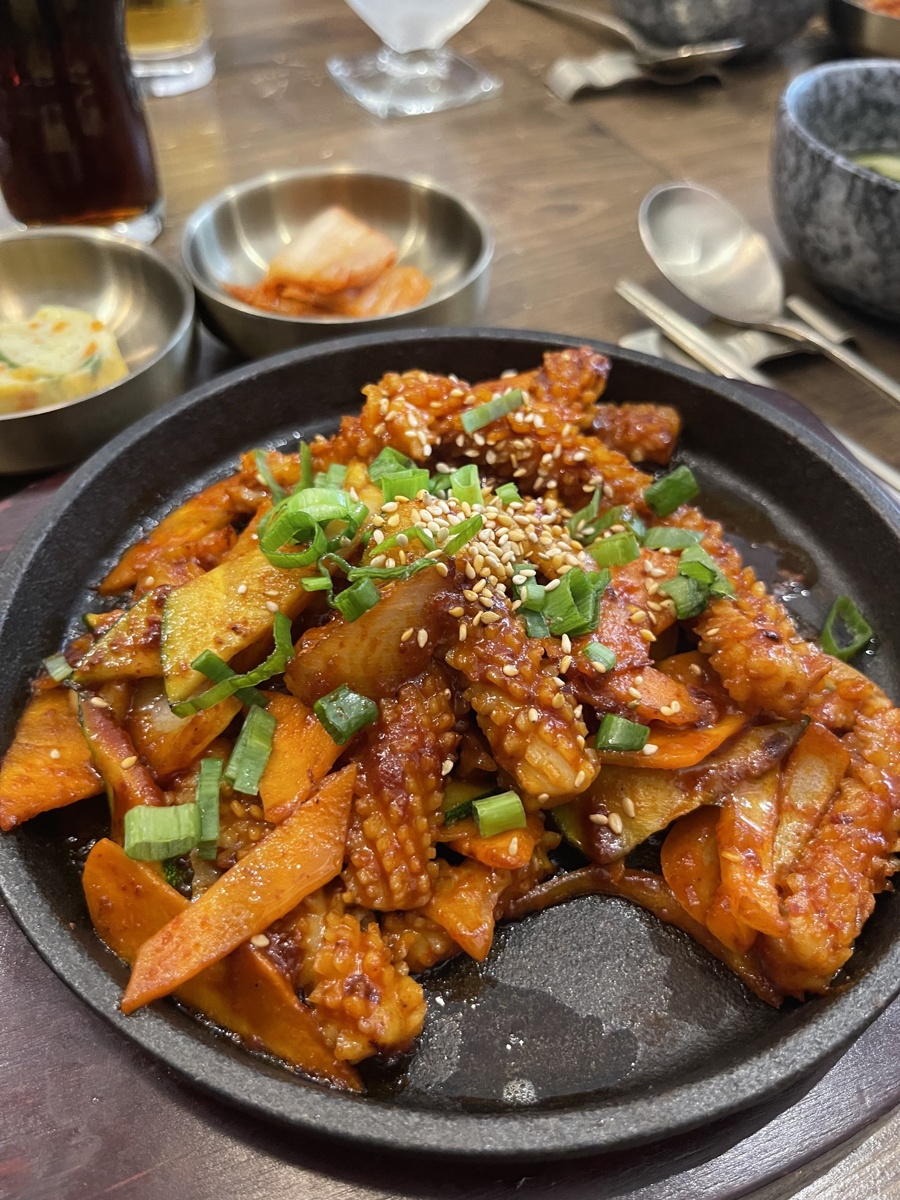 Tellement délicieux! Très Très bon! Le calamar est soigneusement préparé et il se marie superbe bien avec la sauce épicée. Dans d'autres restaurants, le sauté n'a que beaucoup de légumes et l'ingrédient principal est souvent maigre, mais ici tout est approprié et copieux. Serveuse était vraiment sympathique et le déjeuner était très satisfaisant!!! 맛있다!!!!!