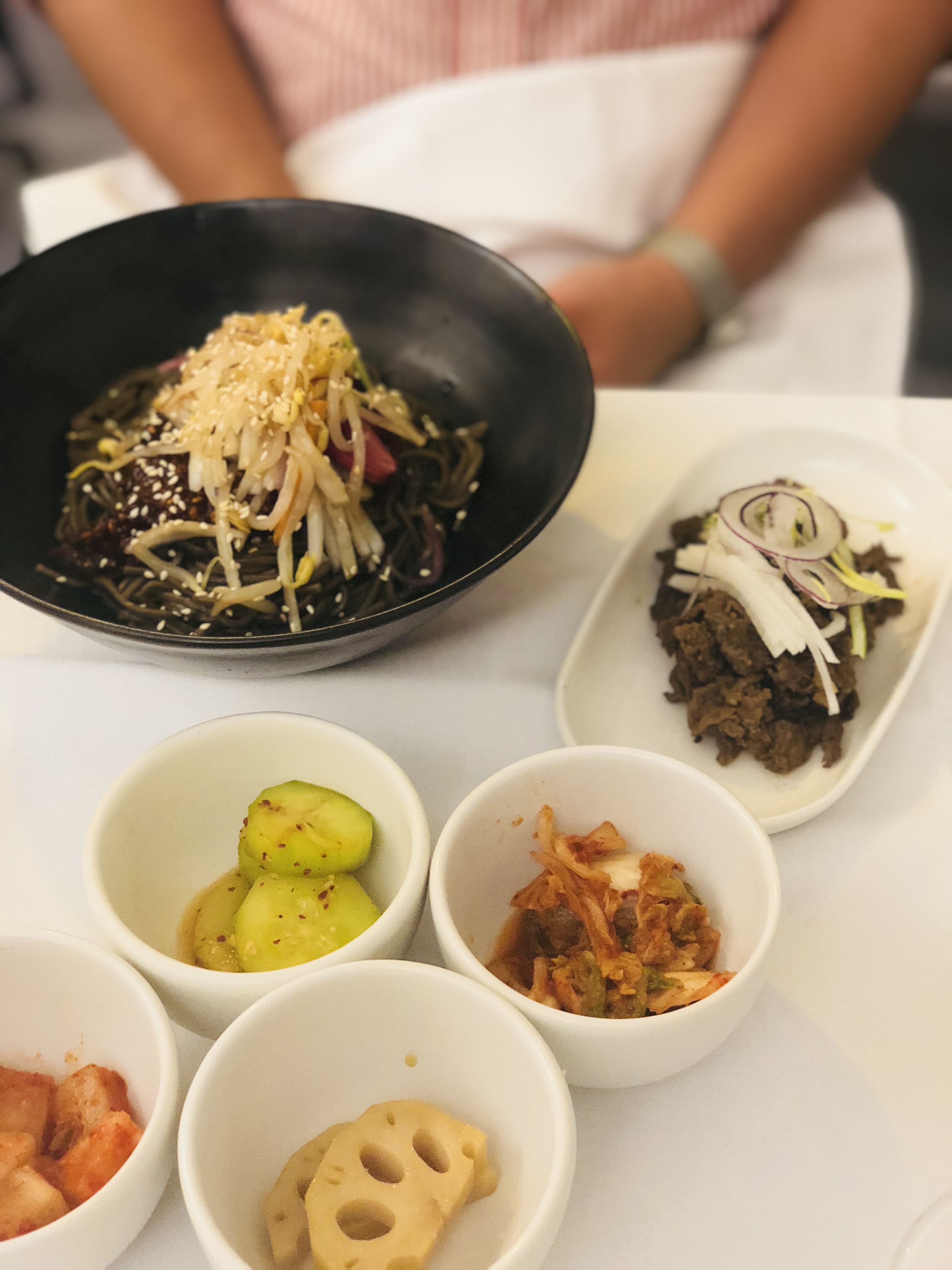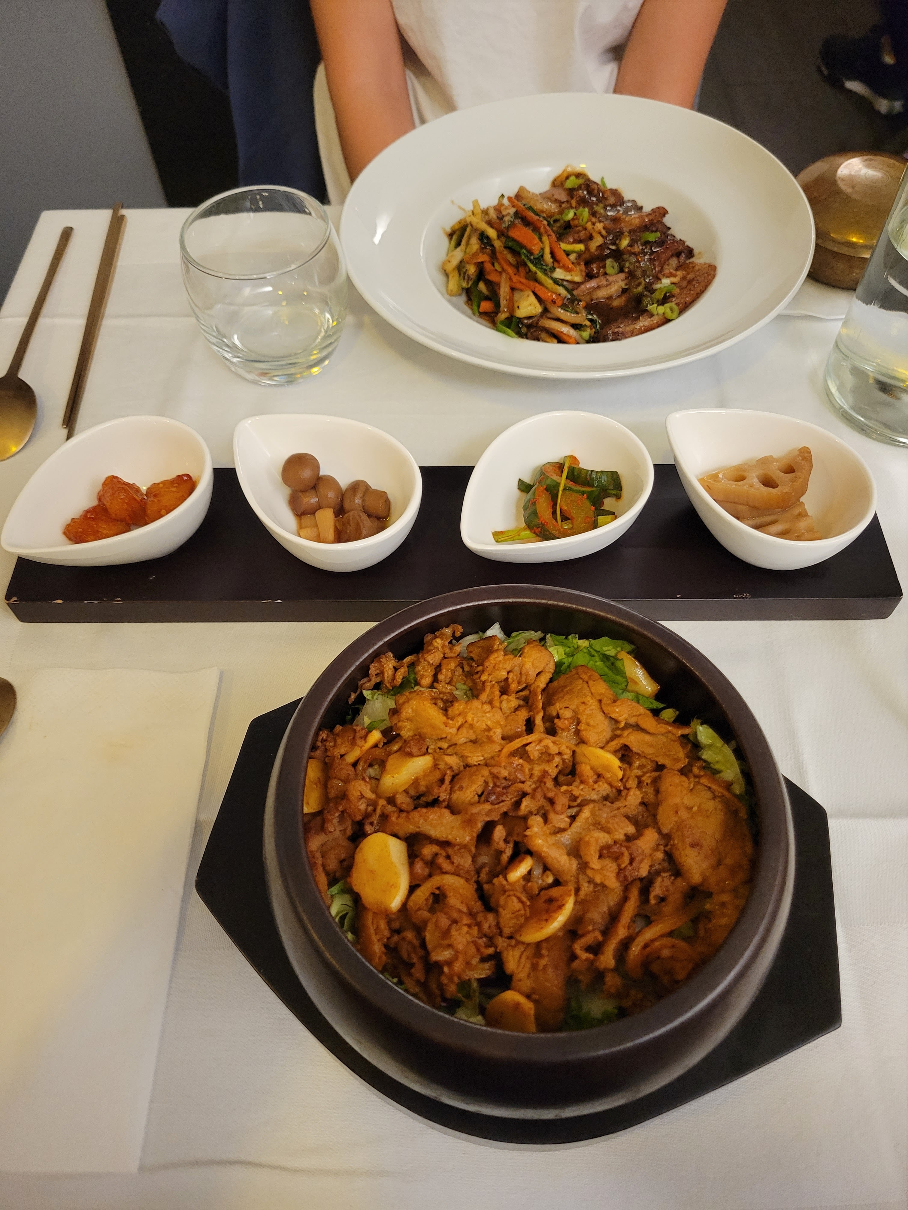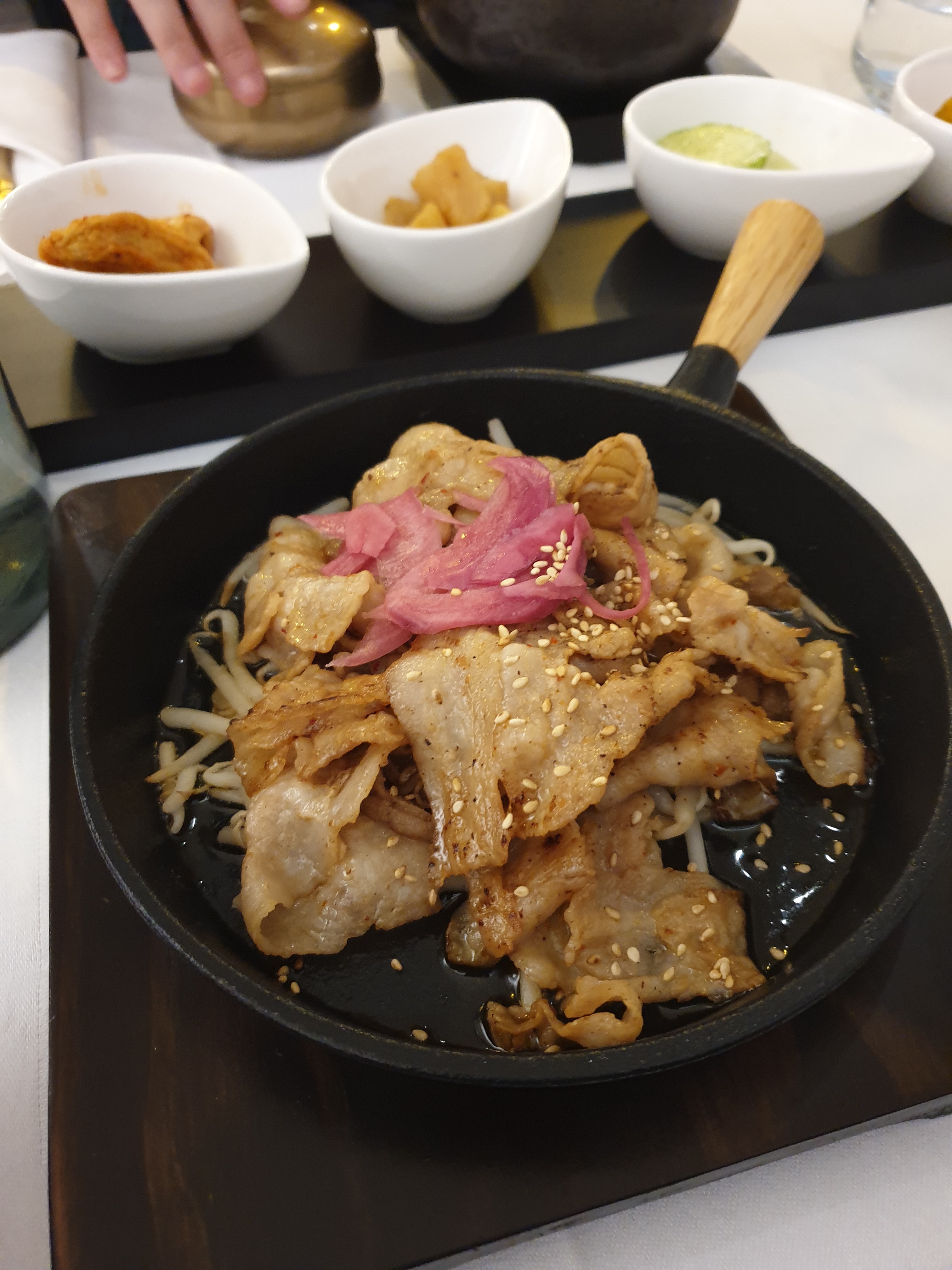 On y est allé pour le déjeuner un vendredi, y avait pas grand monde, du coup on a pu profiter d'un super déjeuner privé. 2 menus y sont proposés avec des classiques de la cuisine coréenne, ex : bulgogi, et un peu de variations, ex : tempura.