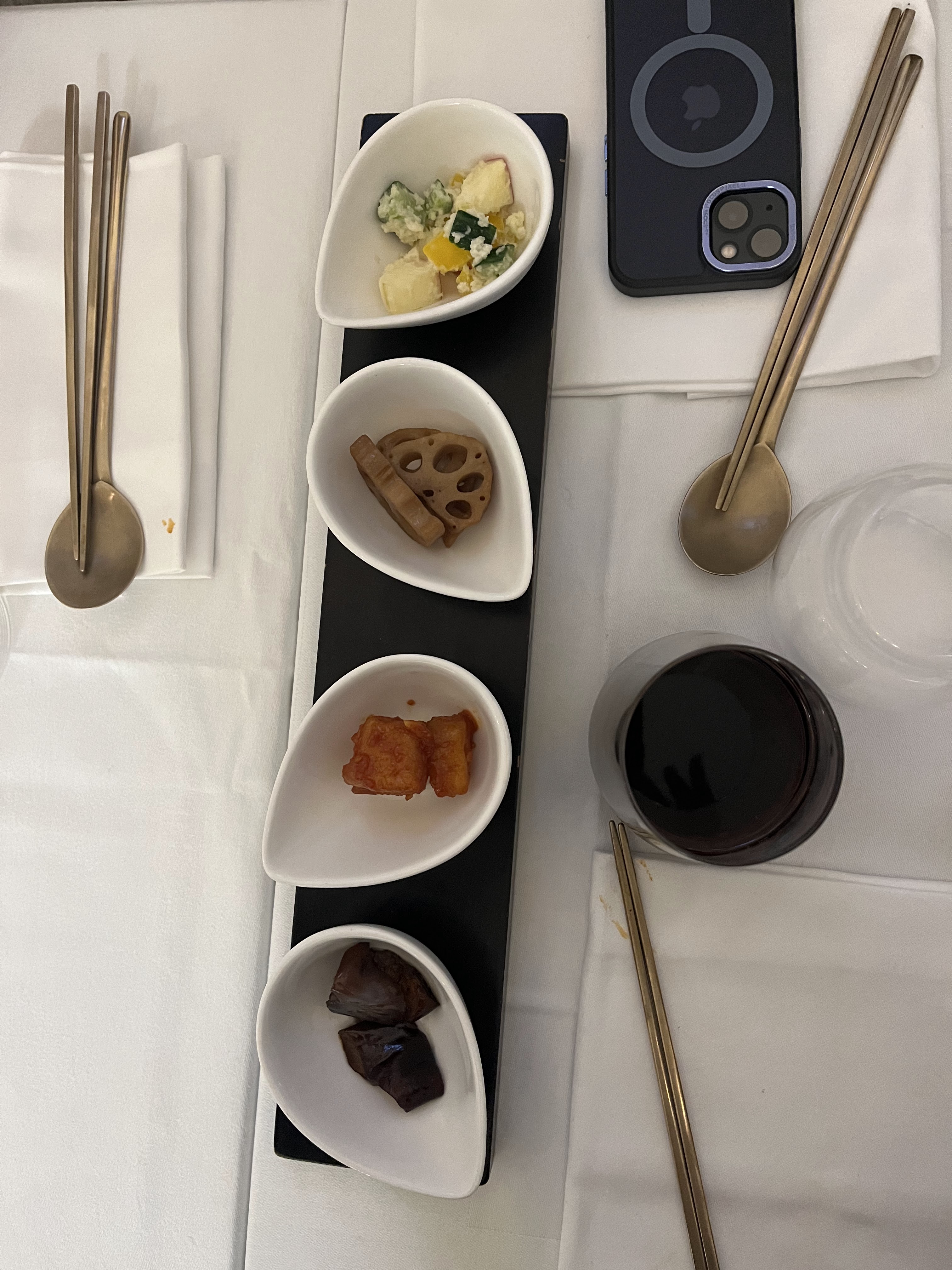 Déjeuner dans ce restaurant coréen qui a une très bonne réputation. Le cadre est joli, le décor soigné. Les prix des formules du midi à 16€ et 19€ sont très raisonnables. Ce qui n’est pas le cas des prix à la carte. Gare à ceux qui veulent se faire plaisir, la note peut grimper très vite. Toutefois la qualité des plats est bel et bien là. C’est pour la quantité dans chaque assiette que le bât blesse. Le service très soigné tout au long du repas vous permet malgré tout de rester sur une note positive 👍