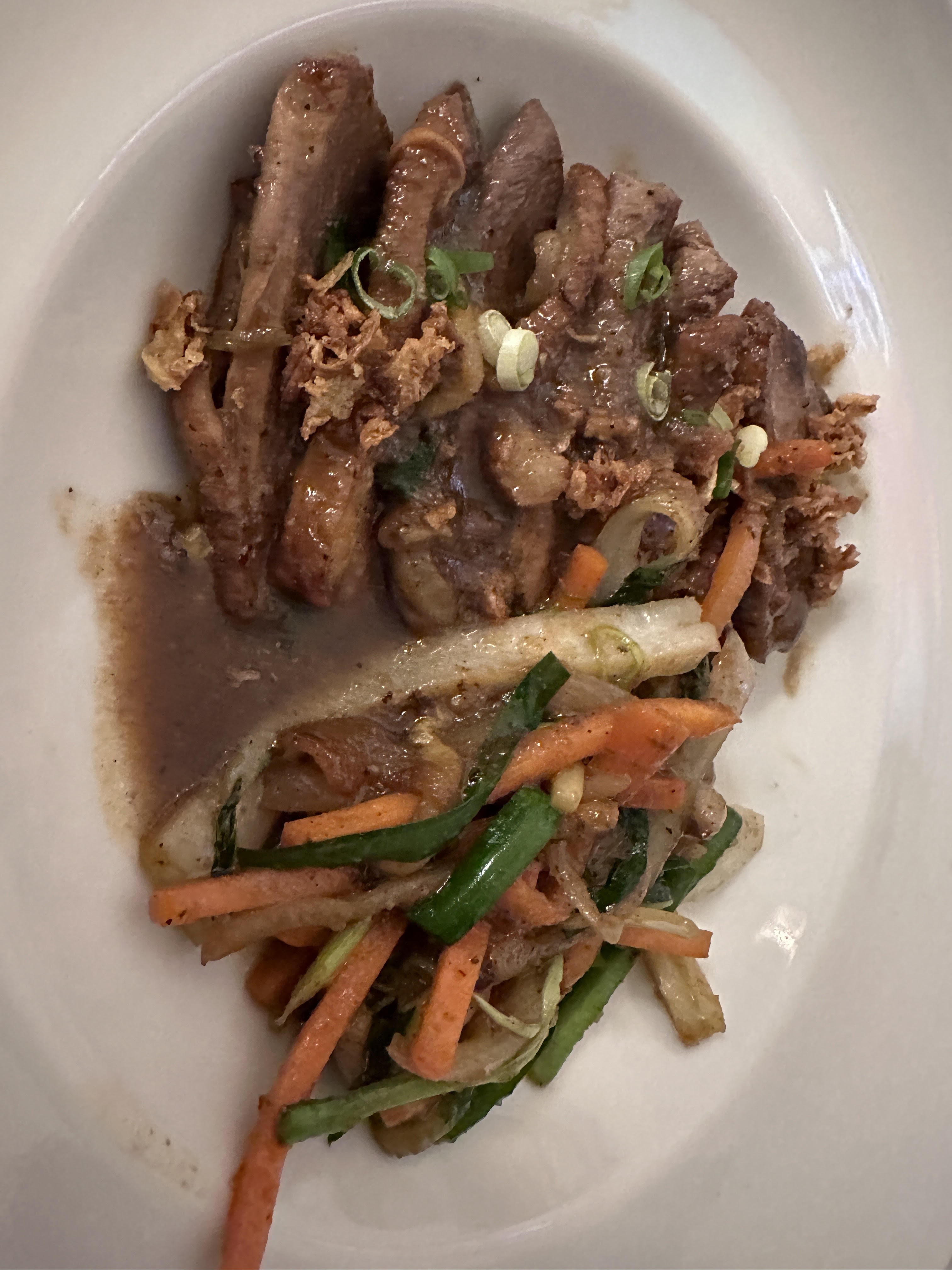 Portions généreuses, cadre moderne et très bonne cuisine. Le thon, le canard et le calamars étaient excellents.