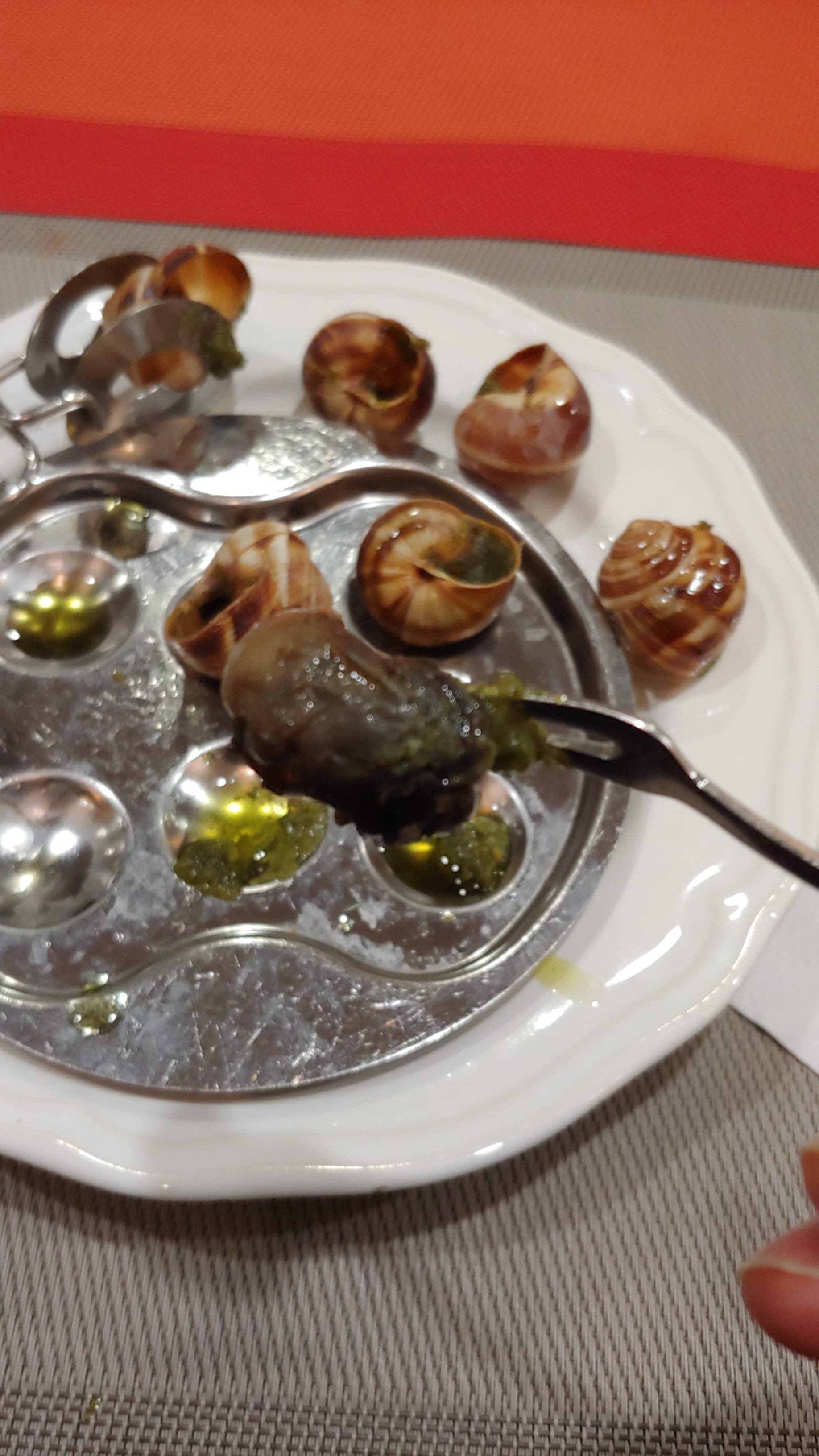 Plat d'escargots fantastique bourguignon doux En sauce sucrée Un goût qui donne envie d'en manger encore et encore J'en ai encore mangé !!!