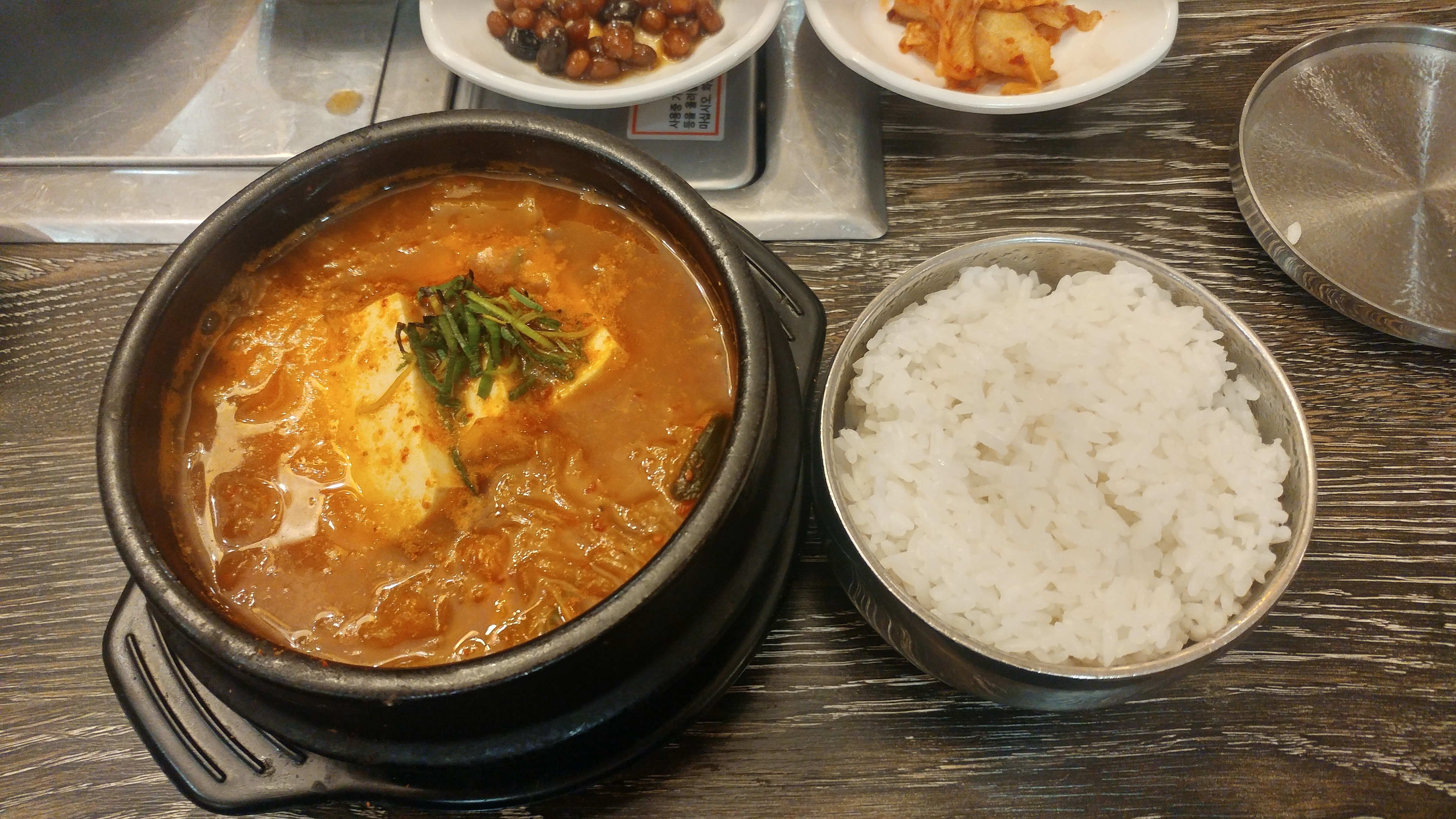 C'est tellement insipide ! Le kimchi dans le ragoût de kimchi a disparu et le tofu mou est trop salé pour être mangé. Tous les plats d'accompagnement étaient insipides. ne pars pas