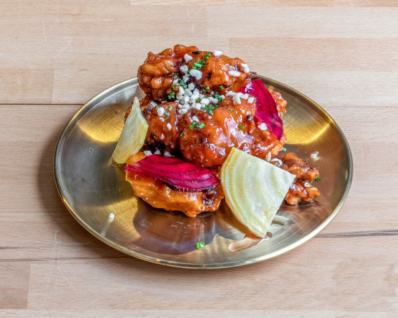 Absolument délicieux, service parfait et super gentil, on recommande les bibim wings, le dubu jorim (tofu frit) et le dak gangjung! Et les petits légumes aussi au top. On reviendra ☺️☺️