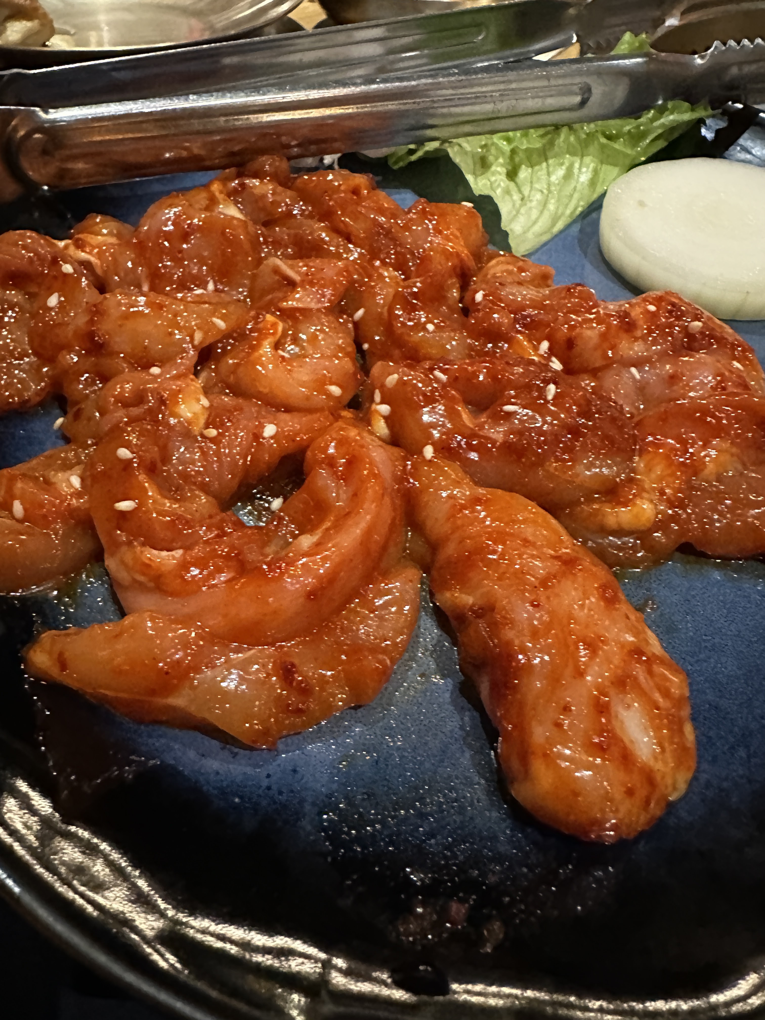 Pour un barbecue coréen, ne pas savoir faire la différence entre cuit et grillé est un comble. Nous avons commandé du Calamar grillé qui n'était d'une part, pas grillé et d'autres part absolument pas relevé. Un plat sans intérêt. Pas mauvais. Mais pas spécialement bon non plus. Pour 18€ le plat, on s'attend à mieux.