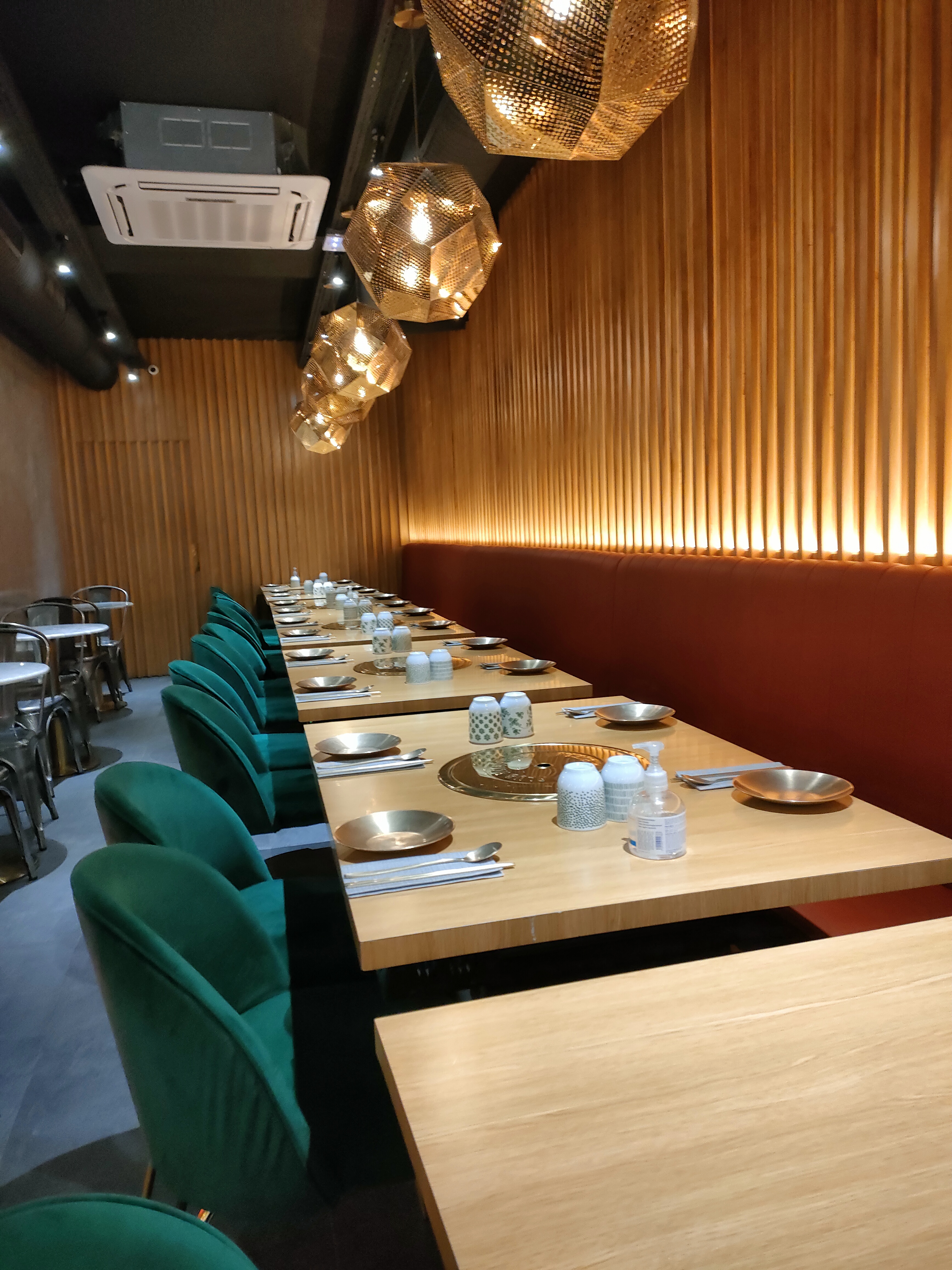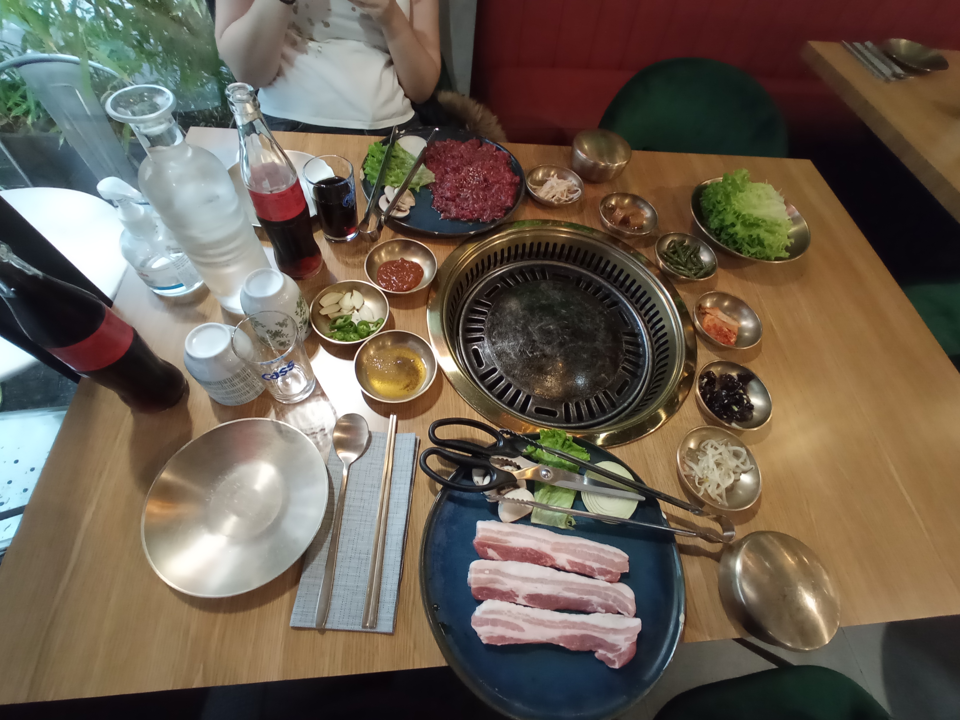 Le restaurant est idéalement situé et très bien décoré. C'était pour moi la première fois dans un restaurant au concept coréen. J'ai manqué de communication de la part du staff. On n'avait pas compris qu'il fallait gérer la température du bbq et on a fait bruler la nourriture. De plus je ne sais toujours pas pourquoi nous avions commandé 6 tips par personne et qu'à l'arrivée nous n'avons eu qu'une fois les accompagnements pour la table entière. Certaines de mes amis ont encore eu faim en sortant. Ce n'était pas horrible mais je pense que je n'y retournerai pas.