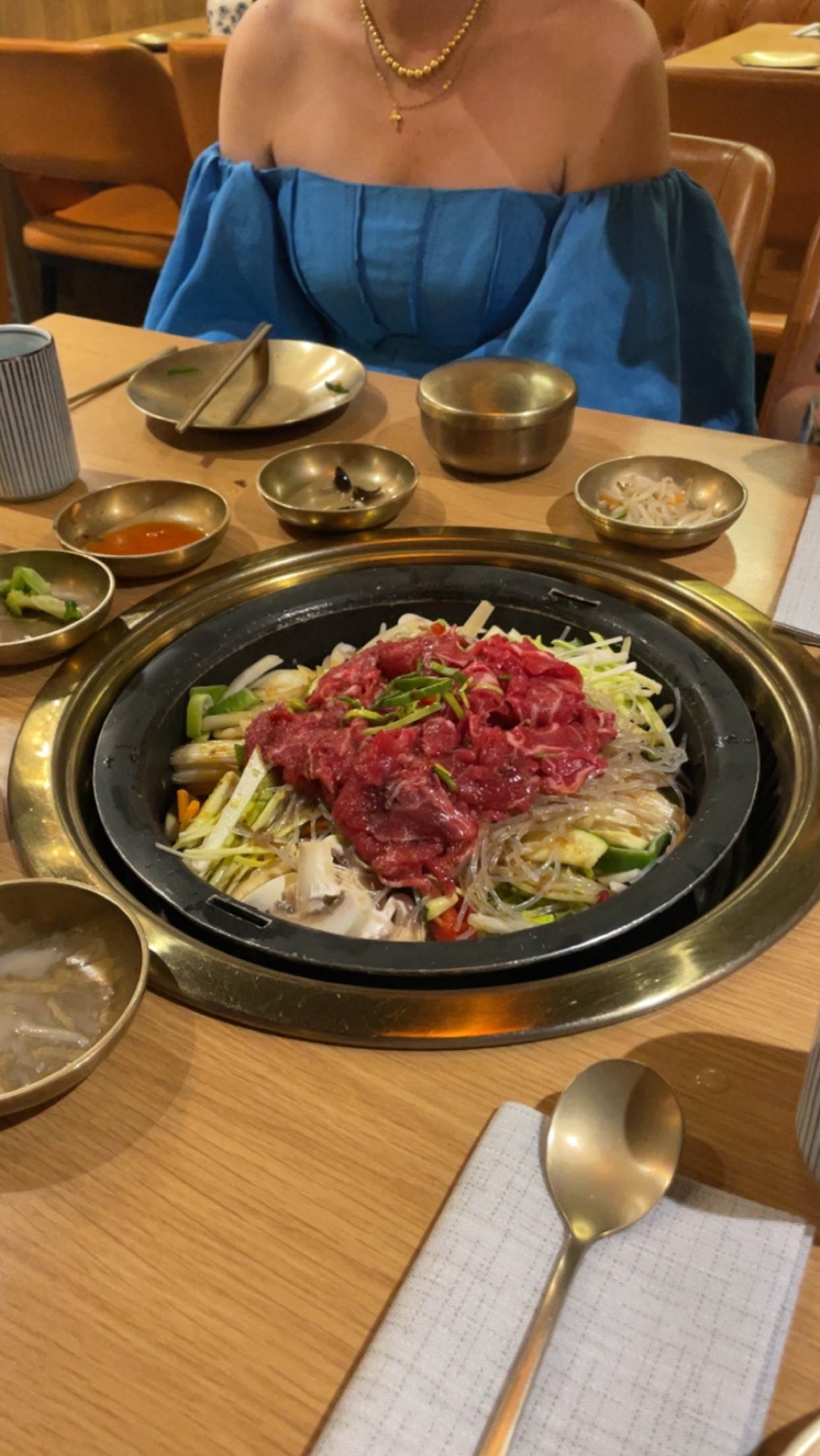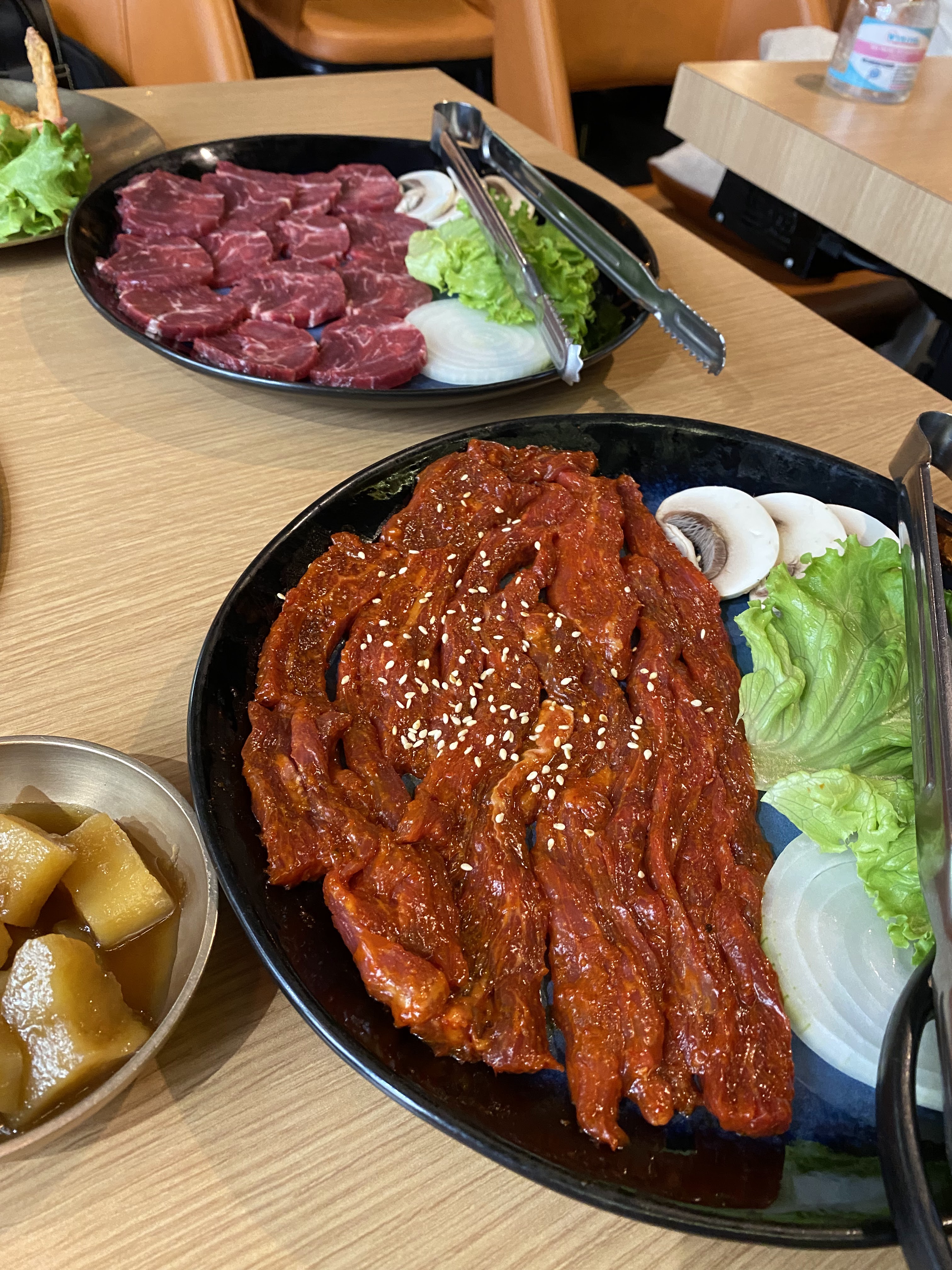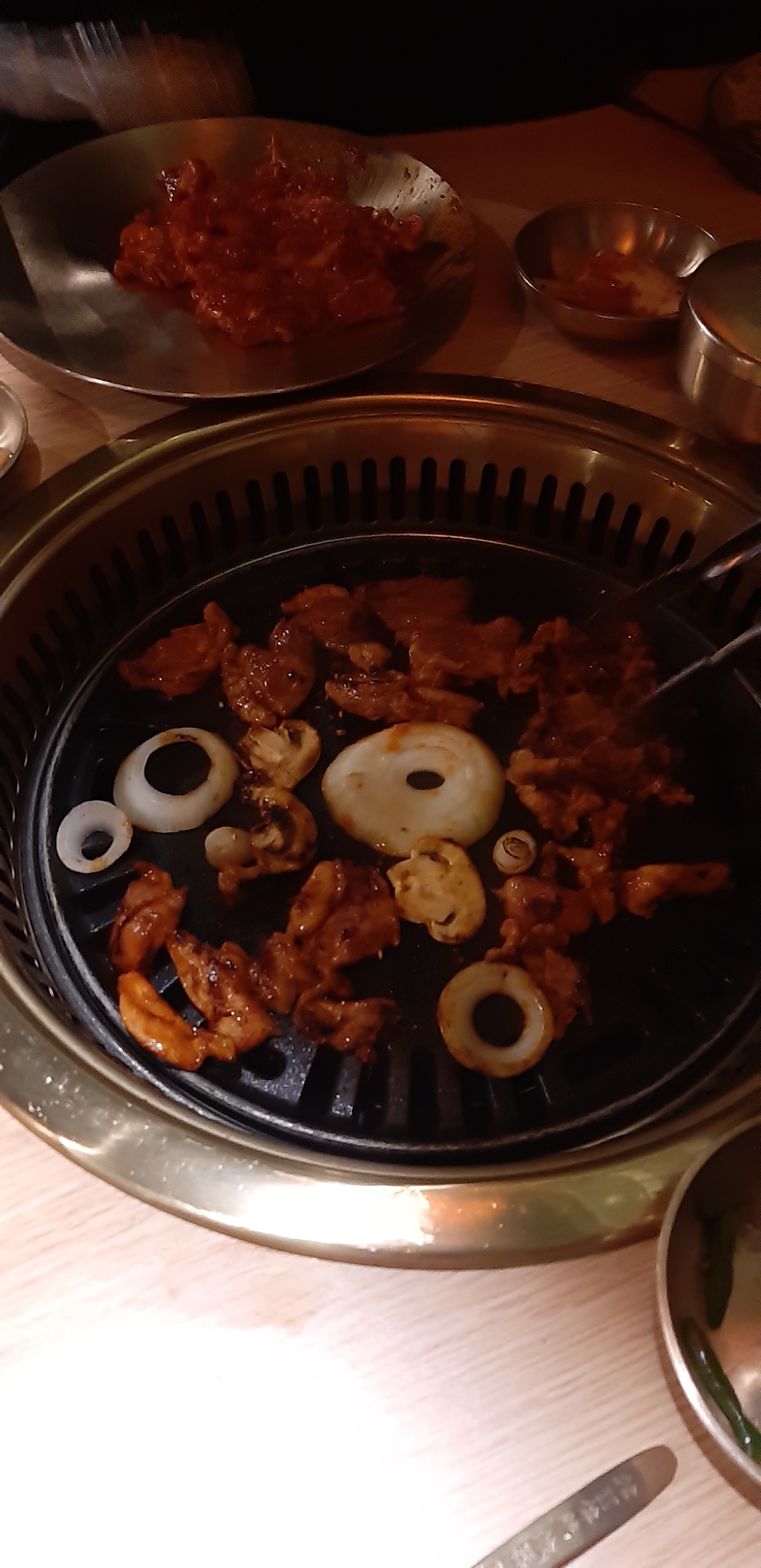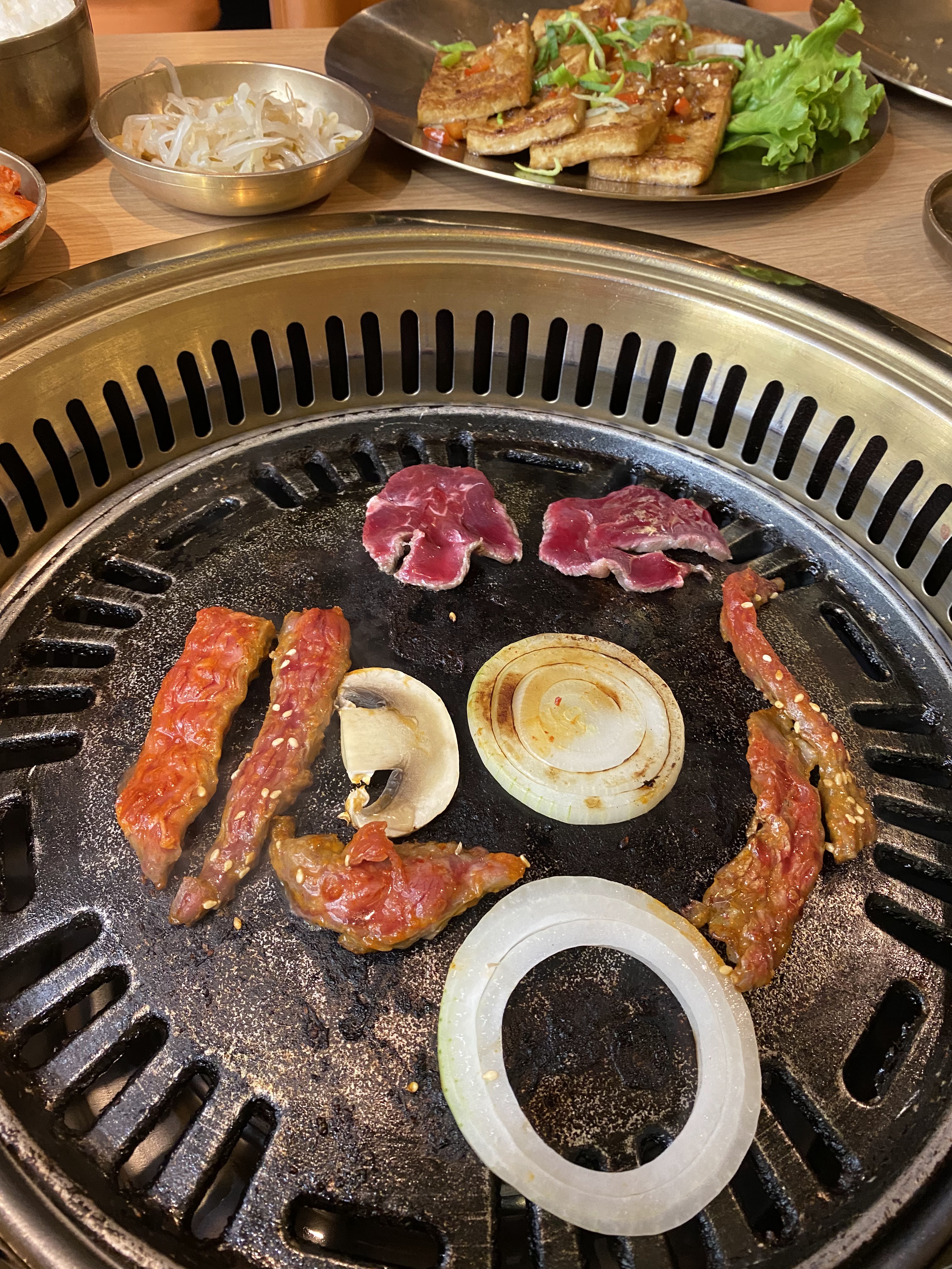 Nous avons partagé un délicieux bbq coréen avec entrecôte de boeuf mariné (excellent) et canard. Toujours très convivial de partager et faire ses grillades soi même :) Seul petit bémol les accompagnements sont en portions un peu maigres.