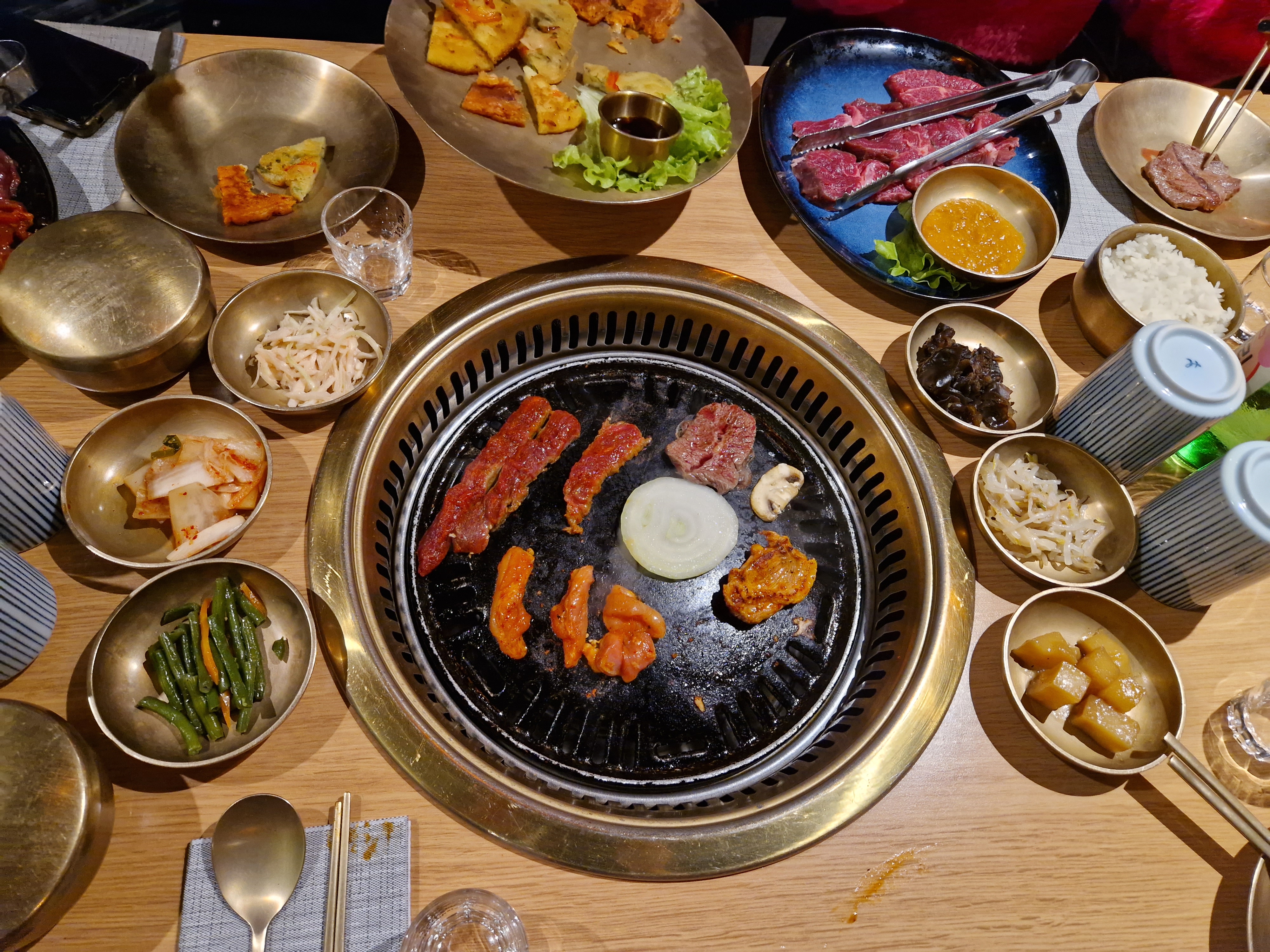 La carte est très diversifiée, notamment avec ce concept original avec les plaques chauffantes sur les tables pour le barbecue coréen. Le service est rapide, les serveurs sont aux petits soins ( il nous rajoute de l’eau dès qu’on finit la nôtre :) Les viandes sont bonnes et tendre, elles sont déjà assaisonnée et marinée. Malheureusement la poitrine de porc était beaucoup trop épaisse et difficile à découper. Pour le prix qu’on a payé, on n’est pas du tout rassasié en sortant du restaurant ( alors que je ne suis pas une grande mangeuse). Dommage