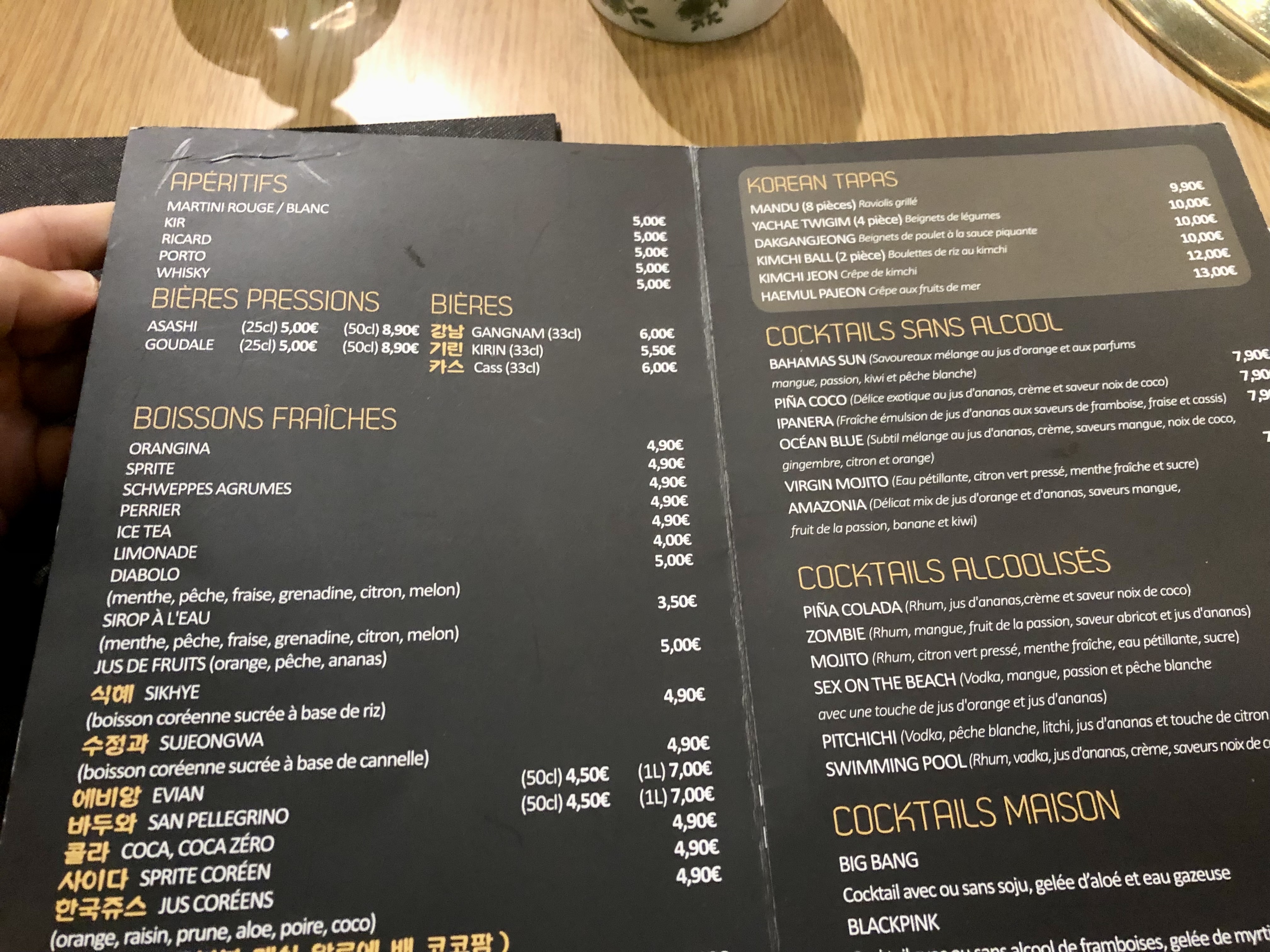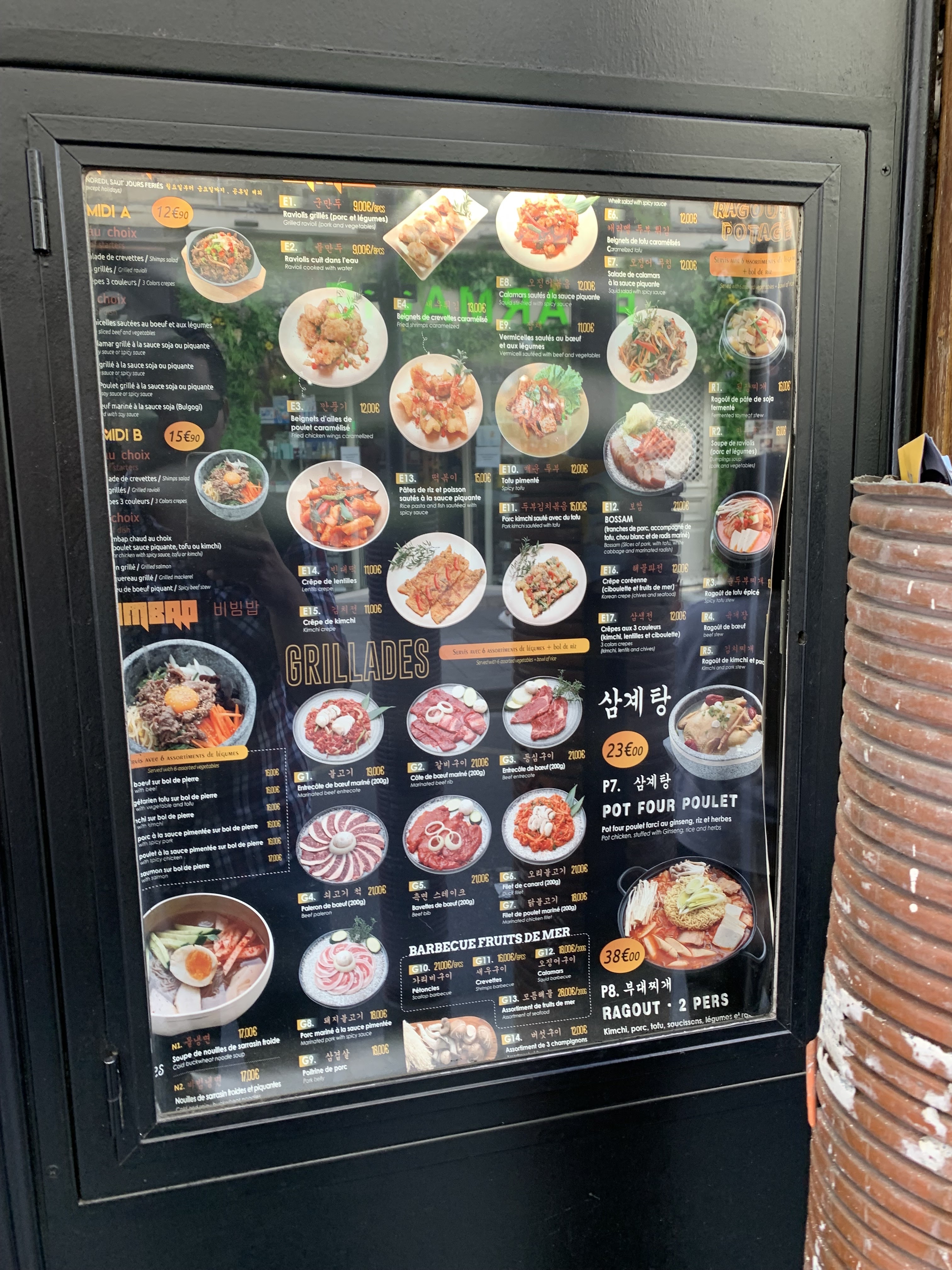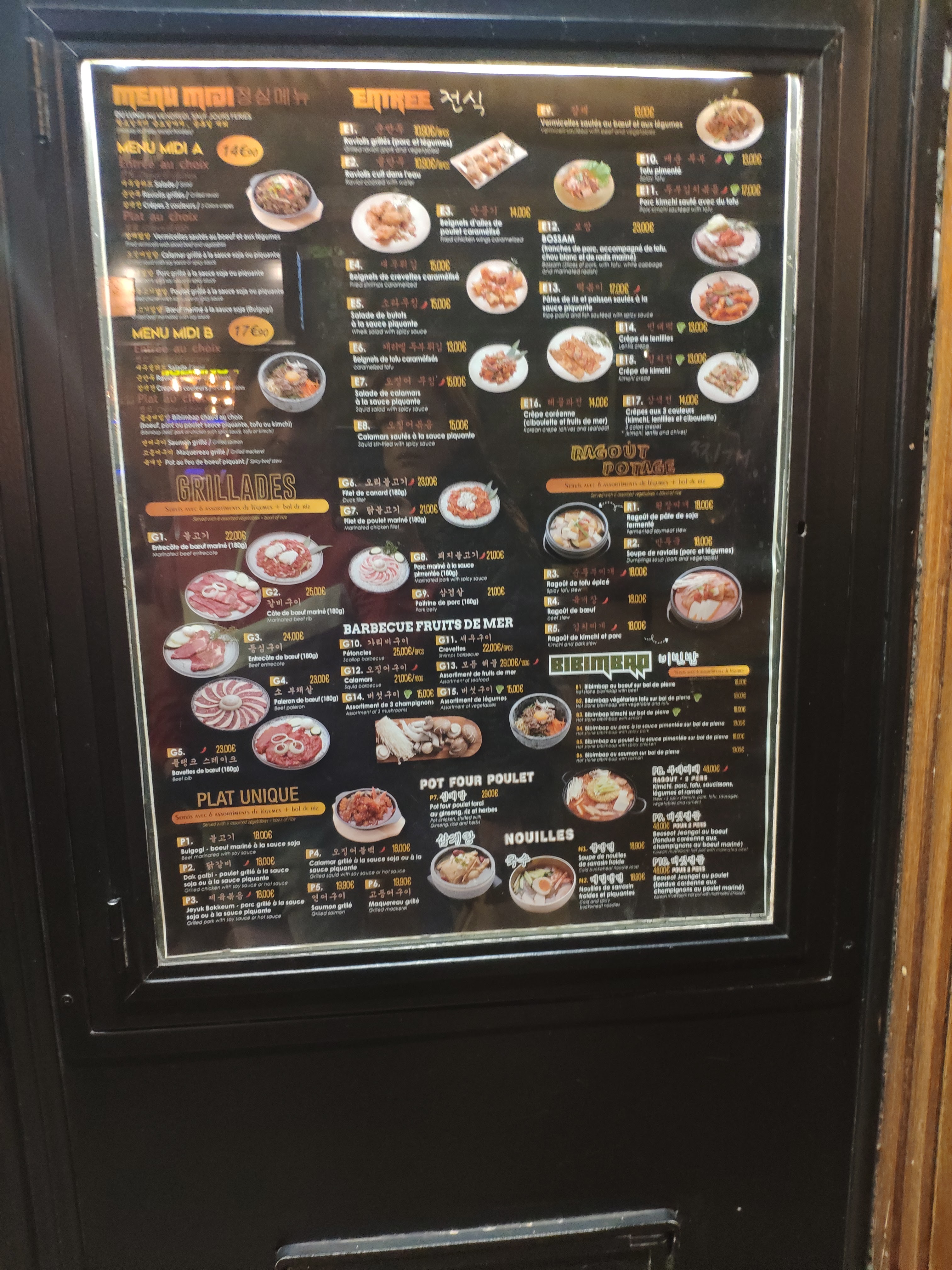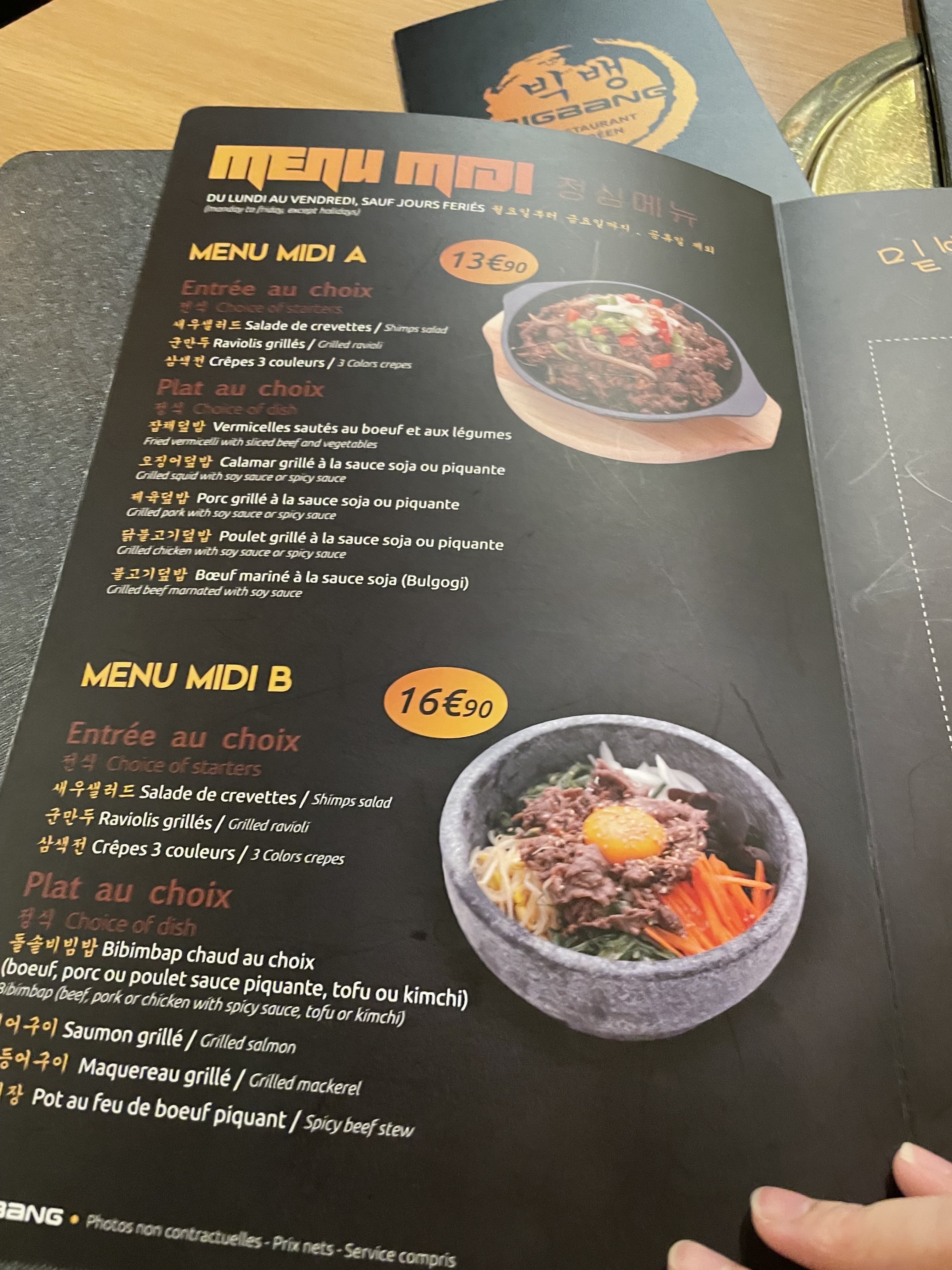 On a goûté à leur barbecue coréen, il était bon mais j’en préfère d’autres. Le service était rapide. C’était une bonne idée de mettre les images de ce qu’on mange dans le menu mais quand ça ne correspond pas c’est dommage. Je n’étais pas bien assise car il n’y a pas assez de place pour les jambes. Et je n’ai pas aimé la salade qu’on m’a donné qui n’était pas assez fraîche Mais c’est une adresse qui vaut le coût d’être goûté au moins une fois.