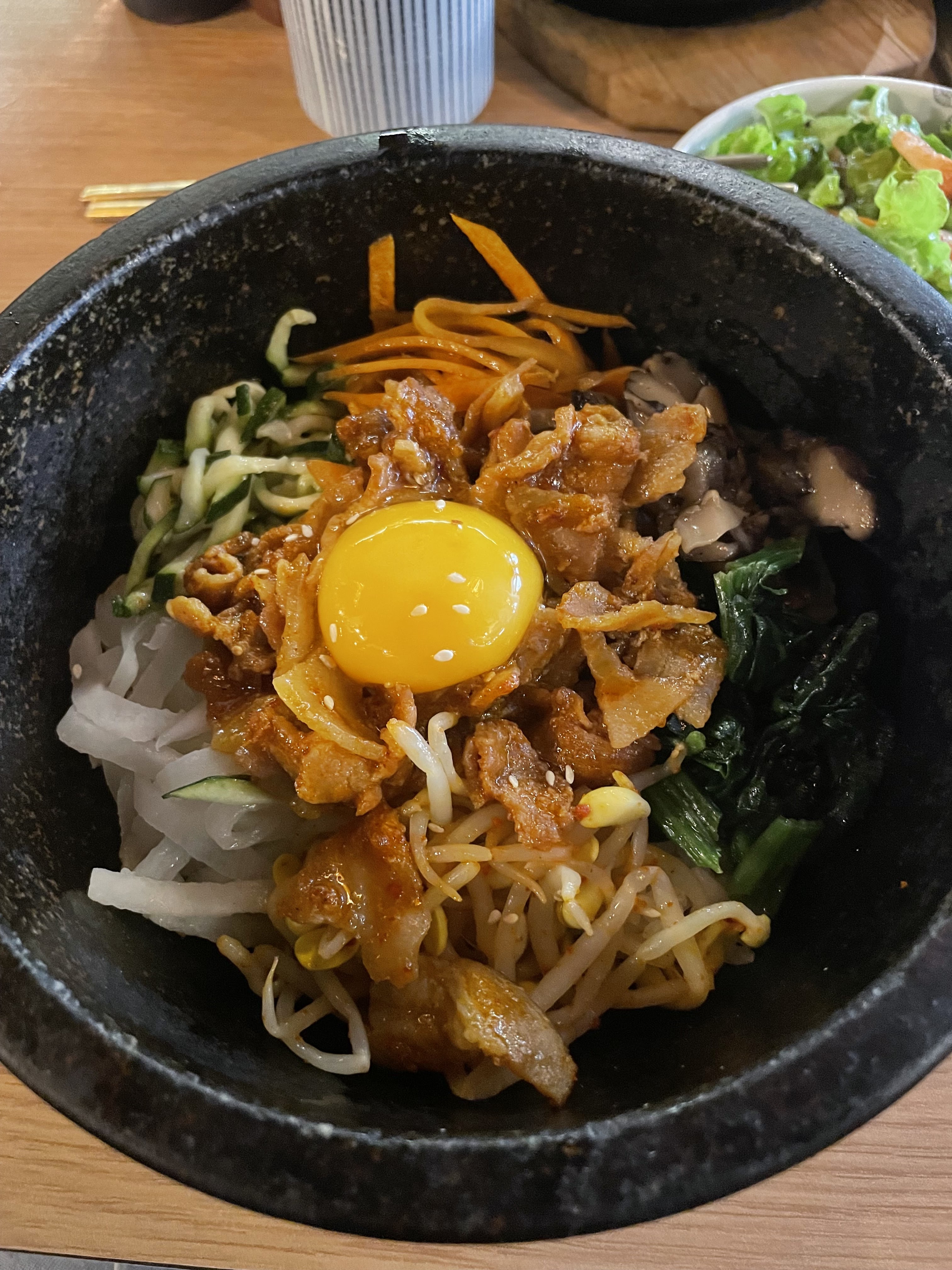 Excellente cuisine coréenne, le bibimpap et le bulgogi étaient vraiment excellents ! Cadre sympa, service rapide, mais les serveurs semblaient impatients que l'on parte...