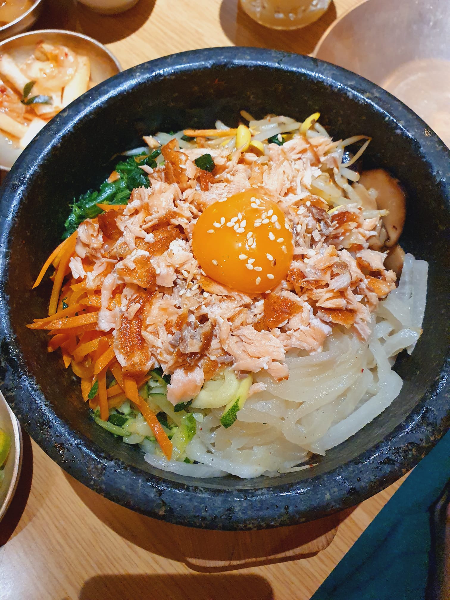 Les plats sont bons et de bonne qualité , mais je trouve qu'il n'y a pas assez dans l'assiette par rapport au prix. Contrairement à d'autres restaurant coréen où les petits légumes sont souvent à volonté... Le soir où nous avons dîné il y avait beaucoup de monde j'ai ressenti que le service était un peu précipité.
