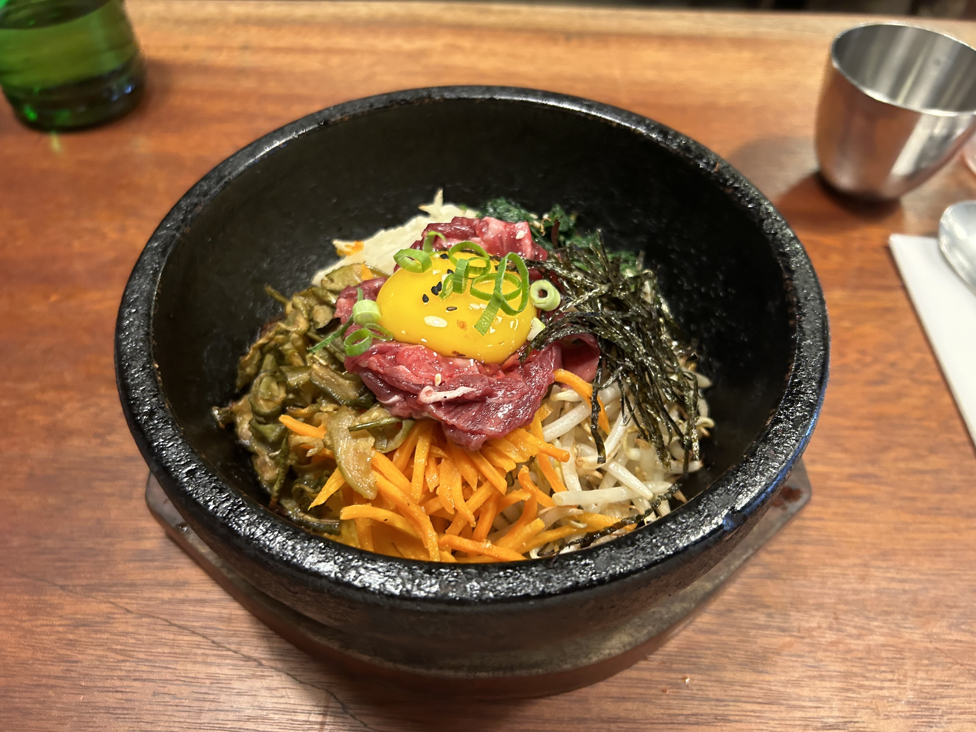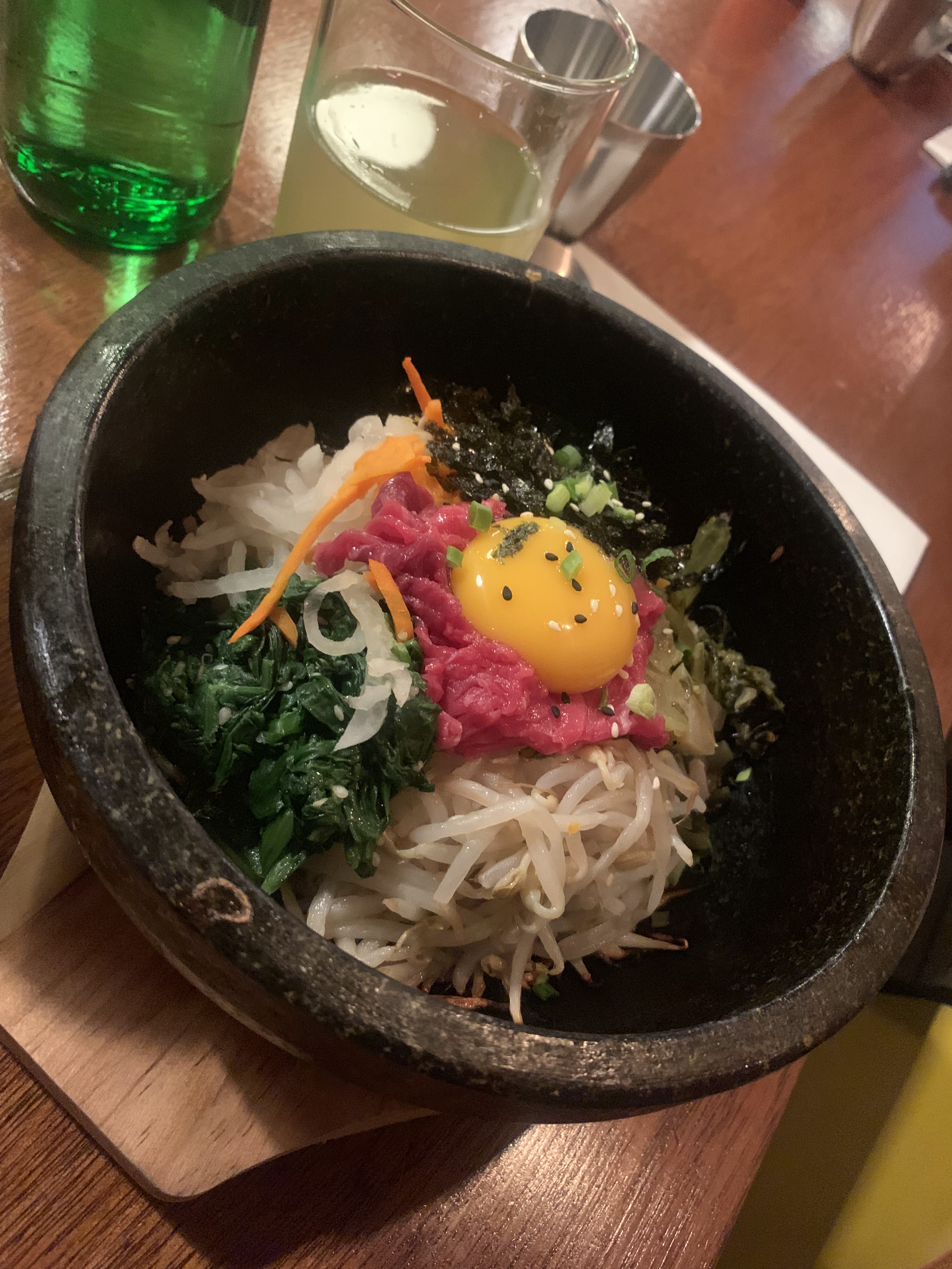 Bibimbap au tofu très bon, j'y retourne souvent pour des dîners entre amis ! L'ambiance est très agréable, cosy et chaleureuse !