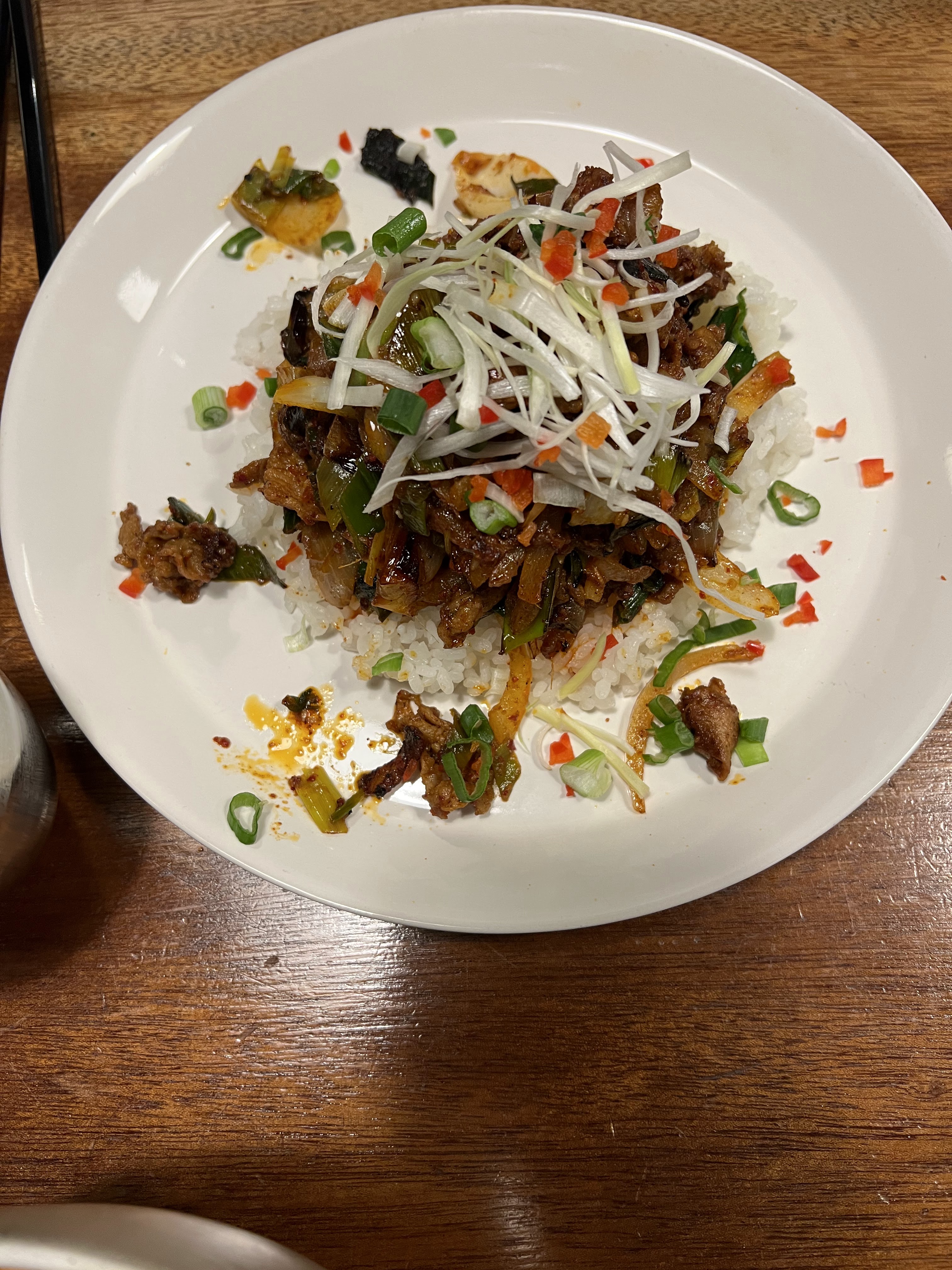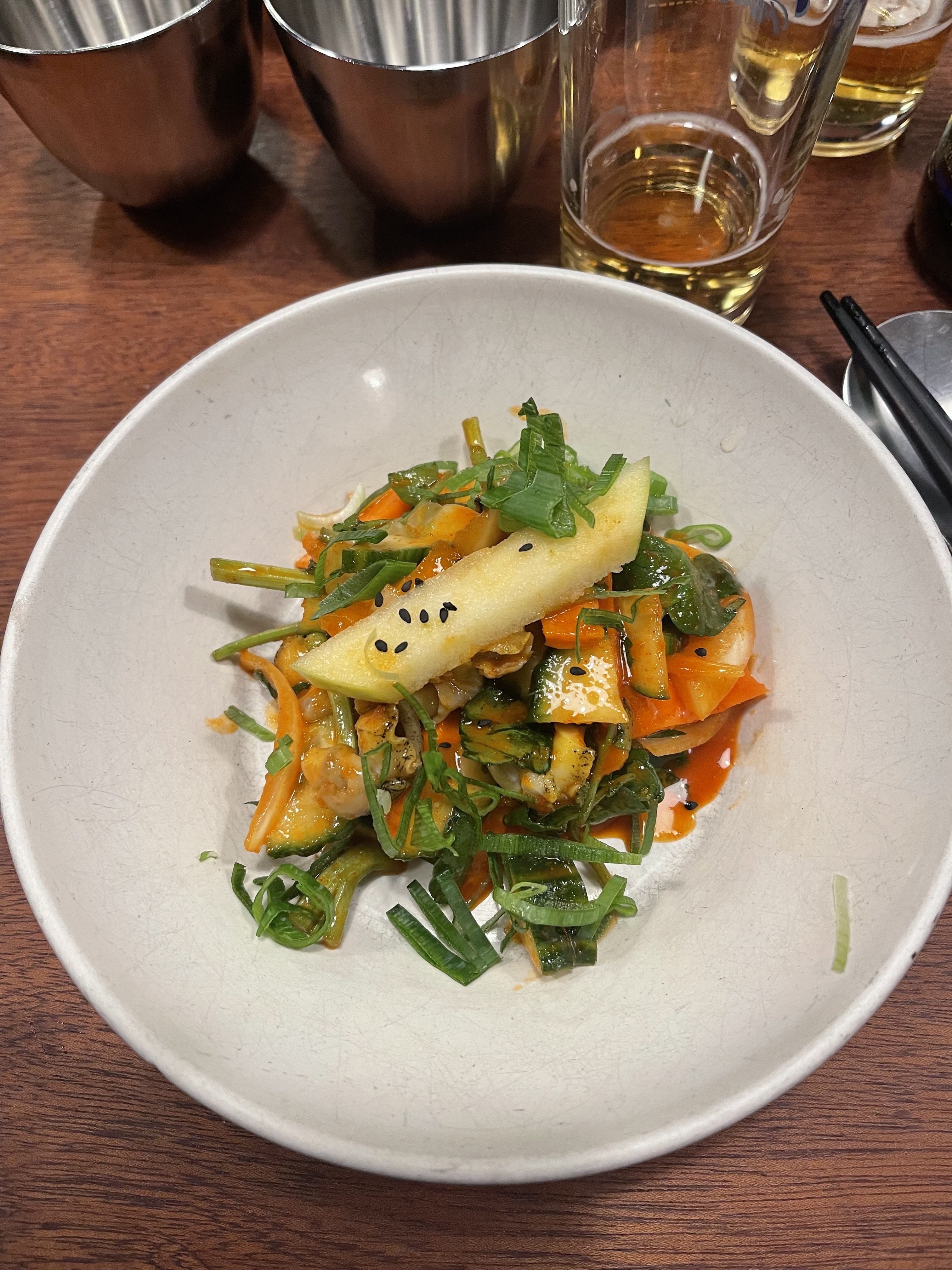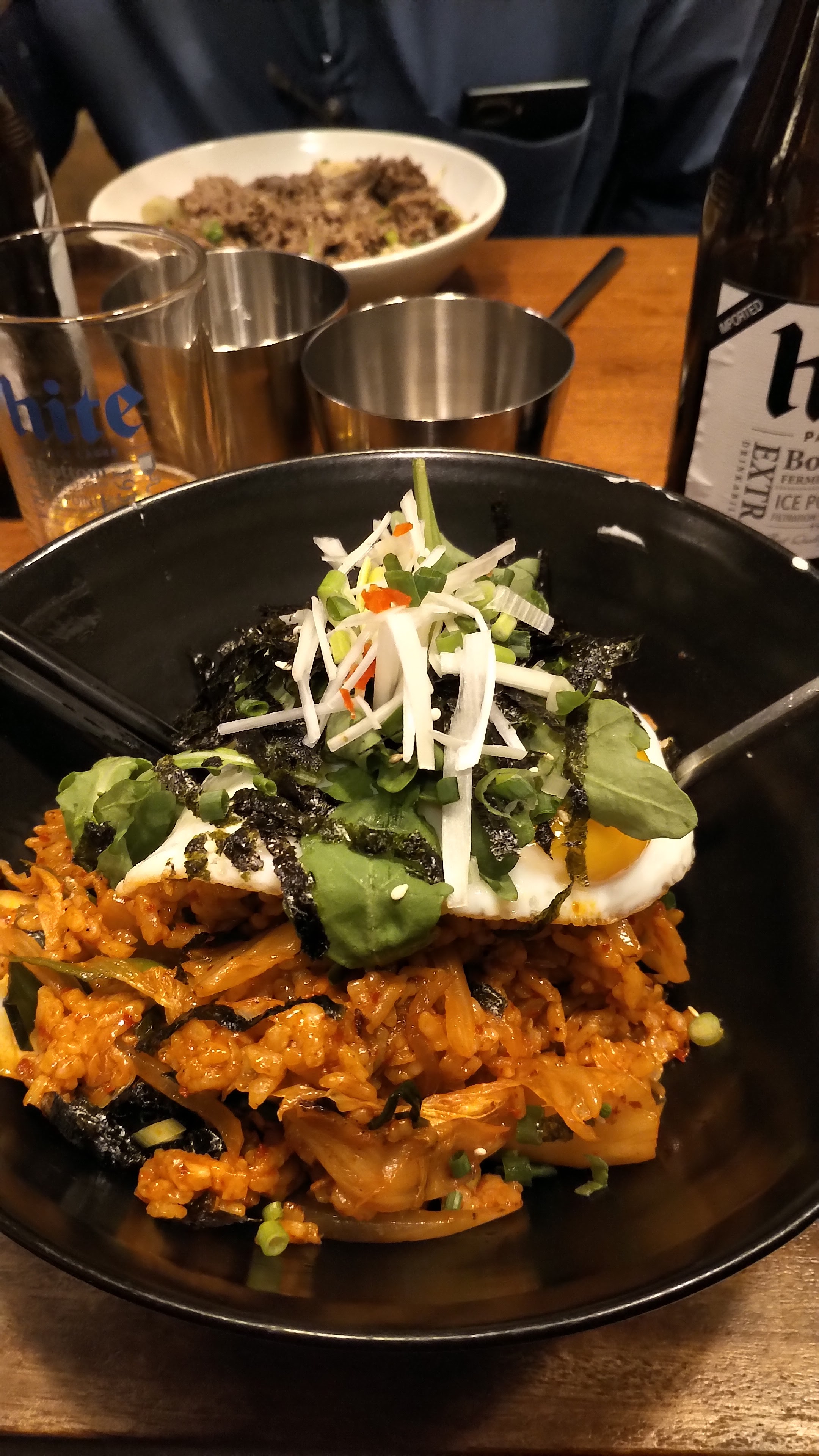 Le Kimchi est épicé et fade, j'ai demandé du sel et me suis demandé comment, sans sel, les légumes étaient lacto fermentés puis j'ai posé la question sur la nationalité des cuisiniers qui ne sont pas coréens et j'ai compris