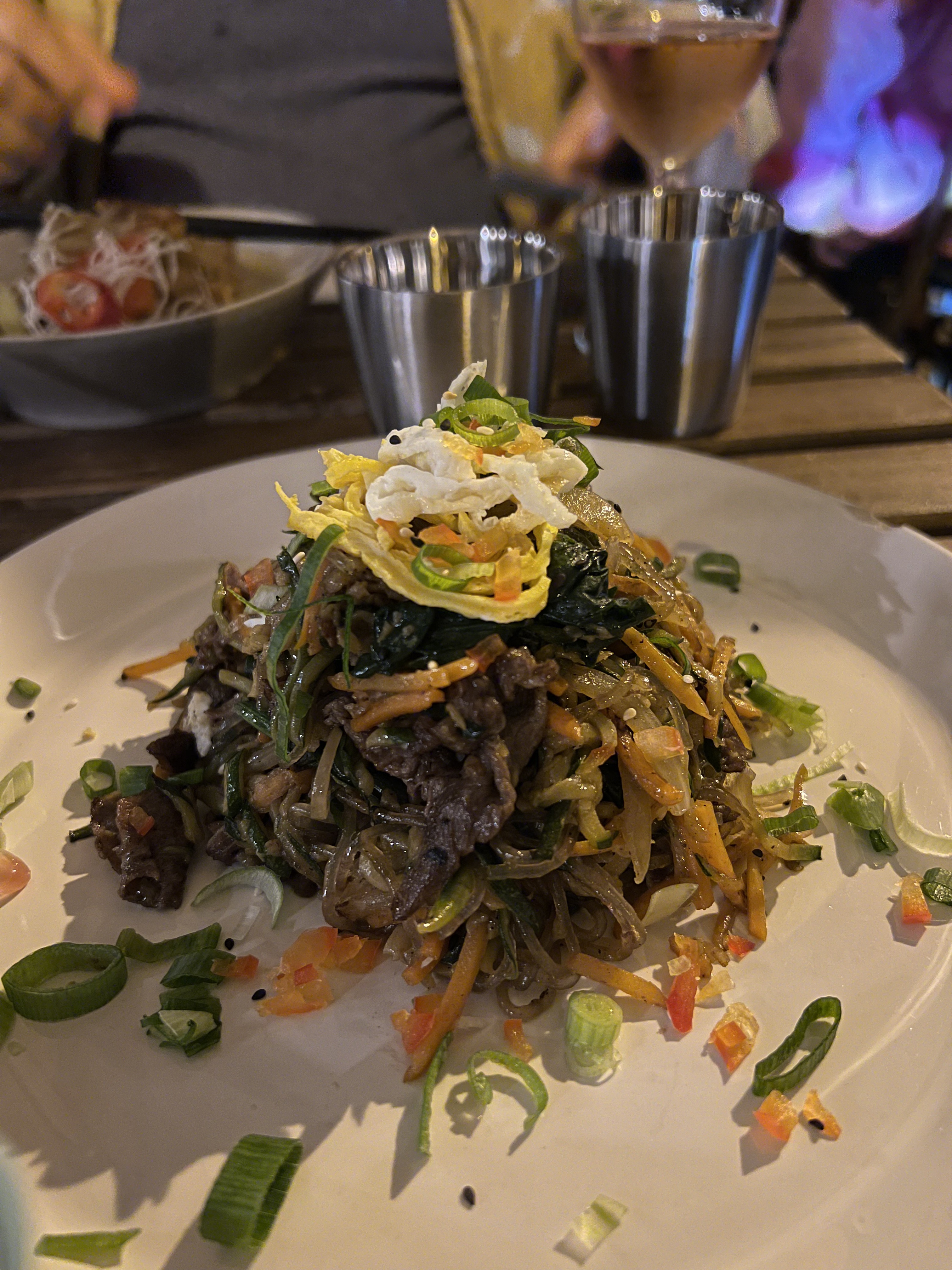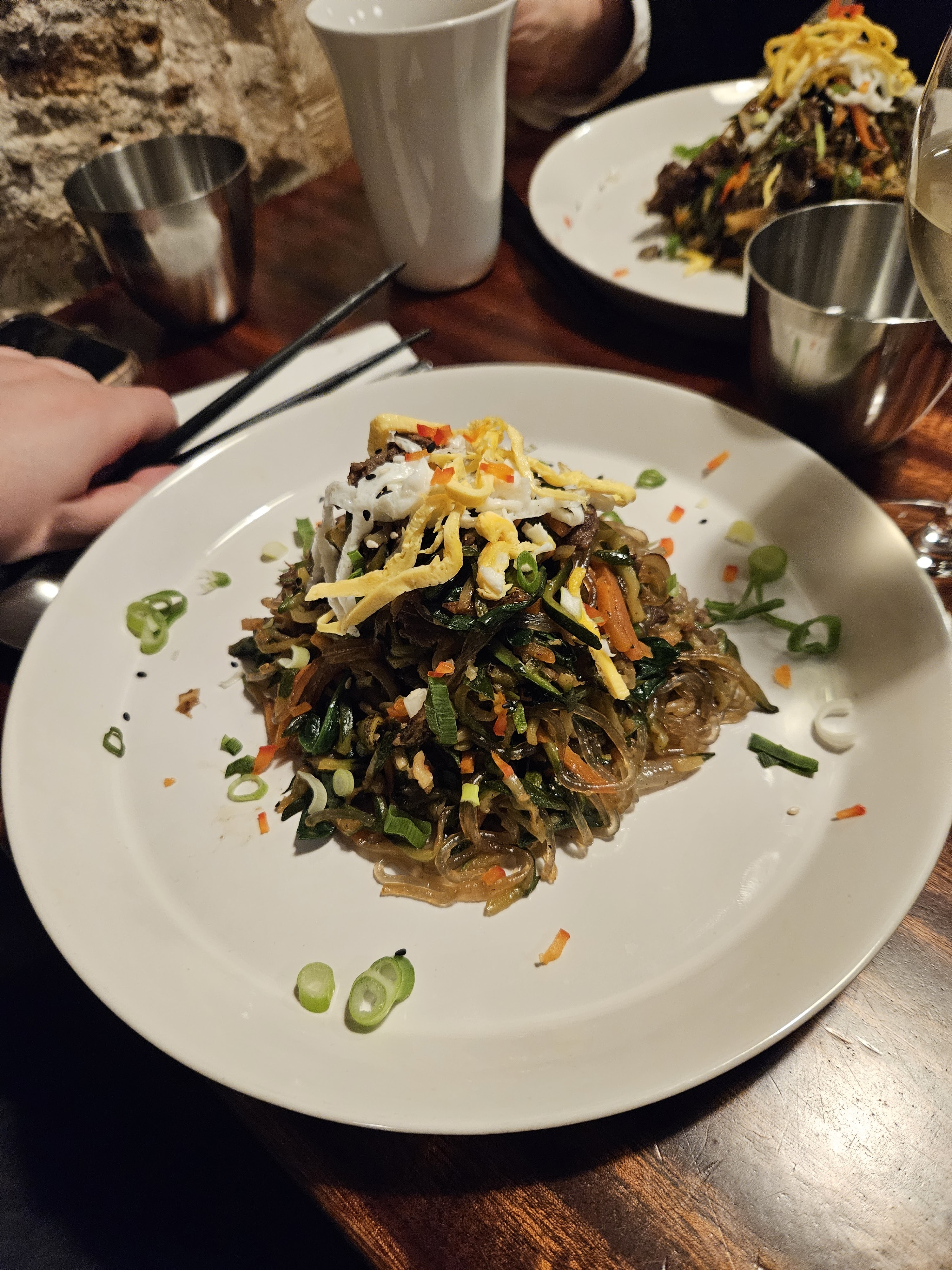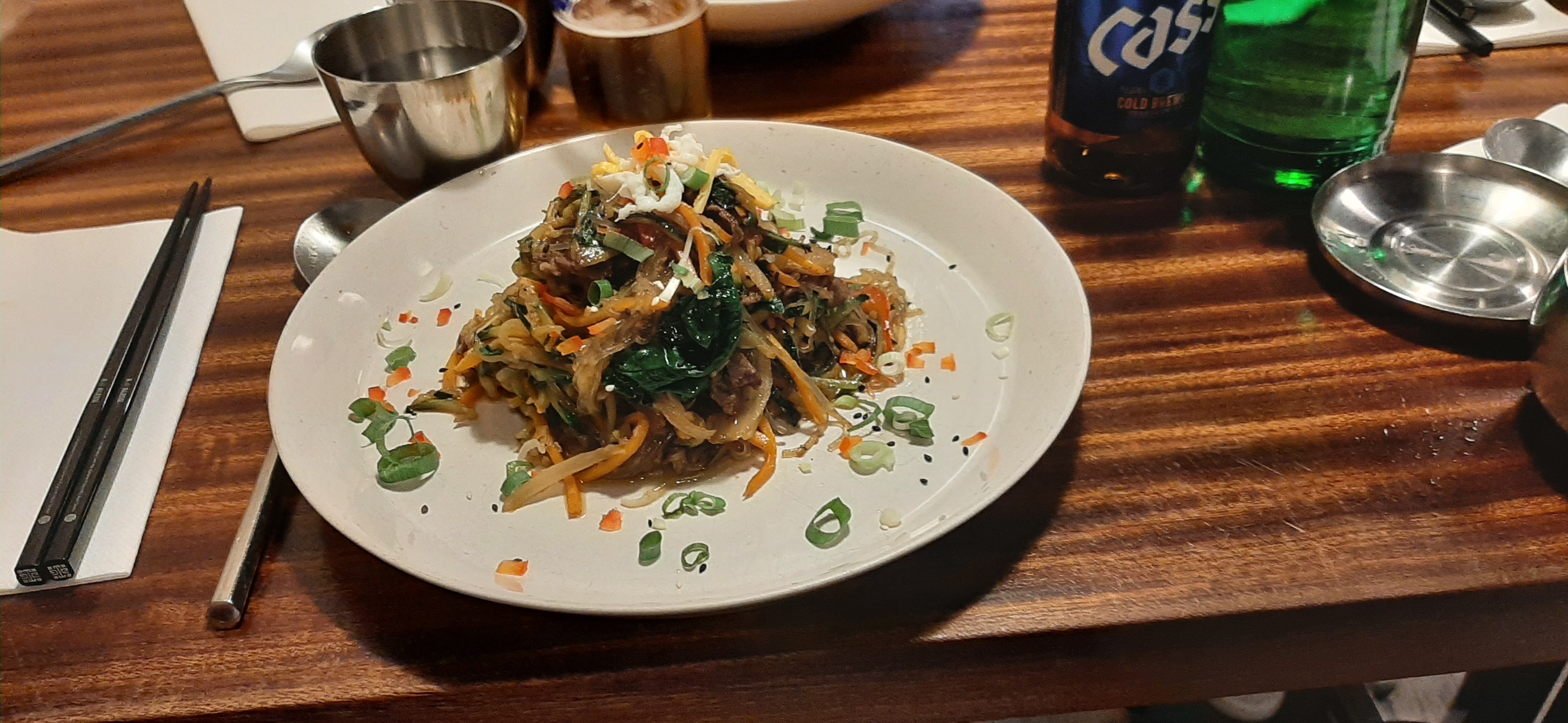 Accueil sans plus, ni agréable ni l'inverse, par contre les vermicelles des japchae n'ont aucun goût. Alors oui, on est servi rapidement, mais au prix d'un manque de traitement des saveurs des ingrédients qui ne passent pas assez de temps ensemble pour échanger les goûts et se marier. Dommage, on en atendait plus. Ça fini avec une expérience a la limite du fast food. La quête du japchae parfait continue...