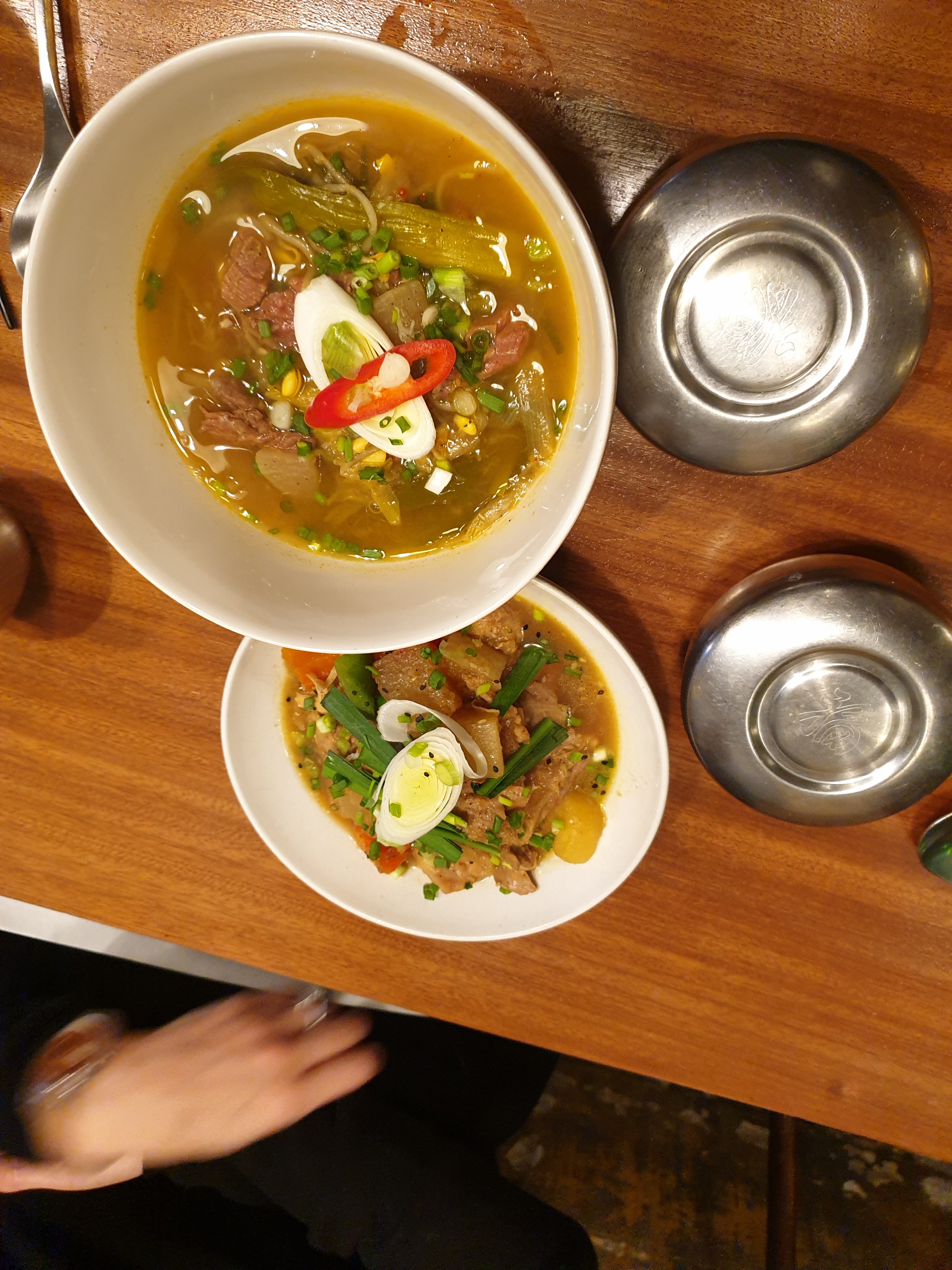 Restaurant coréen bien décoré et spacieux, il est agréable d’y manger. Il est préférable de réserver sinon vous serez placé à une table à partager. La cuisine est bonne et épicée mais je trouvais que ça manquait un peu de saveurs. Le kimchi n’était pas très parfumé donc je le sentais peu dans le kimchi jigae, dommage.