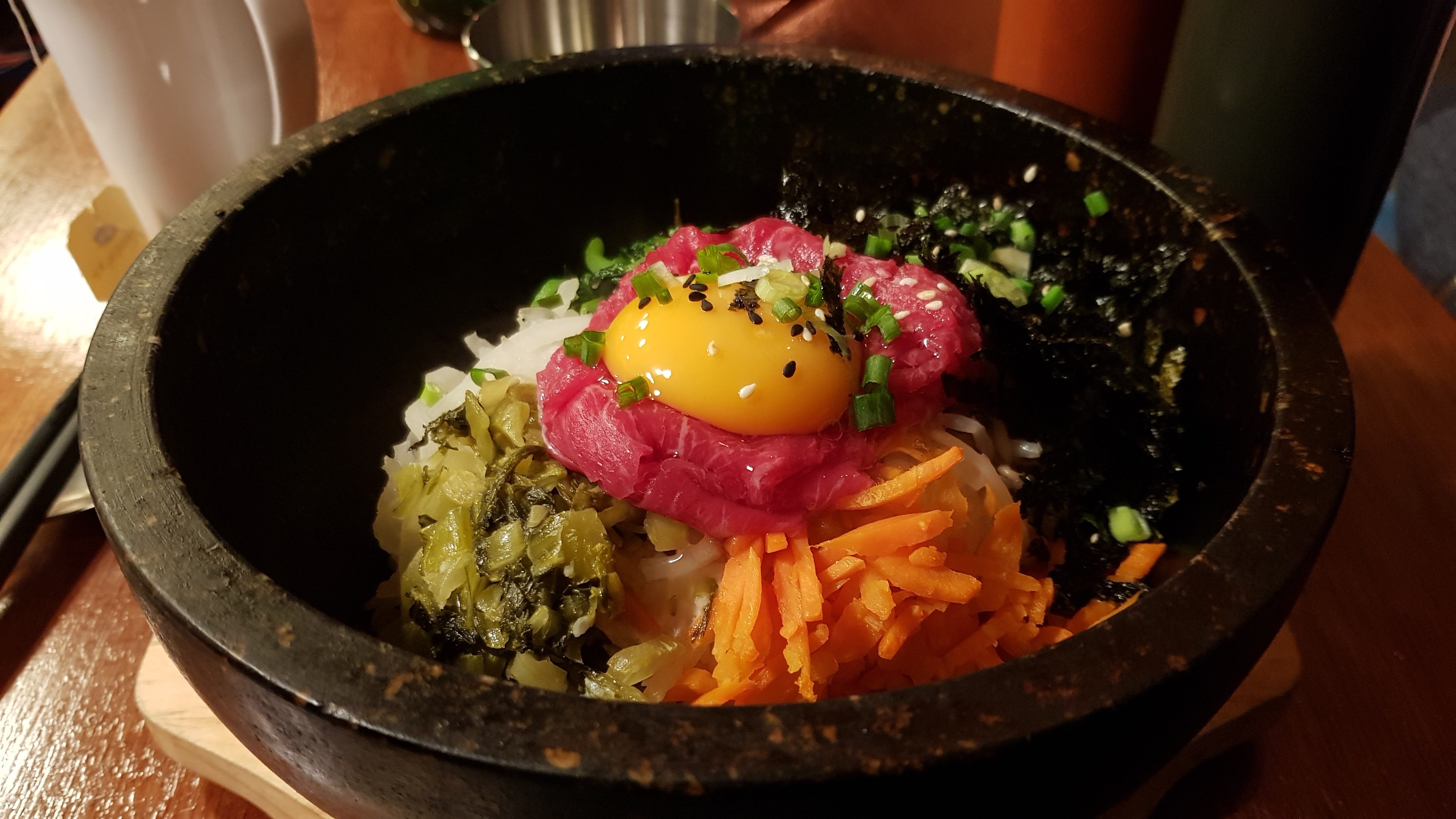 Toi qui entre ici abandonne tout espoir....de manger coréen comme en corée. C'était bon mais très loin de ce que je recherchais d'où ma déception. Le prix est correct pour un déjeuner (entrée+plat 15e) et la déco est sympa