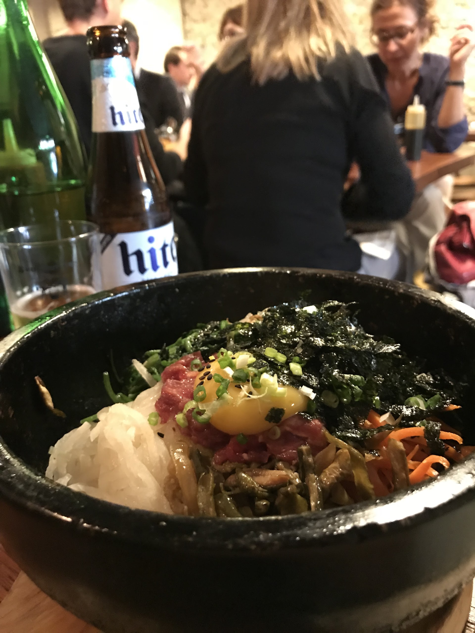 Super endroit! Testé plusieurs fois la formule du midi est copieuse : entrée et plat pour 15€. La carte est excellente, le bibimbap servi dans son bol en pierre brûlant emporte à chaque fois ma préférence tant pour son goût que pour son côté ludique, la cuisson de ses ingrédients se produit à table dans le bol très chaud tout du long de la dégustation et le riz du fond devient croustillant, un régal. Toujours plein, la promiscuité est un peu de mise dans ce restaurant à la décoration épurée, brute mais élégante. Attention donc aux « heures de pointes », mieux vaut réserver.