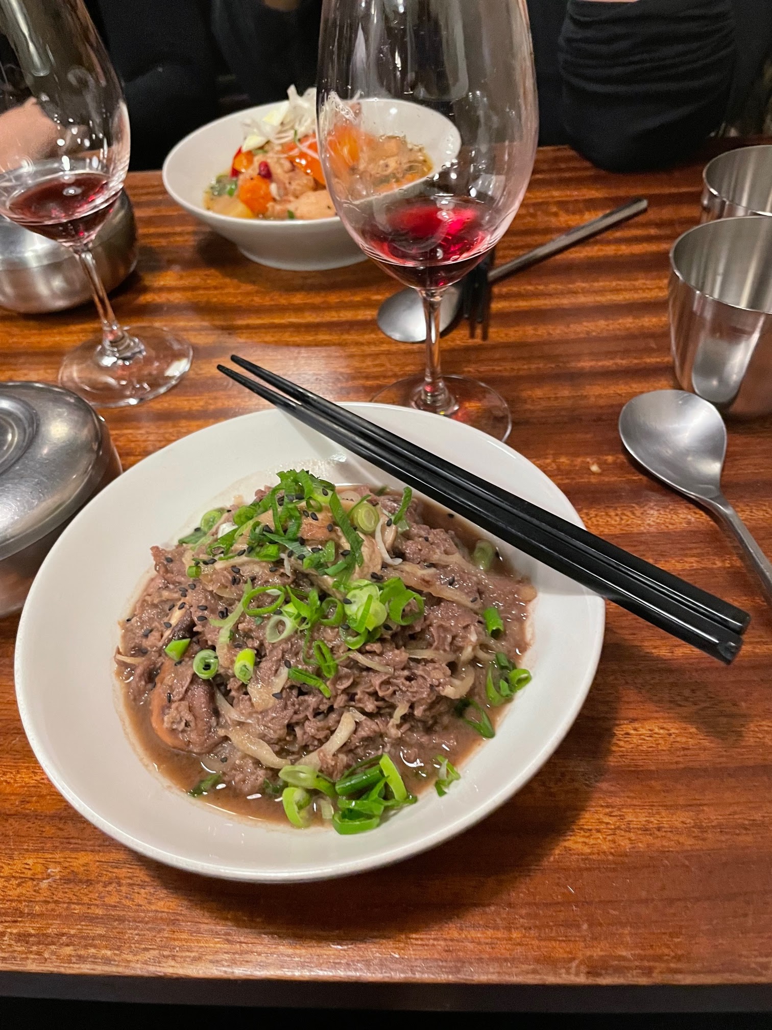 Les plats sont très bons, mais nous avons quitté le restaurant avec une sensation de trop peu. Si vous cherchez plutôt une cuisine coréenne généreuse et familiale , passez votre chemin. Mais si vous cherchez un restaurant avec des plats plus raffinés, c'est très bien.