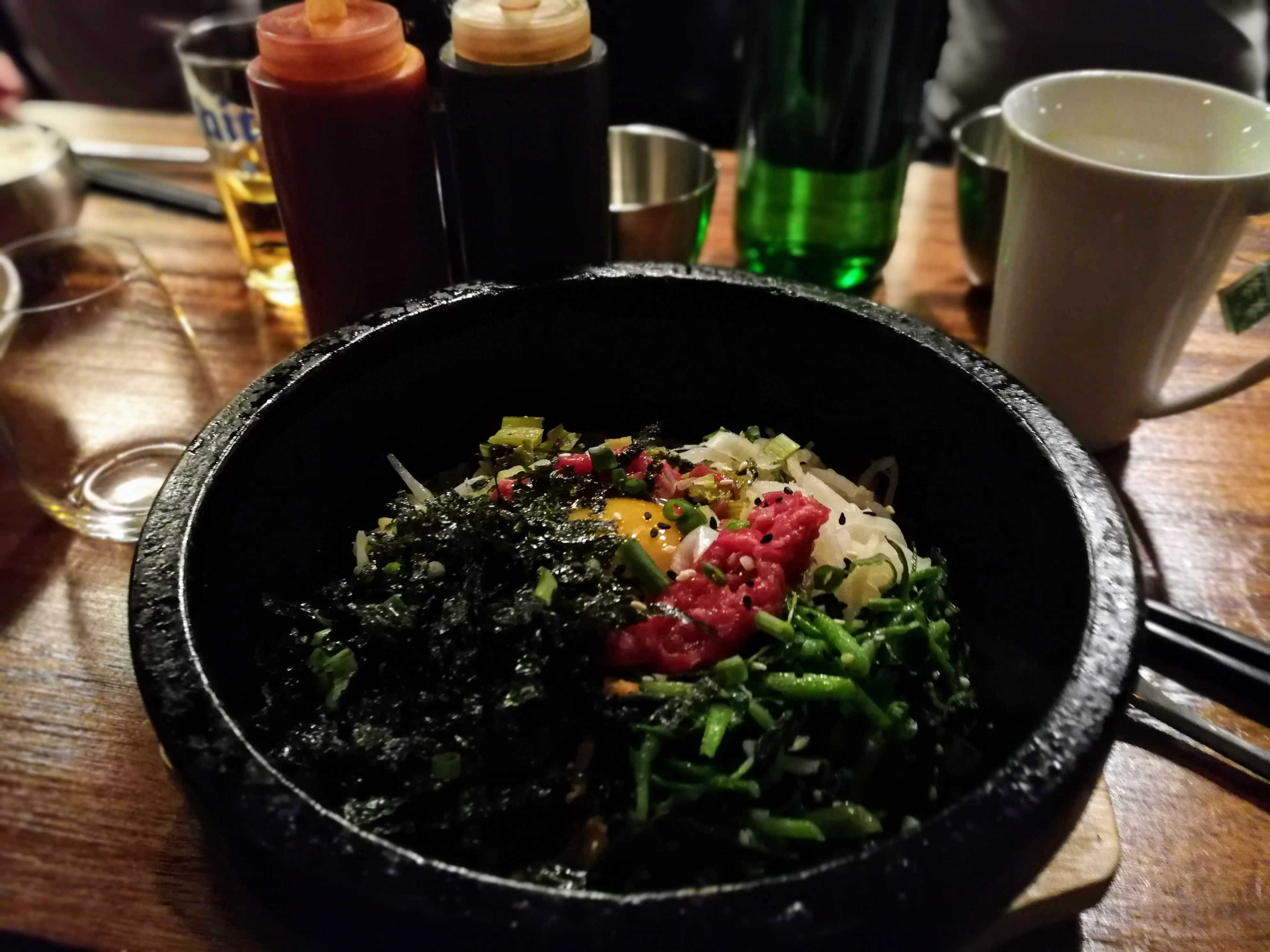 Super restaurant coréen, le bibimbap est très bon. Les crêpes coréennes en entrée sont excellentes. Pas trop cher et peu de monde (étrange !), le cadre est super également (épuré et agréable).