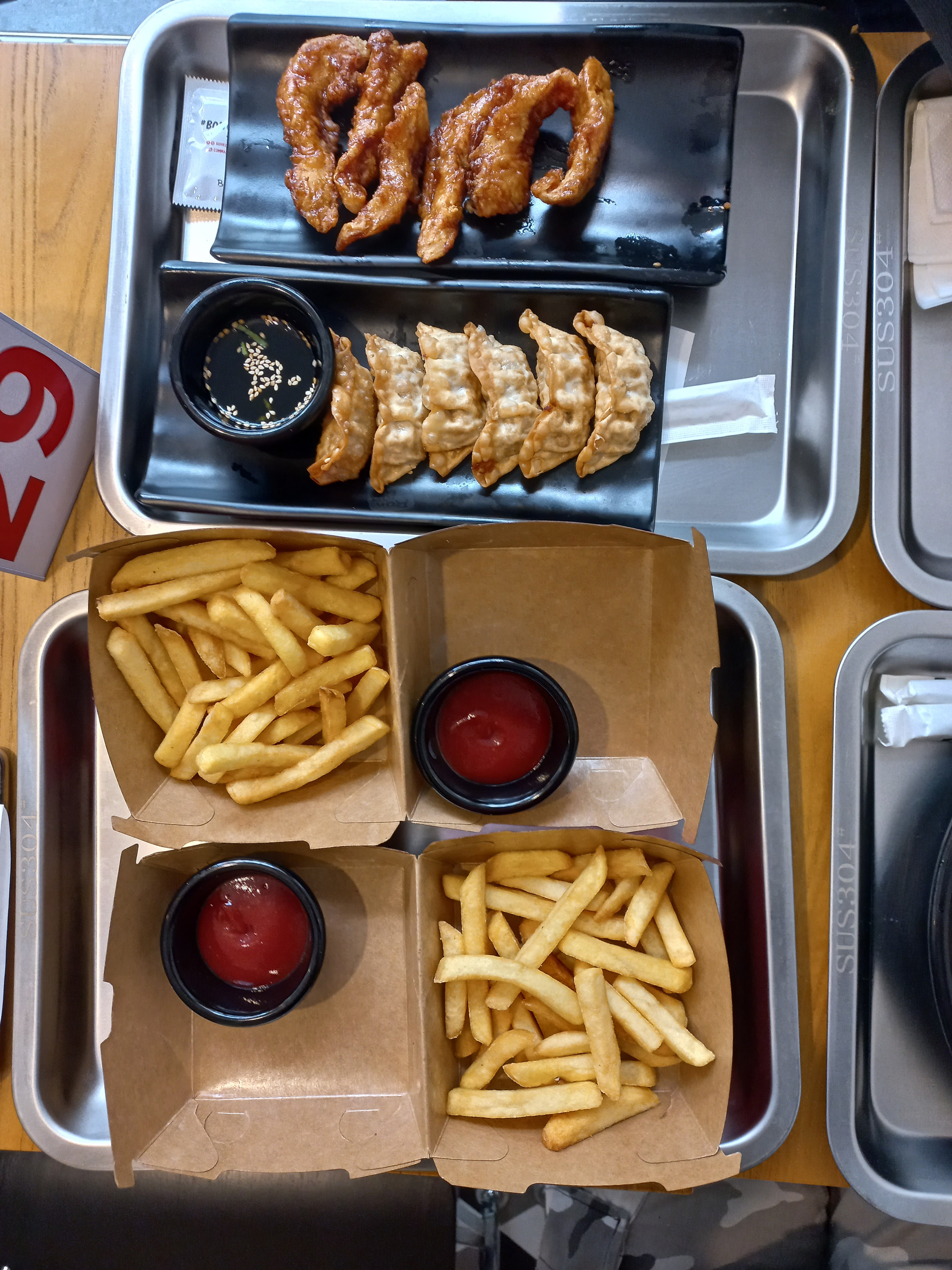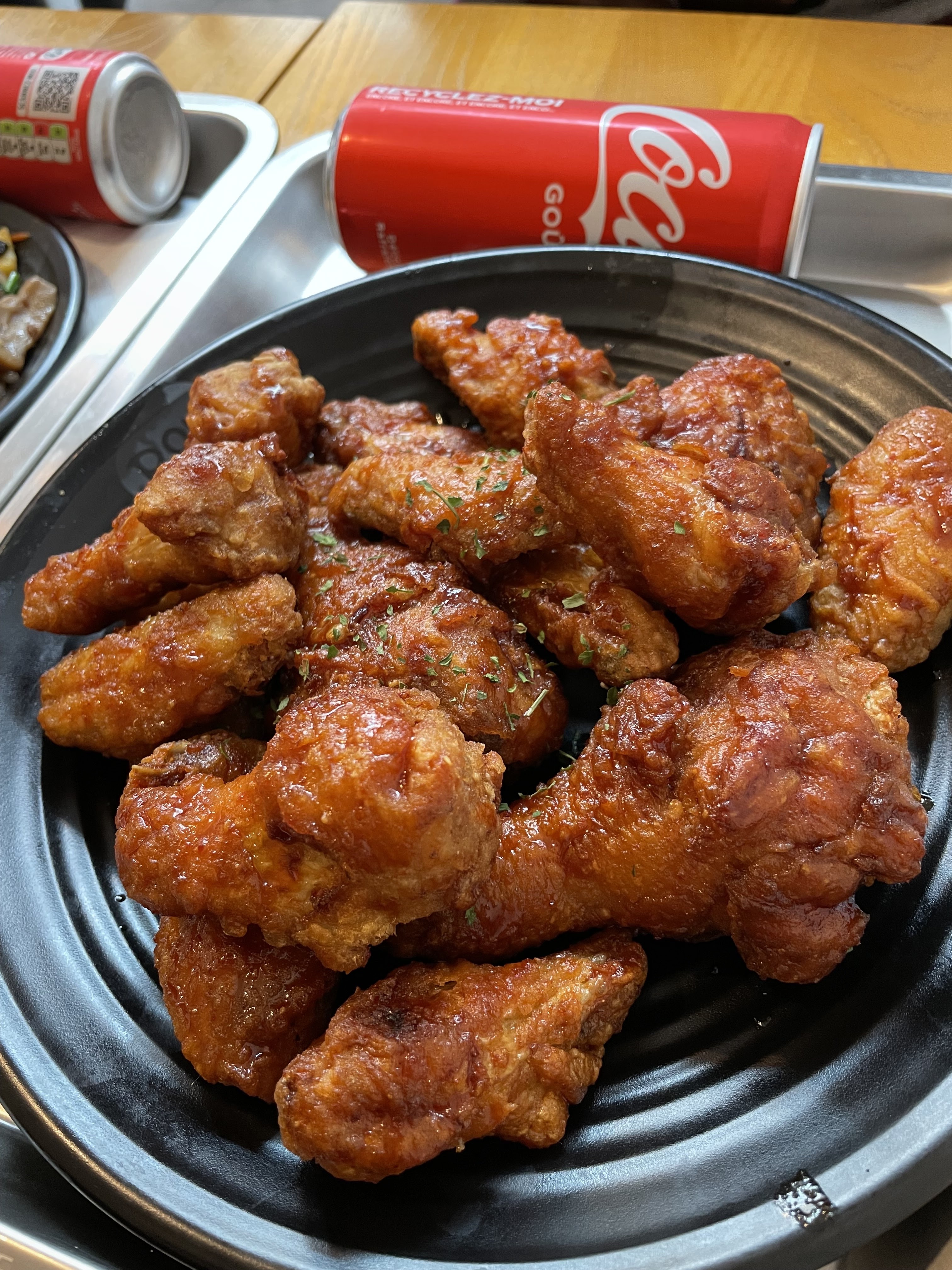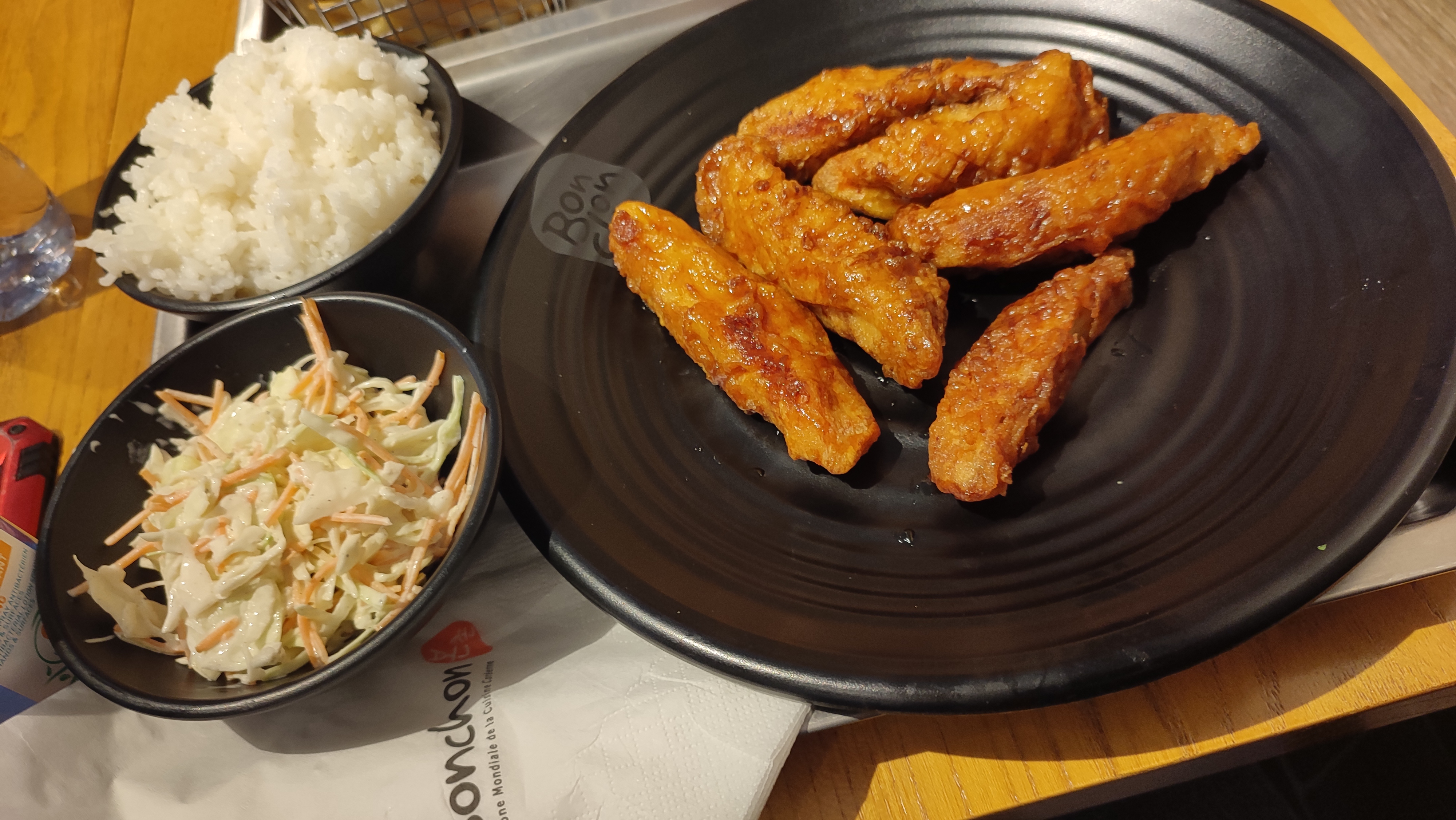 Du fast food coréen de poulet, ça change du KFC, service au comptoir et ambiance fast-food classique. On y va pour l'originalité des plats pas pour la déco 😅