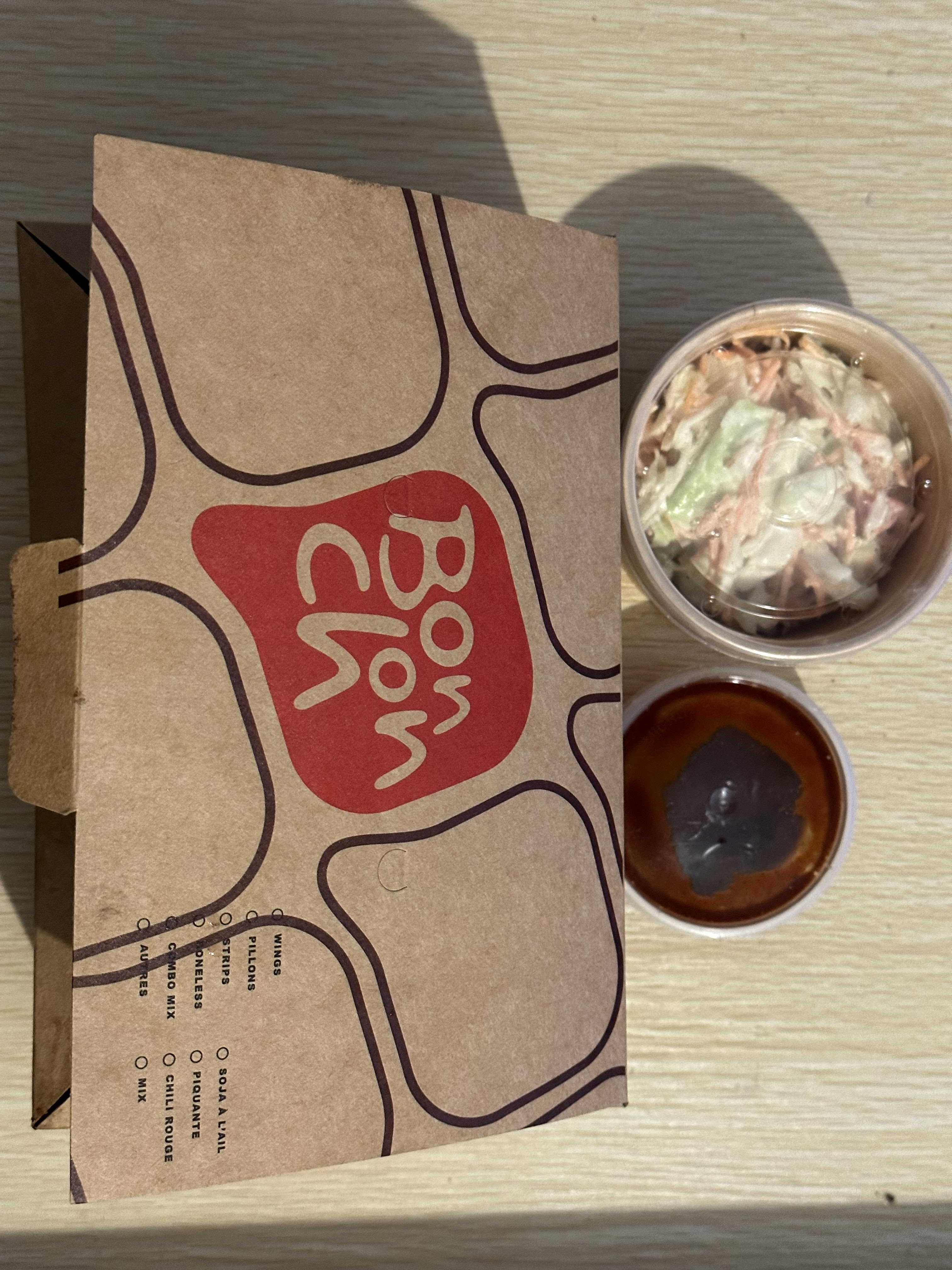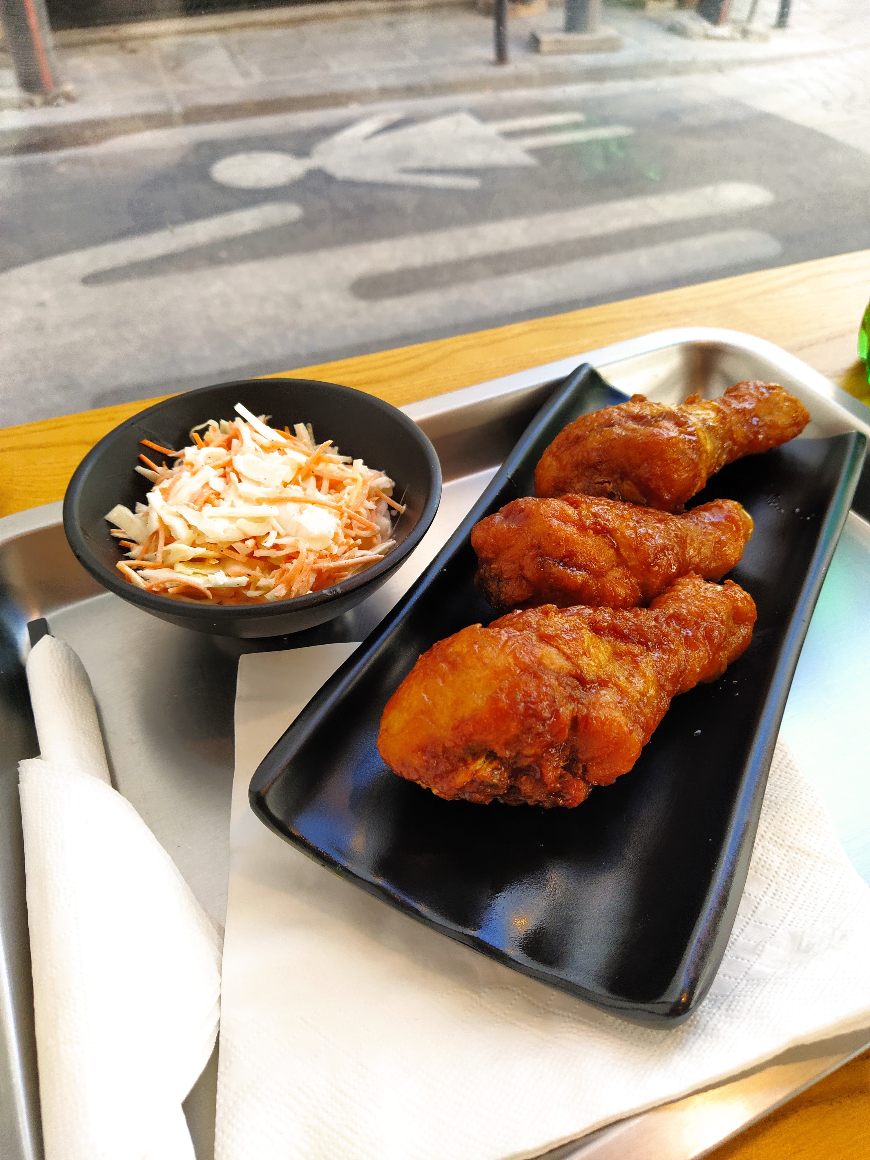 Je m’attendais à mieux après toutes les publicités que j’ai vu dessus sur Instagram. C’est bon mais un trop cher pour ce que c’est. Le poulet est vraiment croustillant, rien à dire dessus, mais j’ai trouvé l’ensemble un peu trop salé. Les sauces (piquantes ou à l’ail) sont trop salées, du coup quand on y trempe les morceaux de poulets ça peut devenir très vite écœurant. Peut-être ce n’est pas le mode d’emploi mais vu qu’on m’a donné des sauces avec les wings j’ai essayé. Sans sauce, c’est pas mal. La salade d’algue était bonne mais sans plus. Le Coleslaw était top par contre. 👍🏽 En tout cas c’était sympa à découvrir.