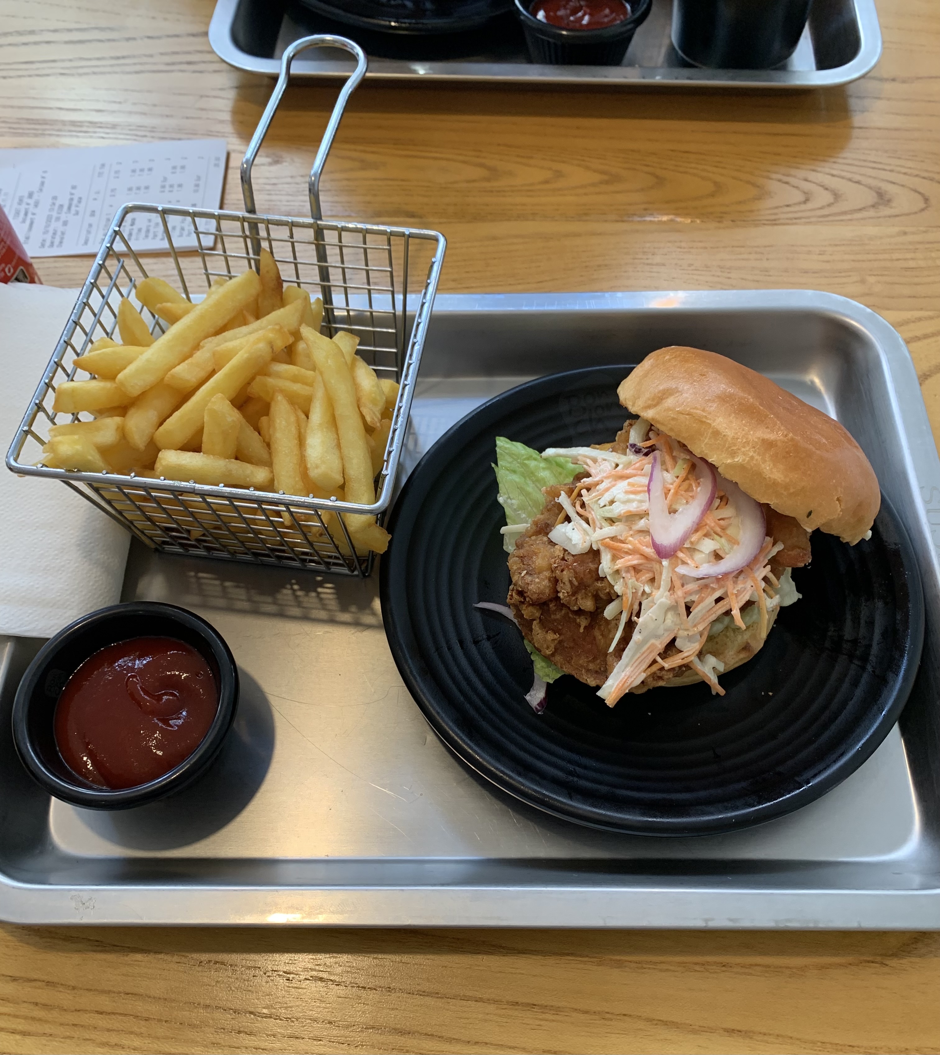 C'est nouveau et encore un peu désorganisé au service, mais ça sert assez vite. J'ai testé les nuggets, c'est proche d'un kfc mais avec un peu plus quali et avec de l'assaisonnement plus exotique. Onions rings & coleslaw classique.