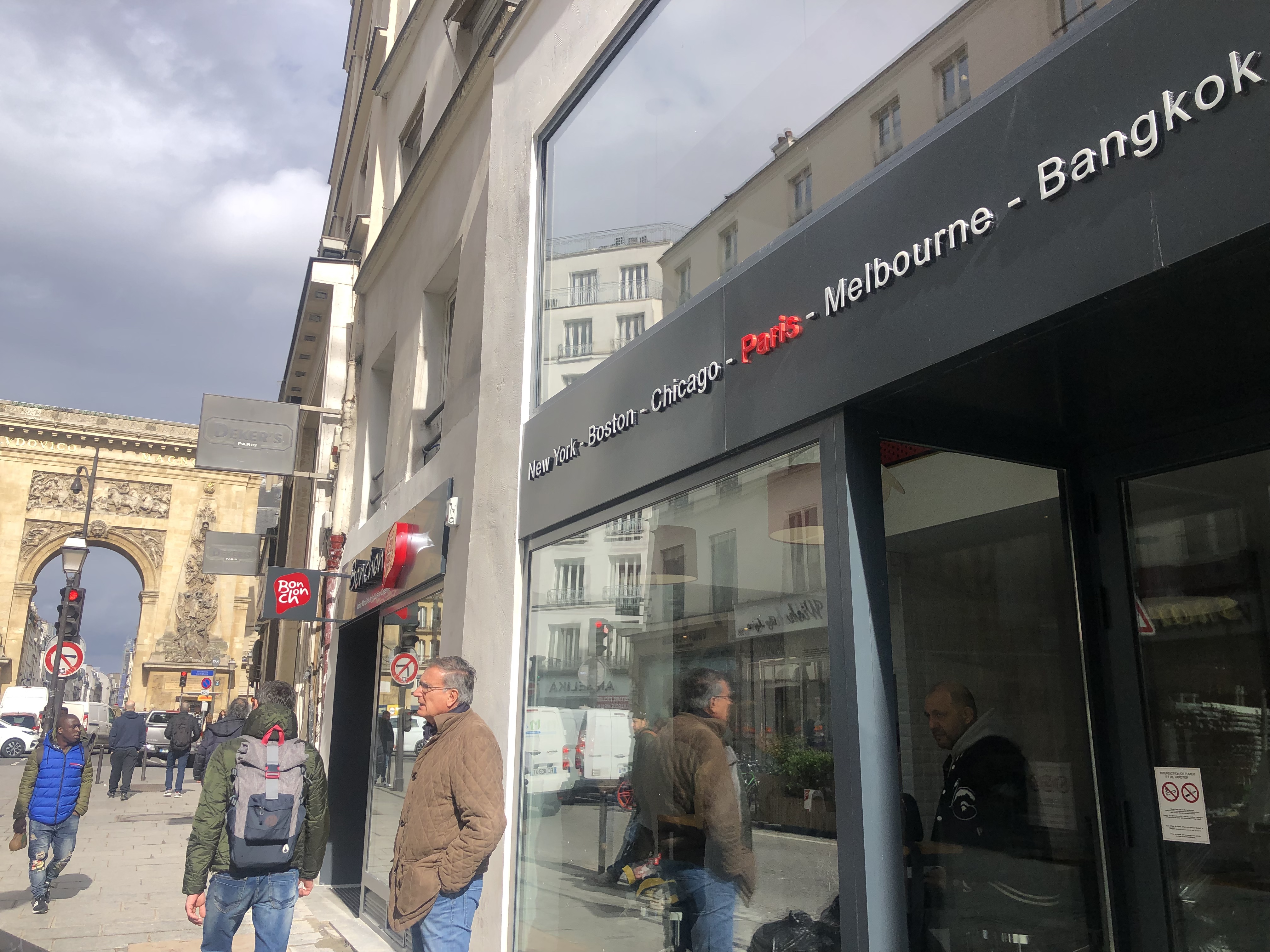 Ne JAMAIS se fier à une réputation venant des USA... Que d'attentes j'avais pour ce restaurant, Certes un énième fast-food, mais avec une réputation qui le précédait.... Mais tout est allé de travers, arrivé sur place, une queue à l'entrée, OK, on est à Paris, donc on fait la queue pour bouffer dans un Fast-food... Jusque là, rien de spécial pour les bobos que nous sommes ! Ce qui n'est pas normal, c'est l'attente de plus de 1h, alors que la queue était très courte, et surtout l'organisation apocalyptique à l'intérieur ! Les trois quarts des serveurs vibrillonnaient sans une once d'efficacité, les clients attendant dehors regardaient un restaurant à moitié vide, avec un patron et visiblement le consultant du siège qui ne faisaient STRICTEMENT RIEN ! À cet instant, votre question légitime, cela pourrait être : mais pourquoi ne pas être parti ? Et cette question je continue de me la poser ! Parce que la suite ne fut qu'une interminable chute ! En entrant, trouver la moitié de la carte indisponible fut le premier pas vers le fond ! Et attendre encore 30min attablé, avec des clients qui partageaient cette LONGUE attente, fut le second pas. Mais au final le pire est ce qui est arrivé ensuite, c'est à dire les plats : Des portions rachitiques, des sauces taillées dans des dés à coudre, et une addition de 56€ à deux tout de même ! Et toujours les patrons qui toisaient la salle sans mettre la main à la pâte. Alors je veux bien que le resto fusse peut être en rodage, mais si c'eût été le cas, il eut fallu le dire ! Donc pour résumer : dans le coin, et surtout de l'autre côté de la porte saint Denis, il y a plein d'alternatives, des petites adresses, bien moins chères, bien plus amusantes, fait sur place, et sans hype.. avec un supplément d'âme ! Toutefois je tiens à souligner qu'une serveuse vraiment efficace surnageait dans ce naufrage, et cela faisait un pincement au cœur de la voir essayer de sauver ce qui pouvait l'être pendant que les chefs ne levaient pas les yeux de leurs tablettes...