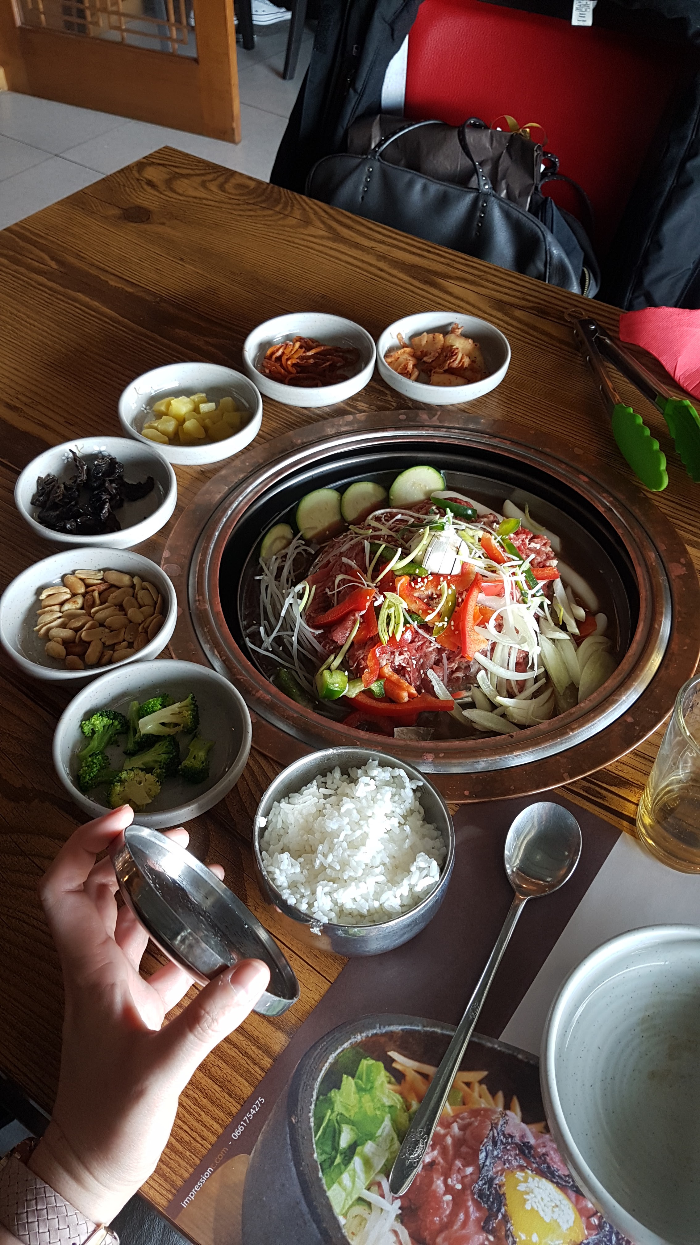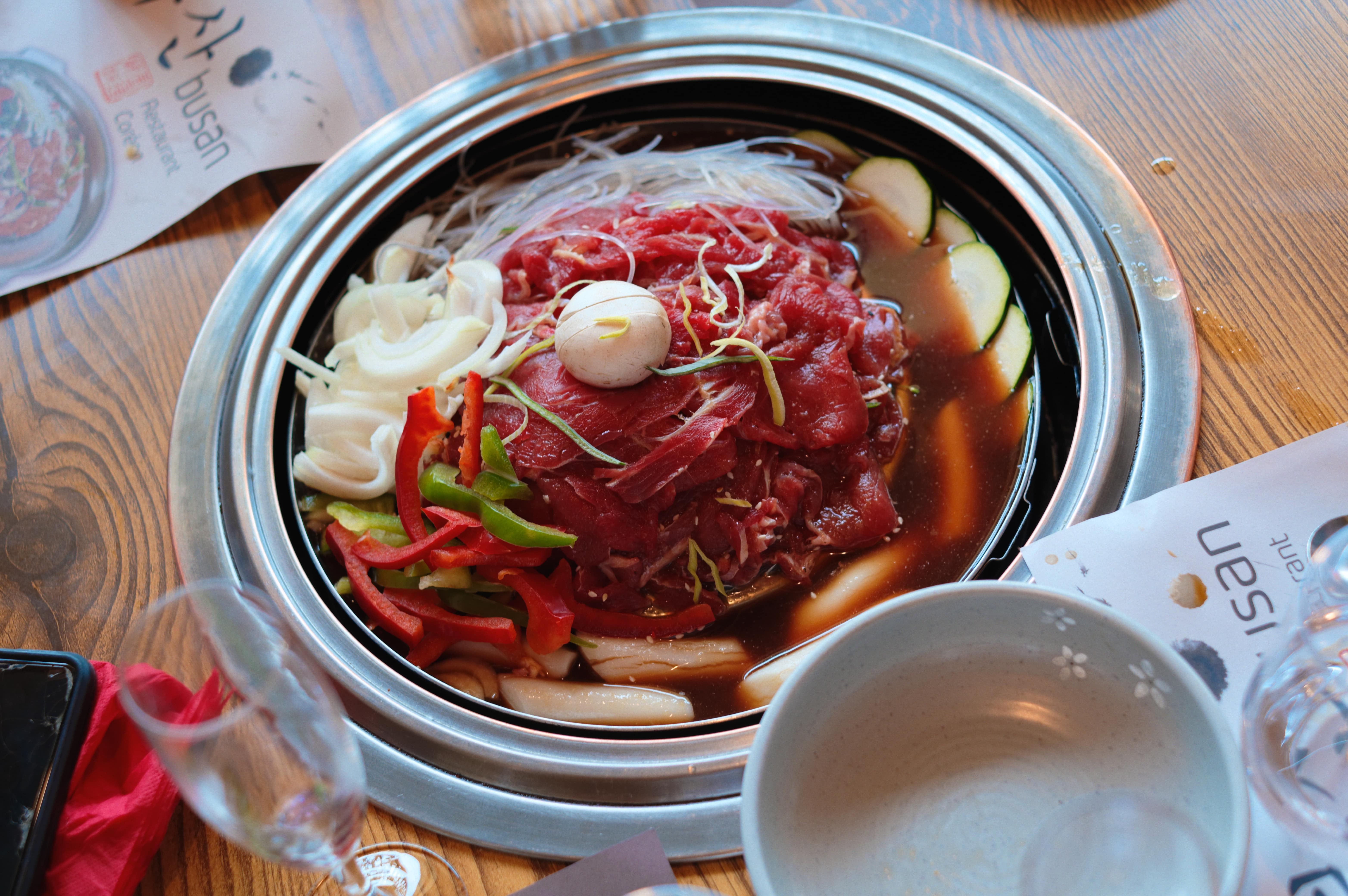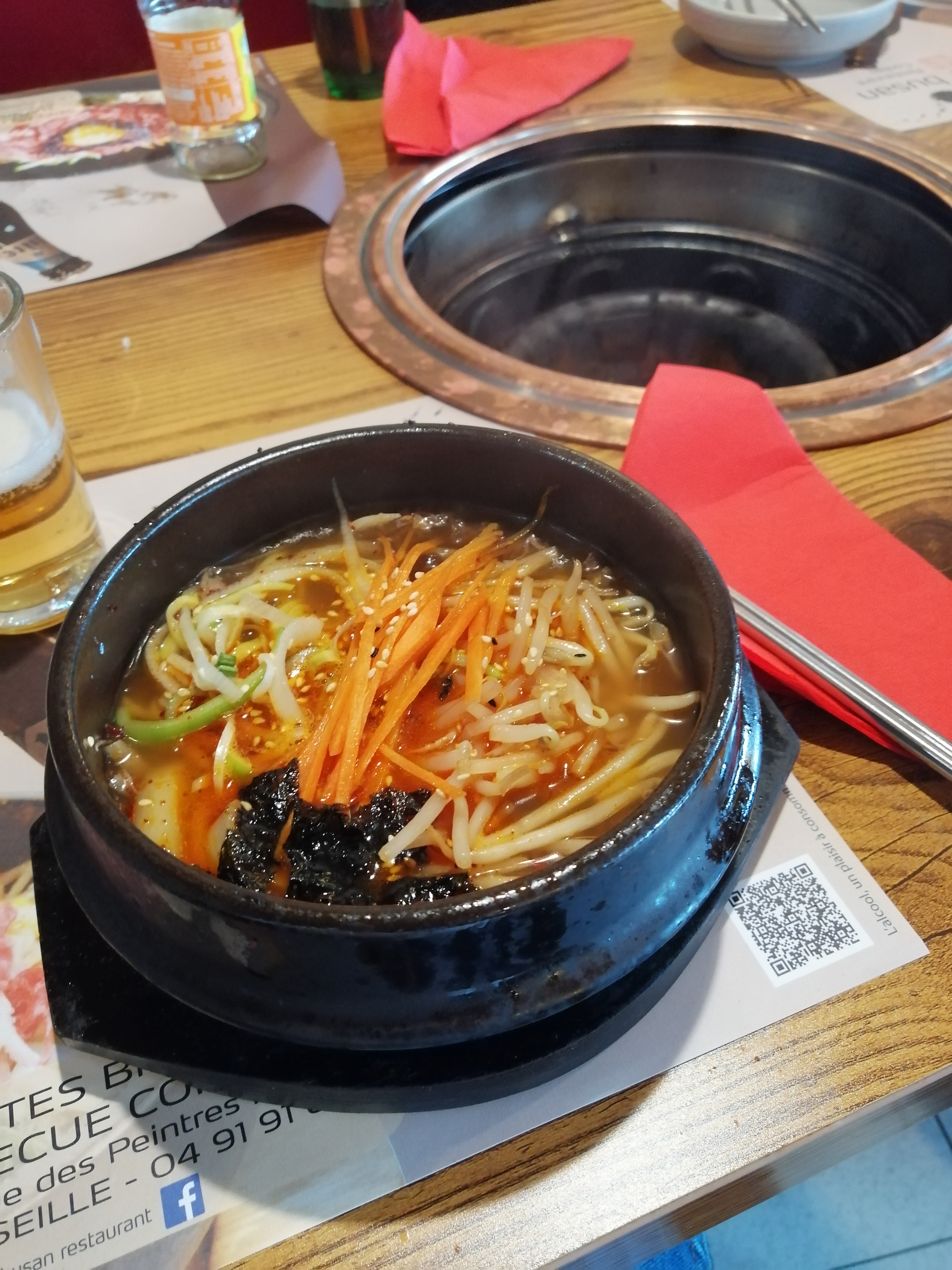 La fondue coréenne à la française. Produit correct, décor simpliste. Dommage que les accompagnements (légumes crus dans des petits raviers) soient sans aucun intérêt, peut-être à utiliser d'une manière inconnue. Attention à la qualité de la viande qui s'est dégradée.