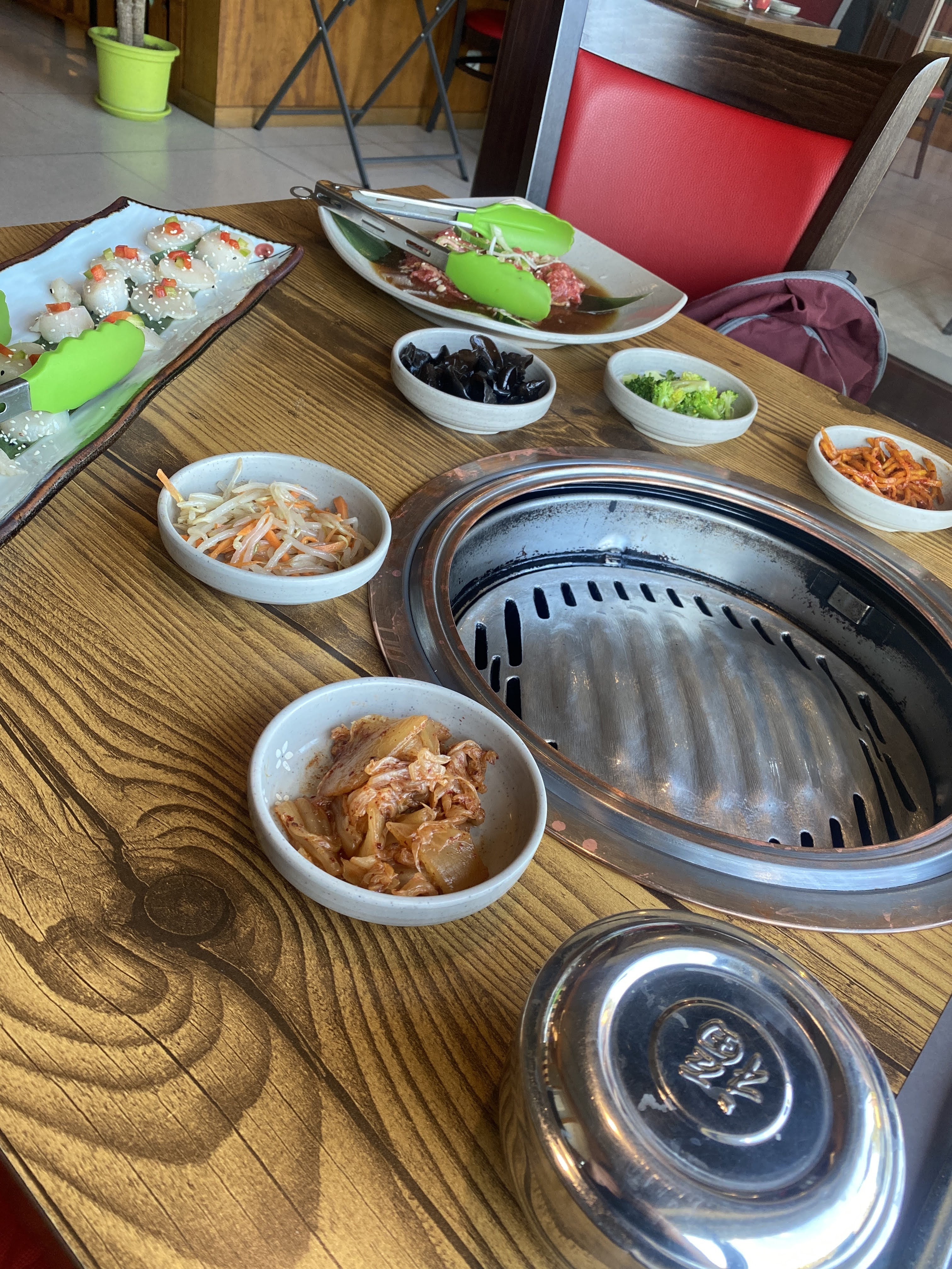 le barbecue au milieu de la table, c'est excellent. Tout était bon, boeuf mariné, st jacques, et le personnel était très sympathique