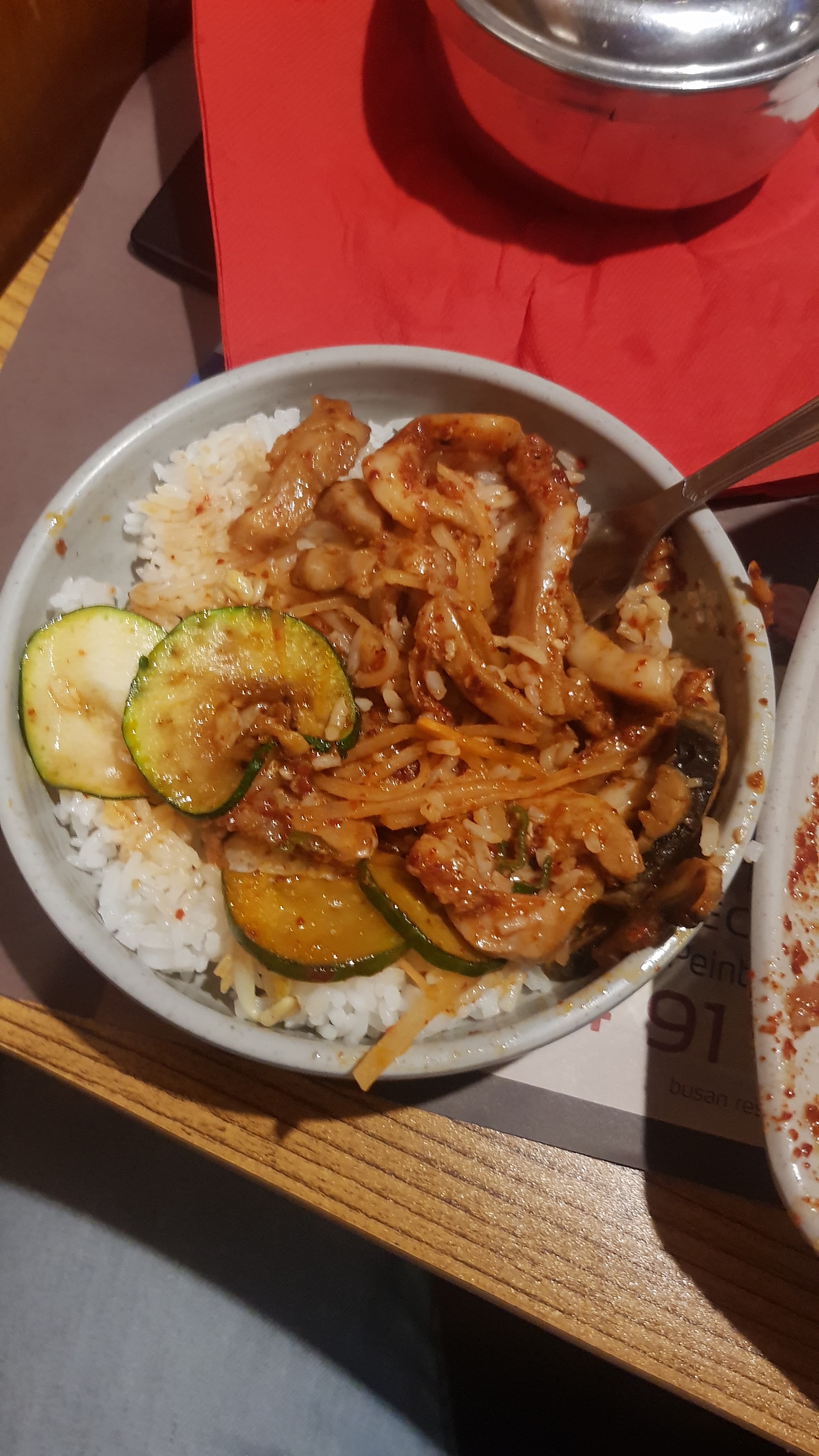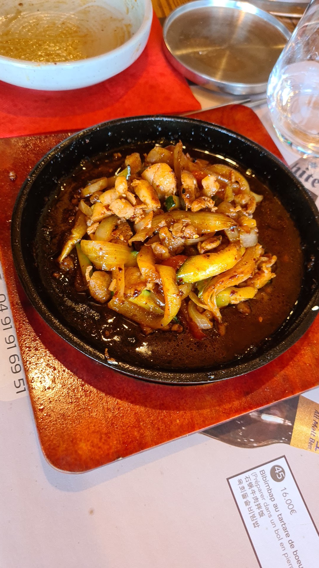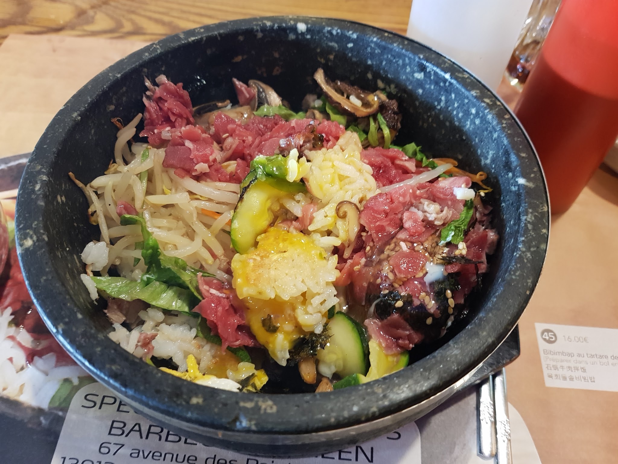 Amateur de bibimpap passez votre chemin Très peu de légumes et pas du tout d assaisonnement. Très déçu Mon conjoint a pris les grillades mais manque de viande. N a pas mangé à sa faim.