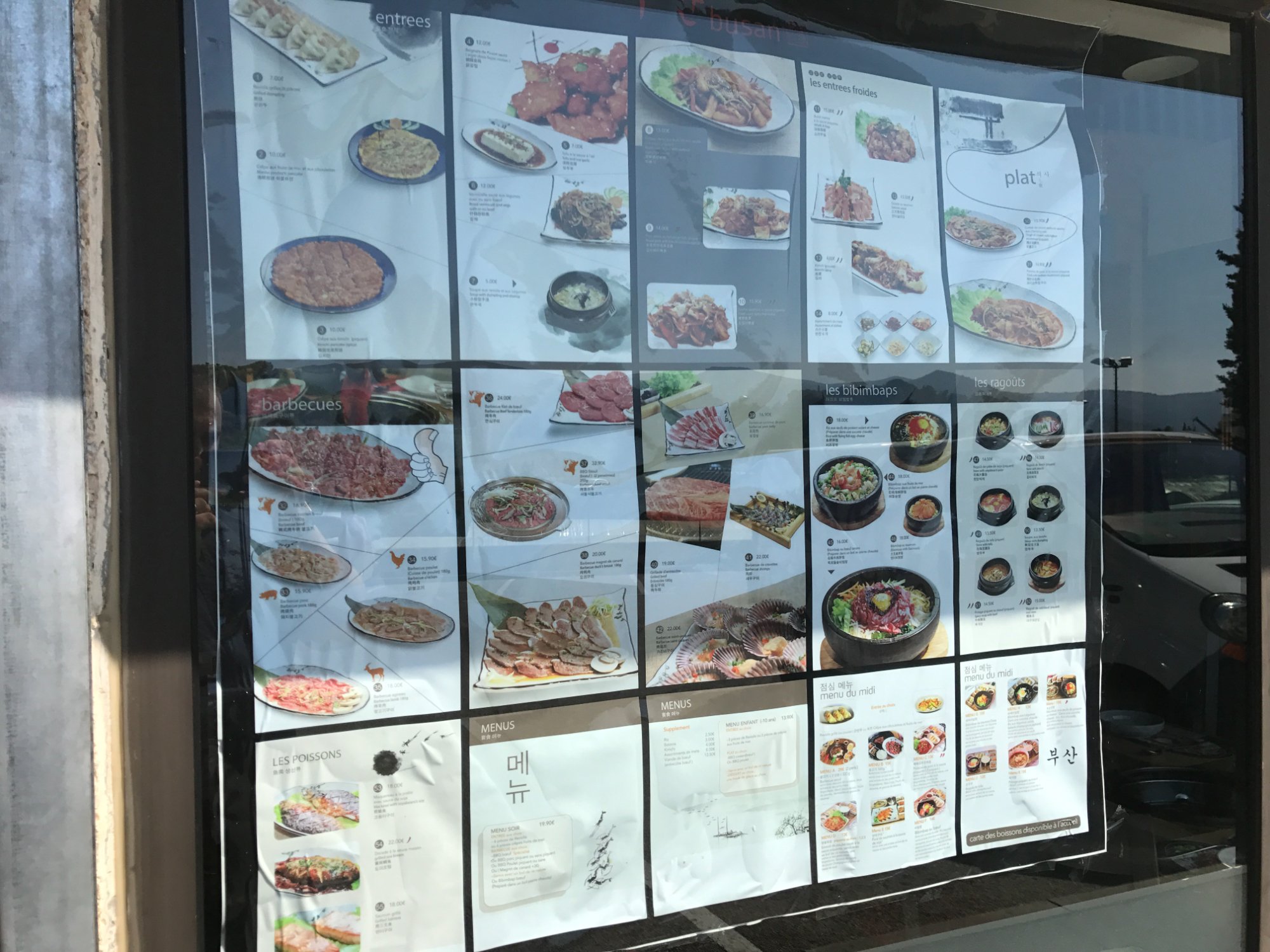 Une chose est sûre.. On n'y retournera pas... On a prix le menu à 19.90€ en prenant les 2 entrées et 2 plats différents pour partager... 4 minis crêpes de 4x4 cm avec pas grand chose dedans... Pour le barbecue (dedans bien gras) rien d'extraordinaire... Chez moi j'ai une plancha c'est pareil... Je n'ai rien trouvé de coréen, la viande (très grasse mais tendre mais vraiment chiffonnade) qui marinaut dans une sauce chinoise , et franchement ils sont chiches sur les légumes, heureusement qu'il y a un bol de riz. De plus on nous a servi les entrées alors qu'on était à l'apéro , une fois les entrées finies on nous servait le plat principal, j'ai dû stopper le service sinon en 30 min on aurait fini de manger. Pour les desserts on est parti ailleurs, quand j'ai parlé au serveur des desserts il m'a répondu, oui c'est pas top !! Bon OK.. Pour le décor c'est passable à part une carafe avec bouchon orange en plastique et une bouteille de ketchup en plastique rouge.. Pas très classe... Pour parfaire le tout on a eu affaire à une serveuse pas très souriante, avec un tablier, pas très classe, on se serait cru dans une brasserie, le serveur était mieux... Bref... Pour 60€ à deux....