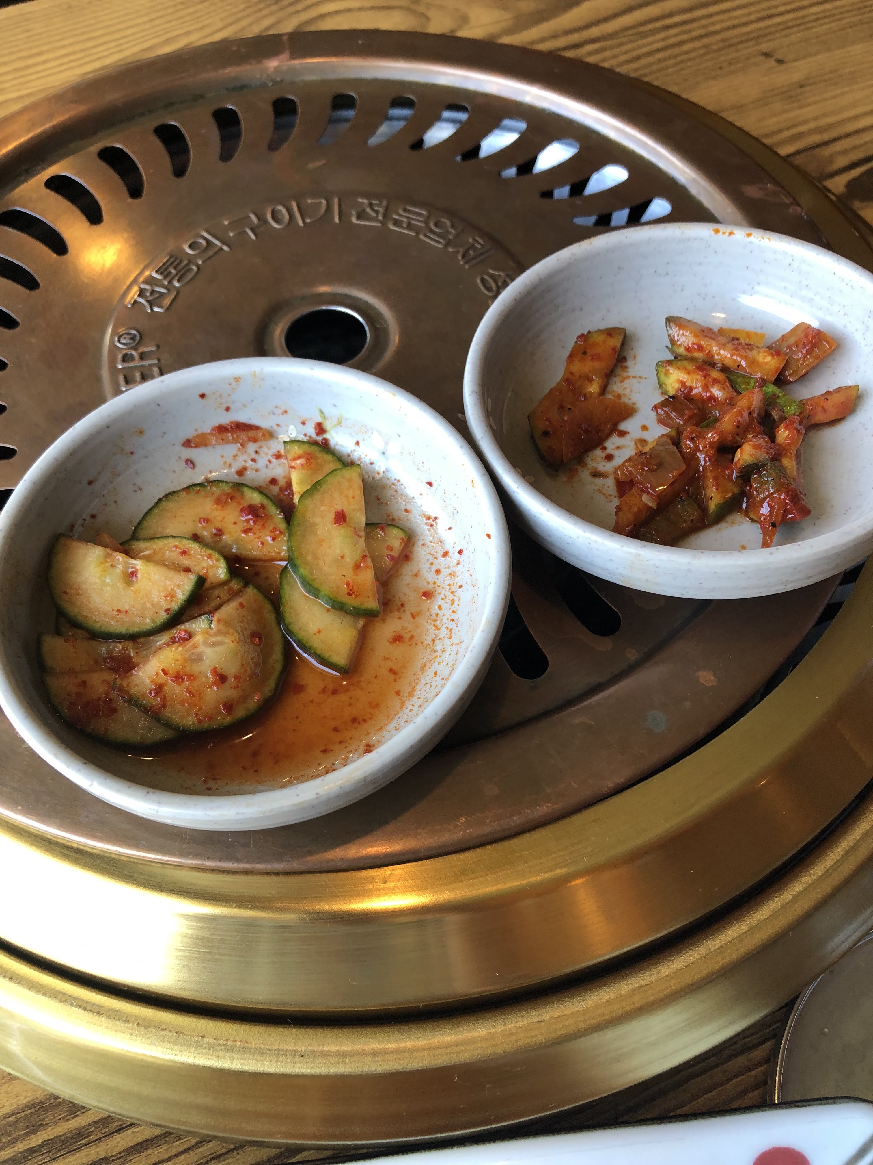 Amateurs de bbq coréen grâce à nos nombreux voyages à Séoul, nous étions ravis de venir tester ce resto qui vante d'être specialisé dans le bbq coréen sur Marseille : malheureusement nous n'avons pas été transporté gustativement jusqu'à Hondae ou d'autres quartiers de Séoul. Certes la qualité des viandes est bonne (boeuf, poulet, porc, poitrine de porc et magret) mais dans mes souvenirs, la viande de boeuf n'est pas aussi finement coupée. Quant aux accompagnements, ils sont fades, inexistant au niveau quantité, le kimchi n'a aucun goût, ou est l'ail fermenté? les feuilles de sésame, de salade ? pour faire des rouleaux avec la viande et la deguster dans la sauce. Enfin côté prix je trouve que c'est élevé. Attention pour les groupes, ne venez pas à plus de 10 personnes au risque de ne pas être tous ensemble et ne reserver surtout pas sur LA FOURCHETTE, au risque de vous faire annuler une réservation par le restaurant 2h avant, et lorsque vous les appeler en direct pour réserver de nouveau en expliquant votre mésaventure, ils osent vous dire que c'est vous qui avez annulé et que si l'on veut une table il faut venir à 19h pour la libérer à 20h30. Bref l'accueil et le service sont très loin de ceux des coréens que l'on a connu.