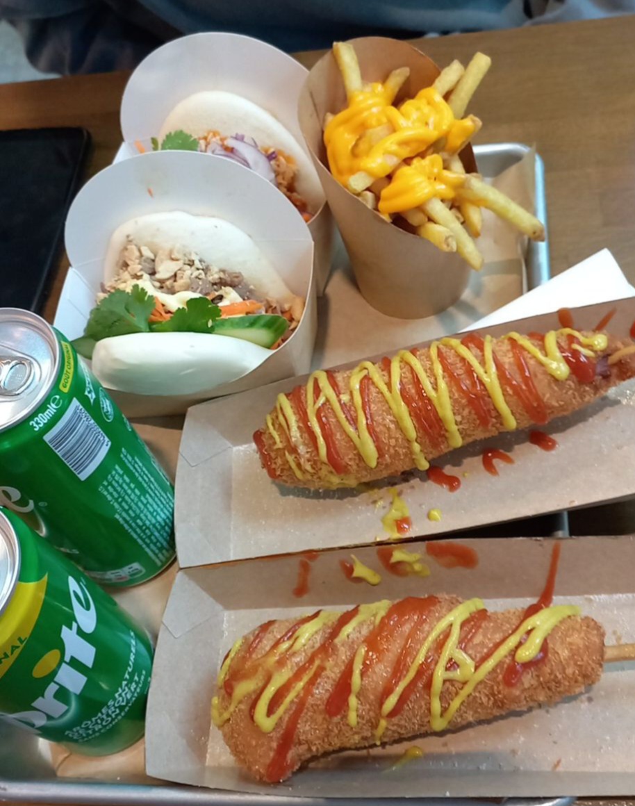 guabao très bon mais corndog décevant (je comprends pas pourquoi il y avait du sucre dessus et en général c'était pas a mon goût). c'est cher pour des petites portions