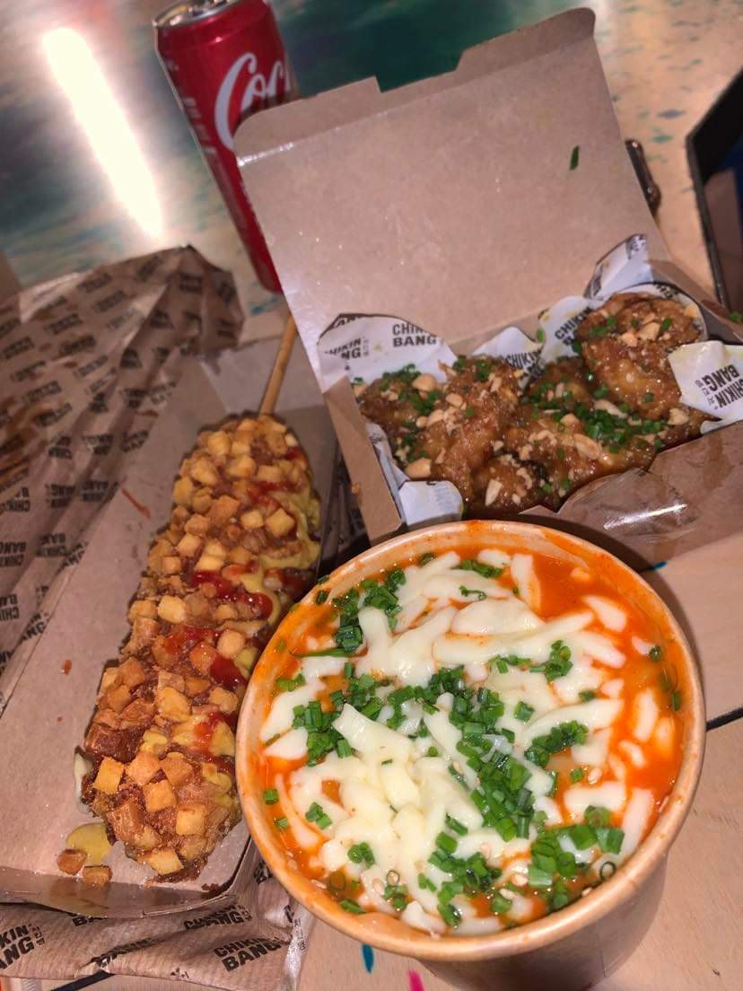 Les corn dogs très bon. De préférence celui avec des morceau de patate. Le classique j'ai un peu trouvé épais. Un peu déçu des tteokbokki, pas assez cheesy comme sur l'écran de commande, mais bon sinn c'était bon dans l'ensemble.