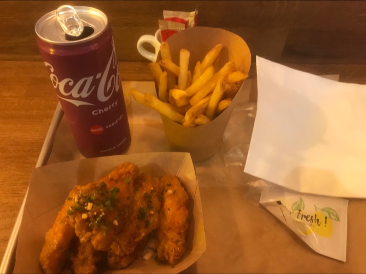 c’est un de mes restaurants de poulet frit préférés sur lyon. les sauces sont toujours extraordinaires, le personnel adorable. deux petits bémols, cependant: souvent, les corn dogs sont sortis un tout petit peu trop tôt et ne sont pas totalement cuits. et, quand il y a du monde, le brouhaha empêche une conversation entre les convives. venez en dehors des heures de rush et vous profiterez d’une ambiance fun et pop avec de la kpop et des néons qui donnent l’impression d’être dans une ruelle en plein séoul !