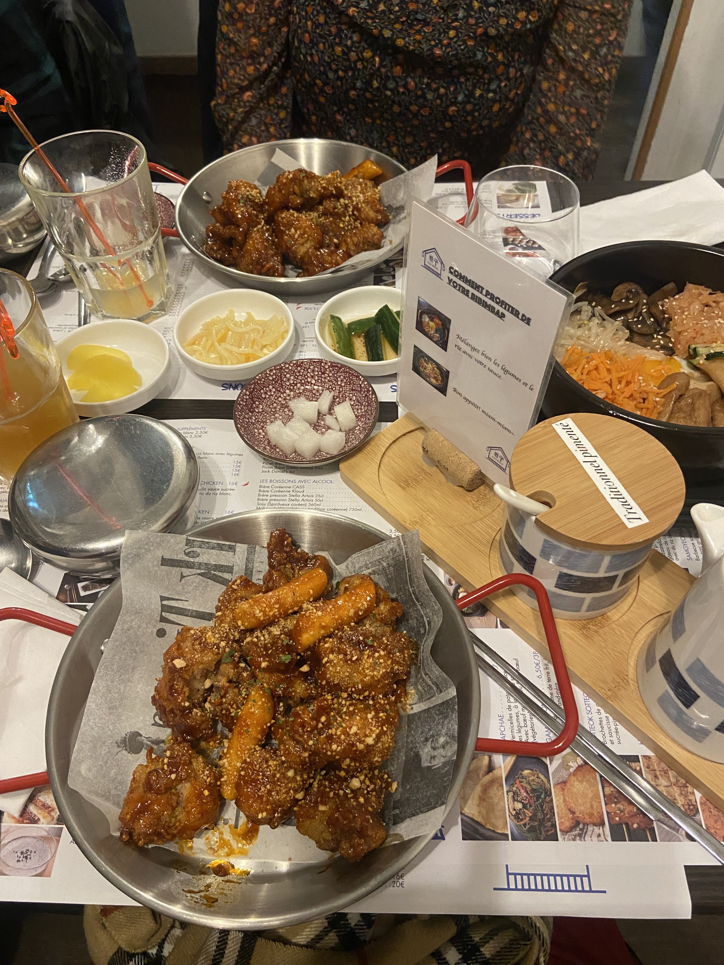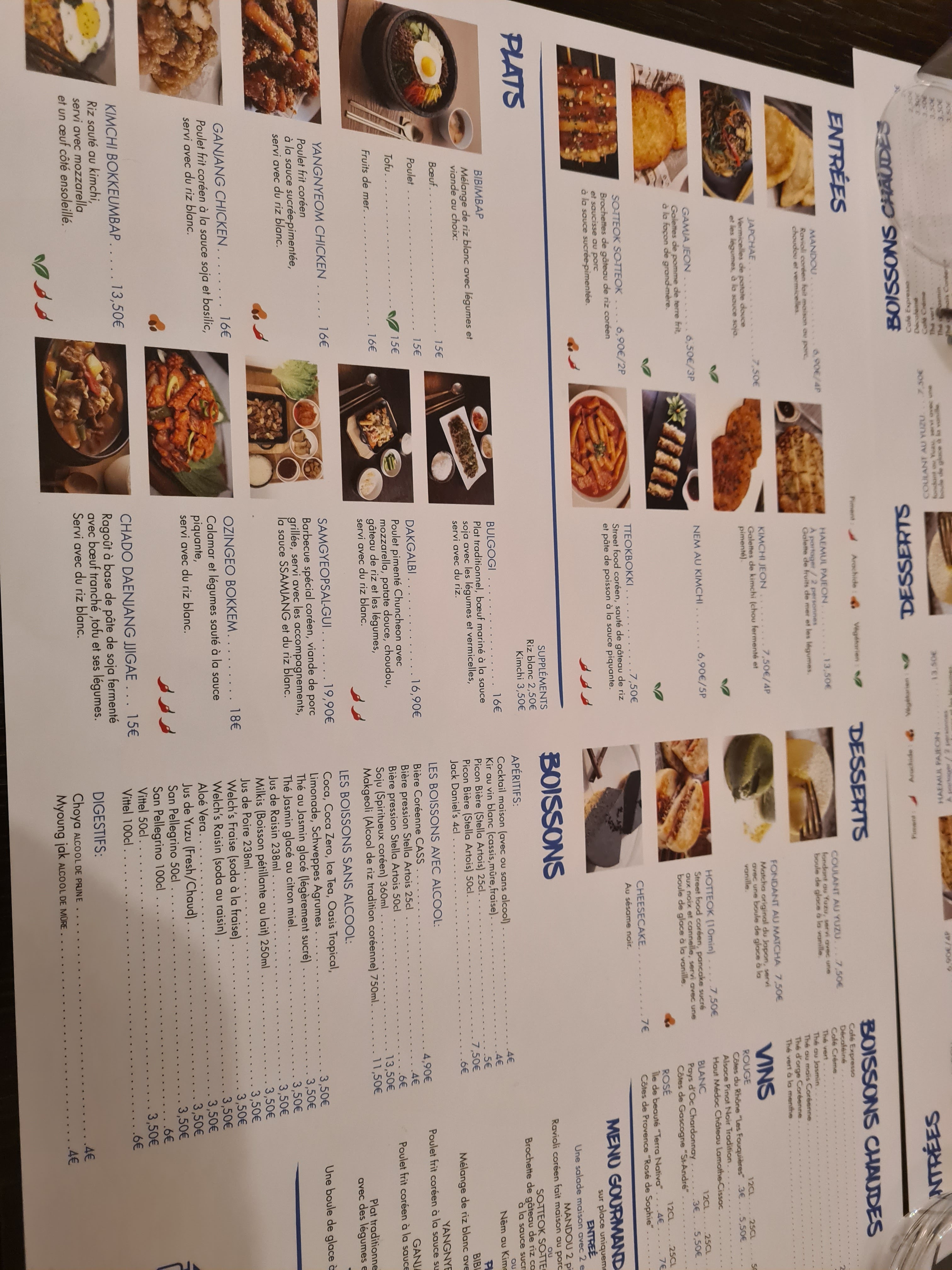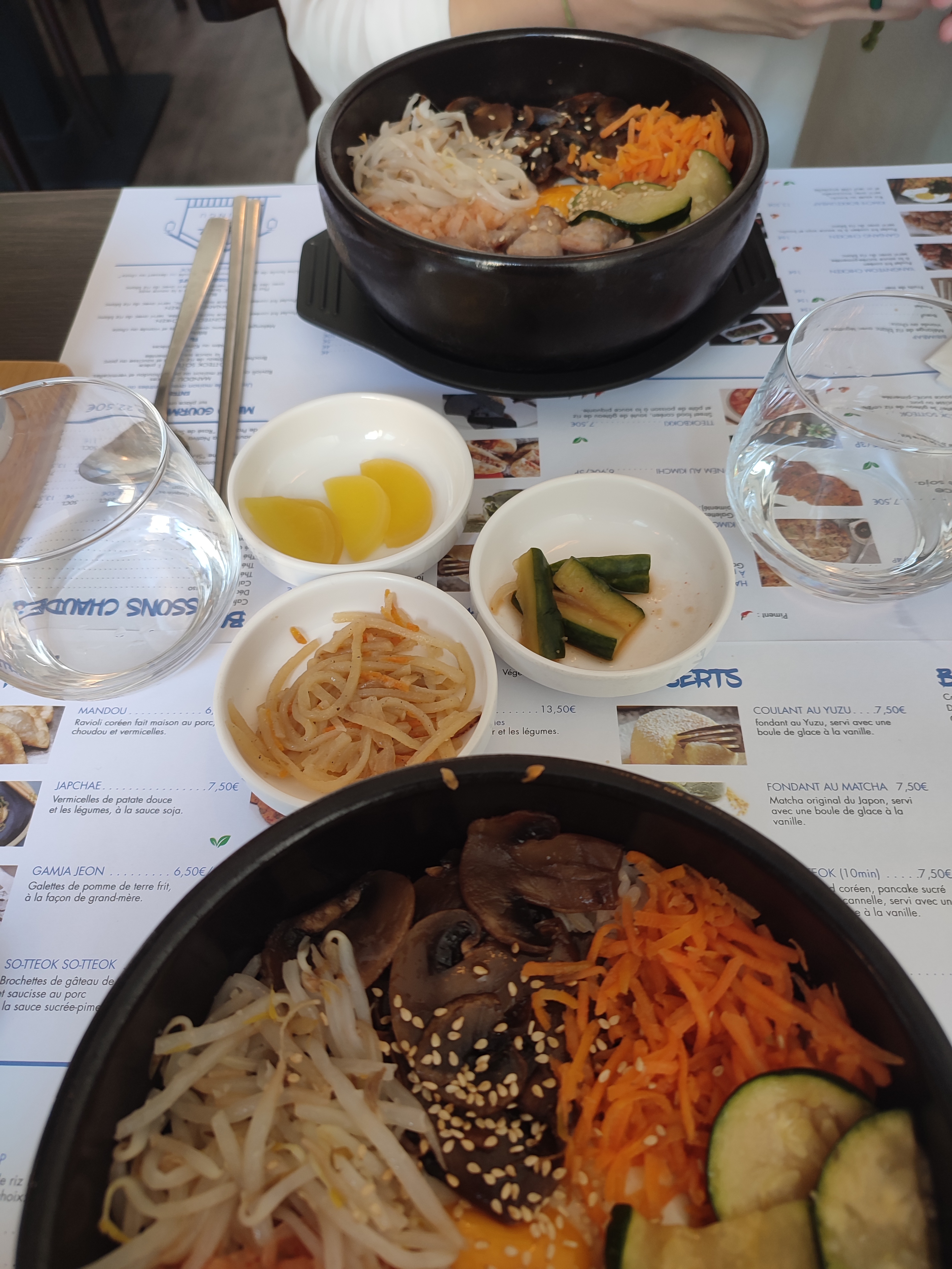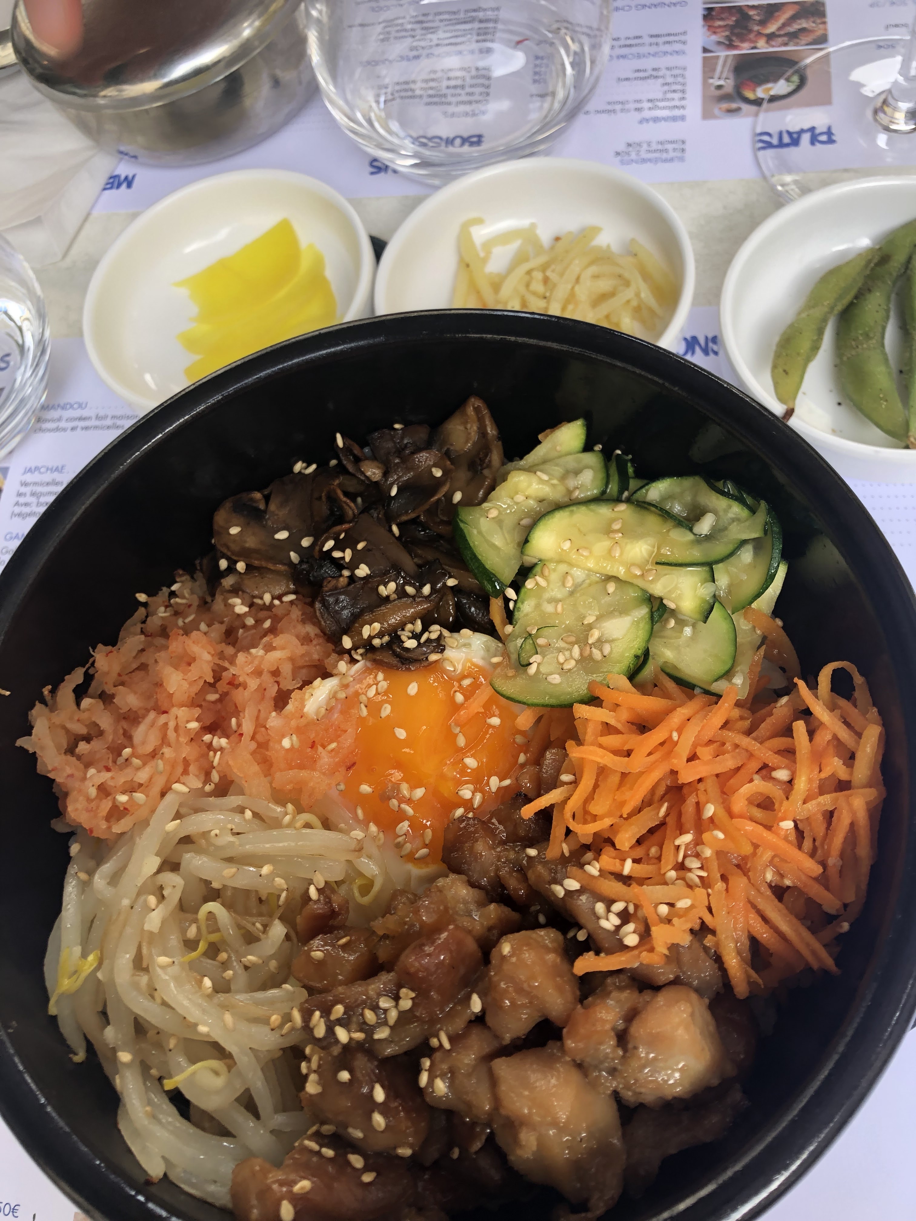 Repas délicieux ,le poulet , absolument canon ,le bibimbap,super et mon boulgogi....une tuerie . Je recommande les yeux fermés si vous aimez la vraie et bonne nourriture coréenne