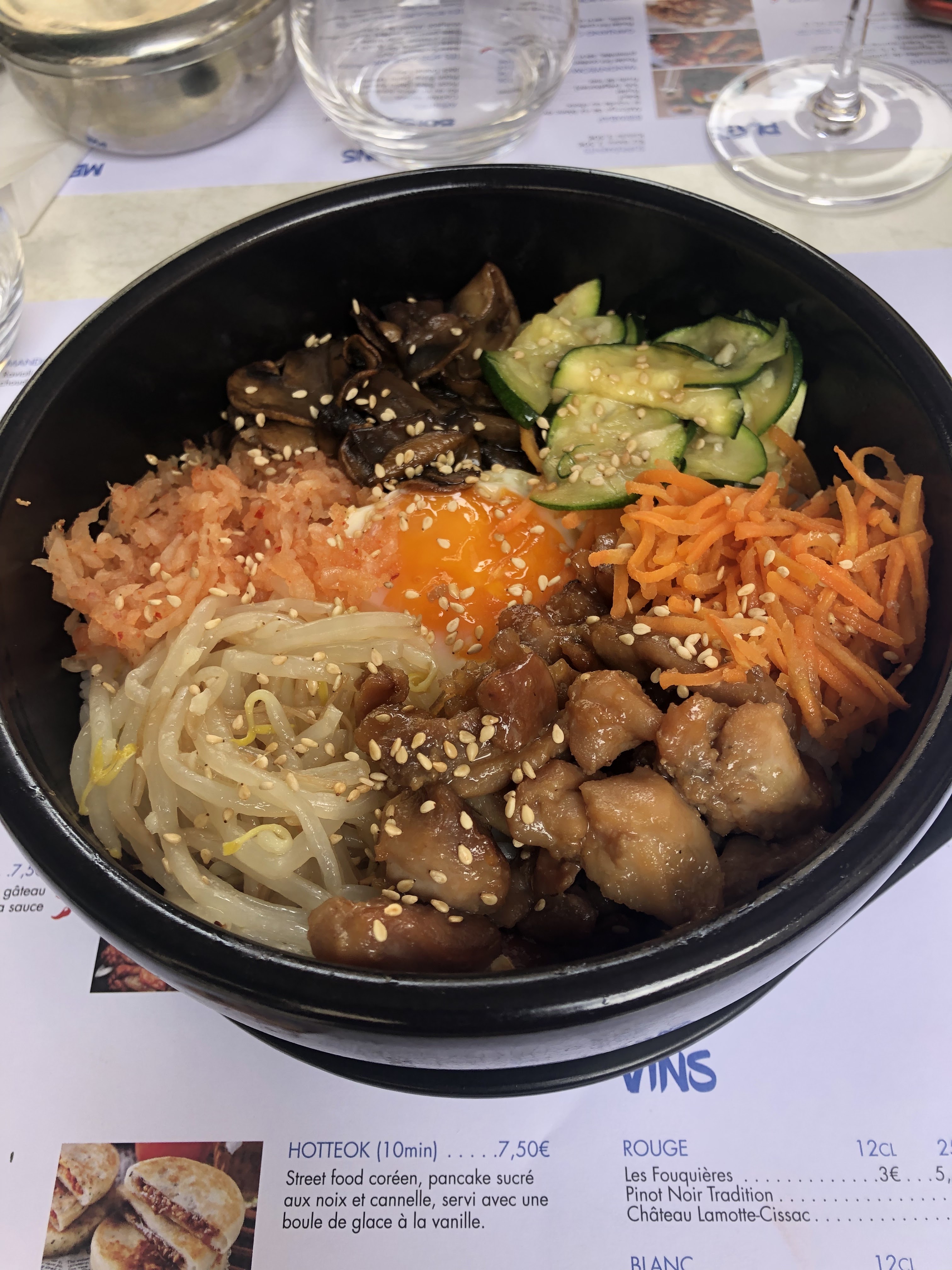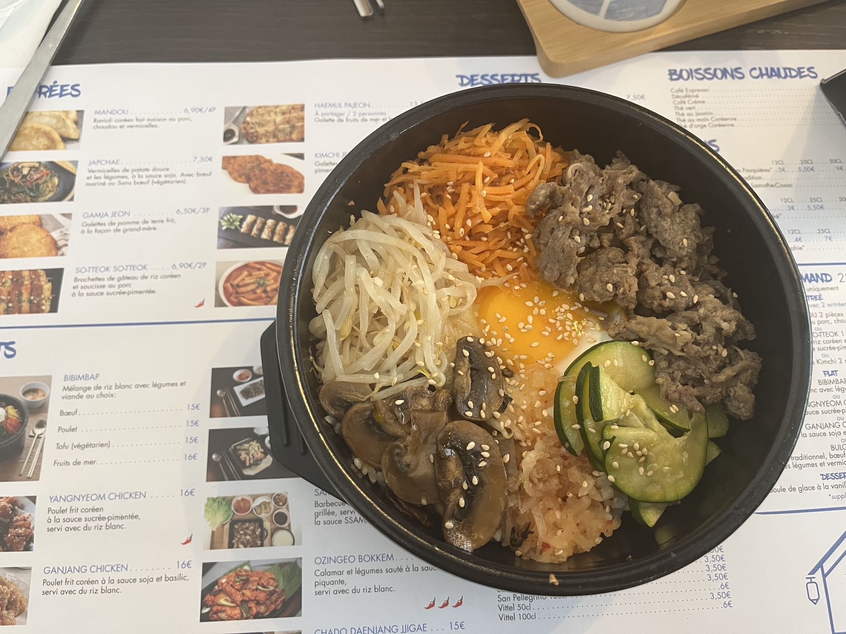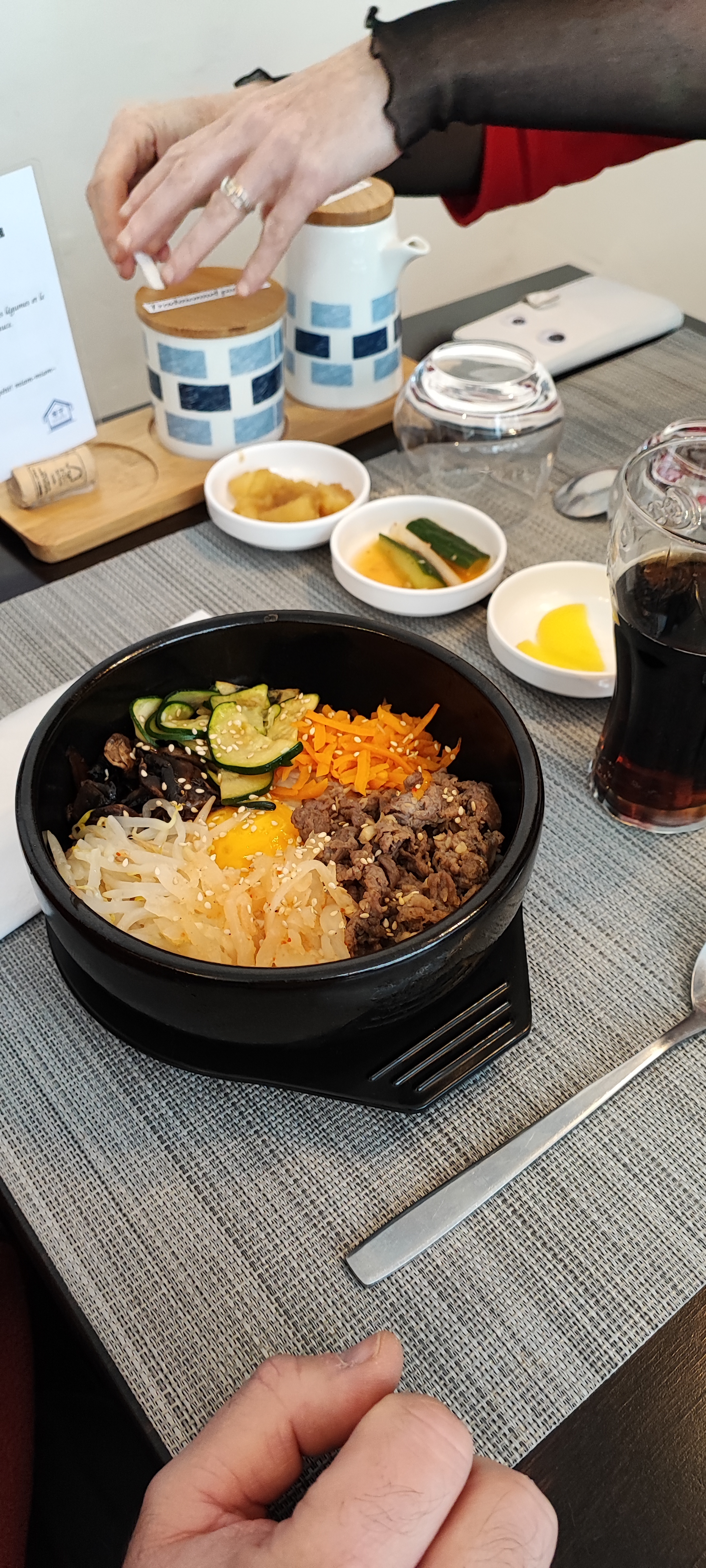 Repas délicieux ,le poulet , absolument canon ,le bibimbap,super et mon boulgogi....une tuerie . Je recommande les yeux fermés si vous aimez la vraie et bonne nourriture coréenne