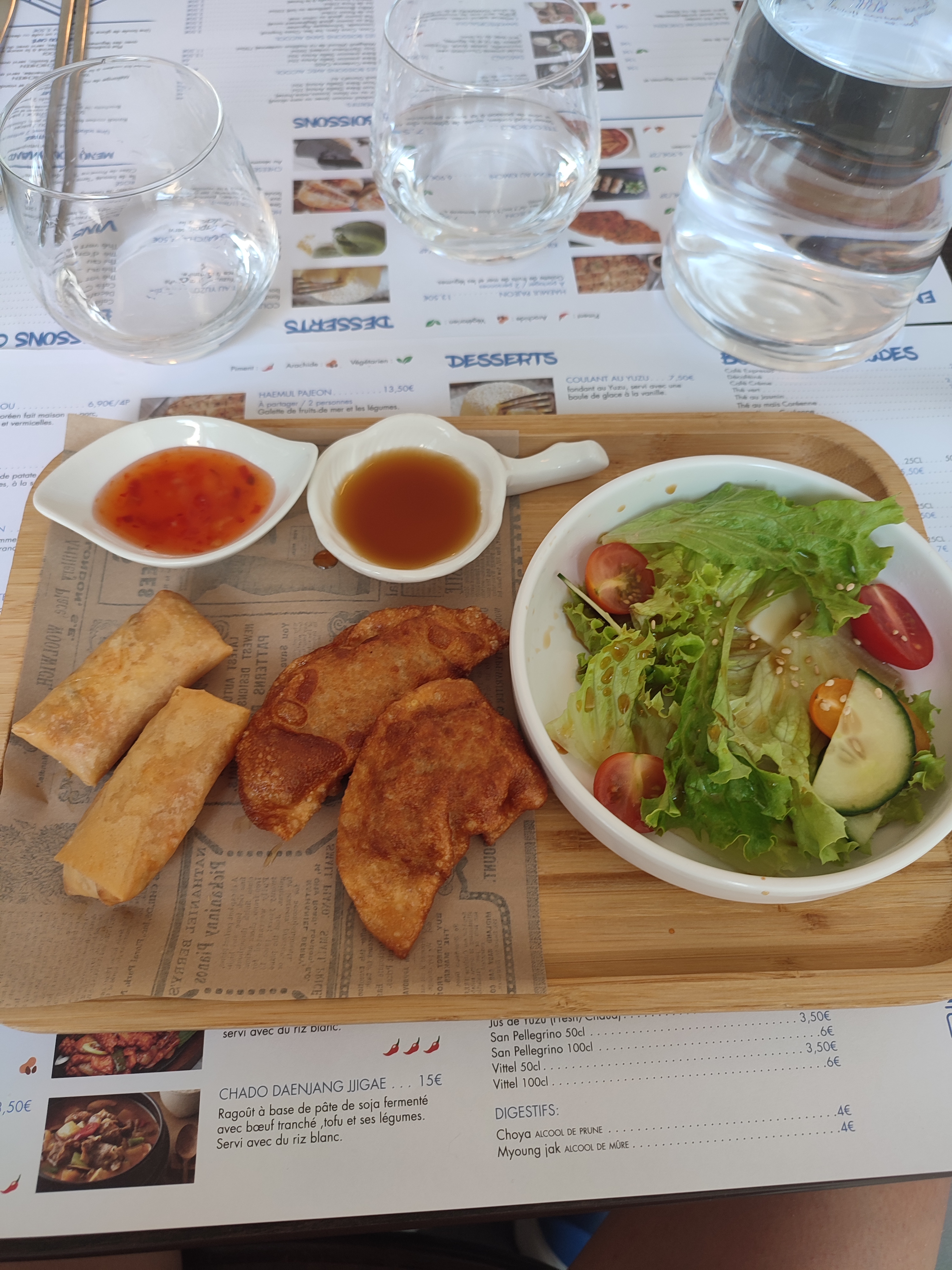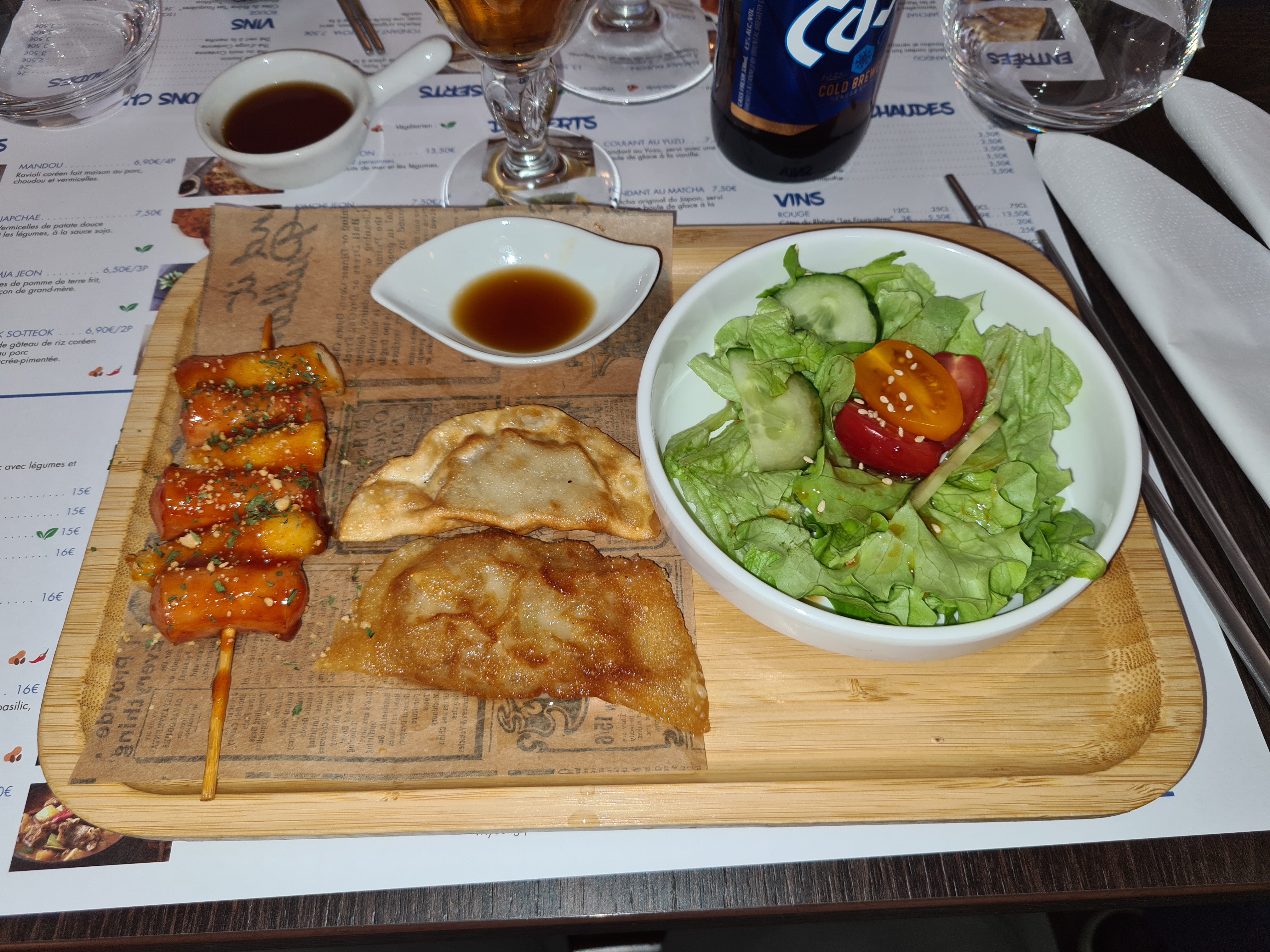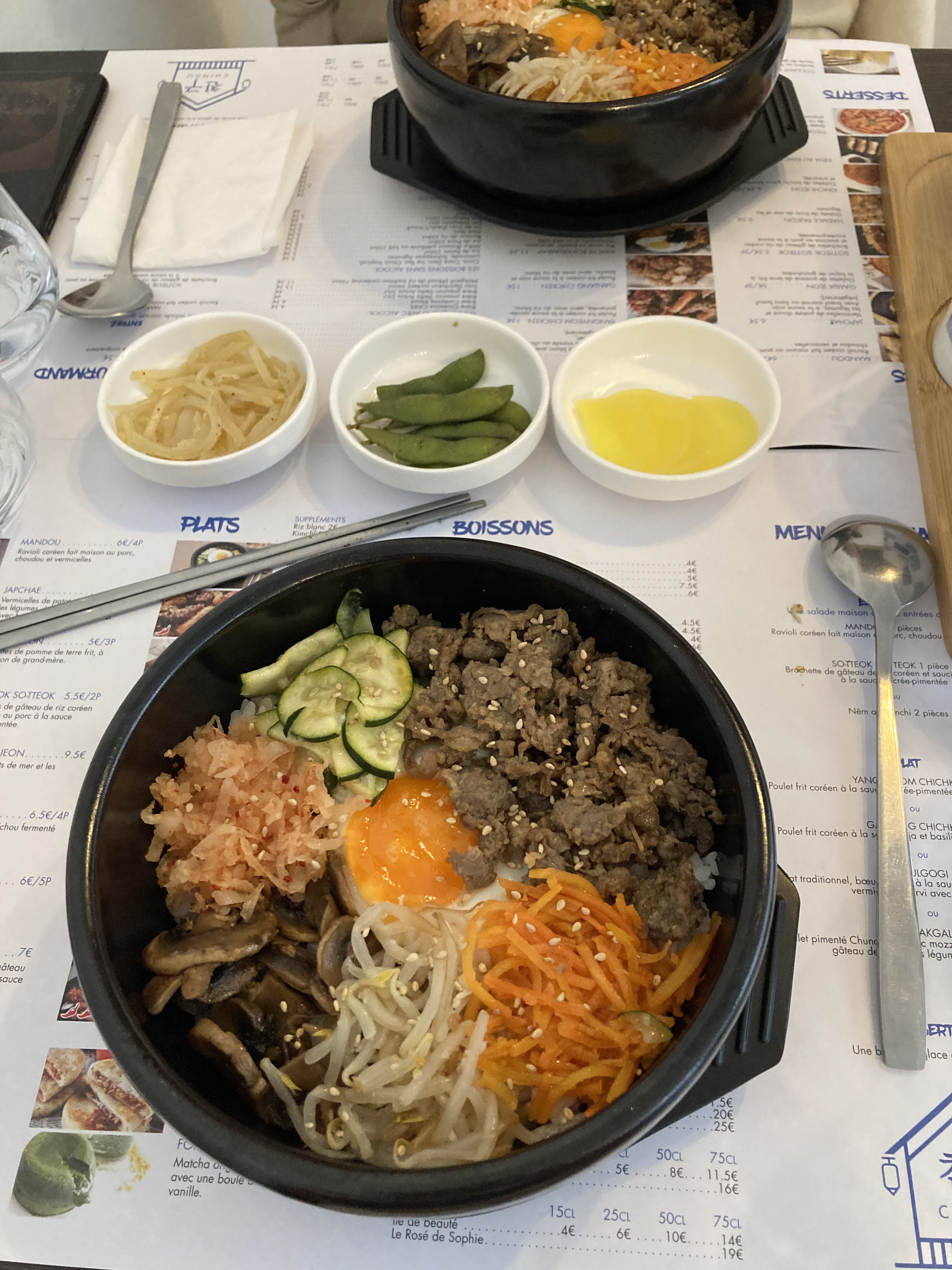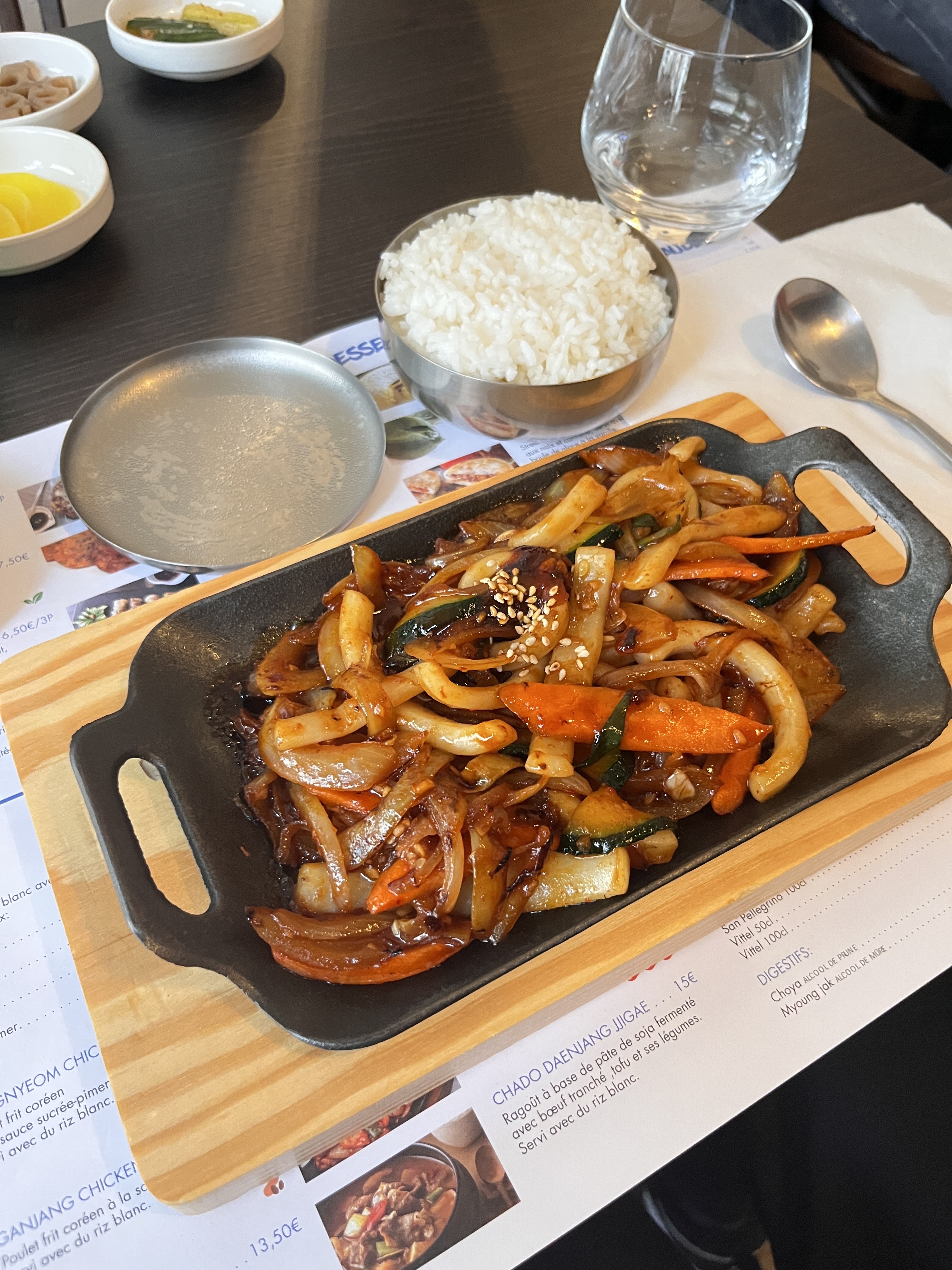 Repas délicieux ,le poulet , absolument canon ,le bibimbap,super et mon boulgogi....une tuerie . Je recommande les yeux fermés si vous aimez la vraie et bonne nourriture coréenne