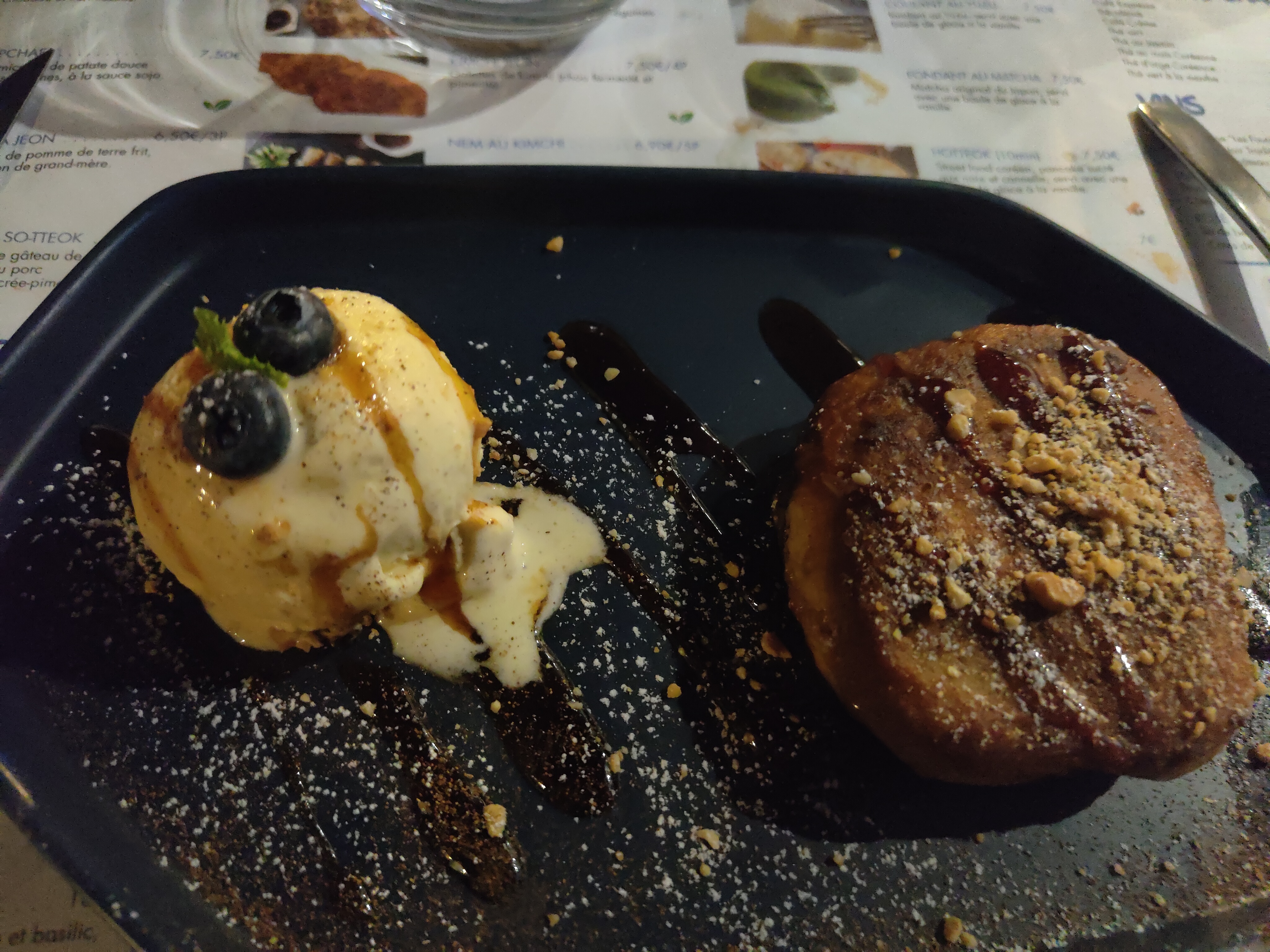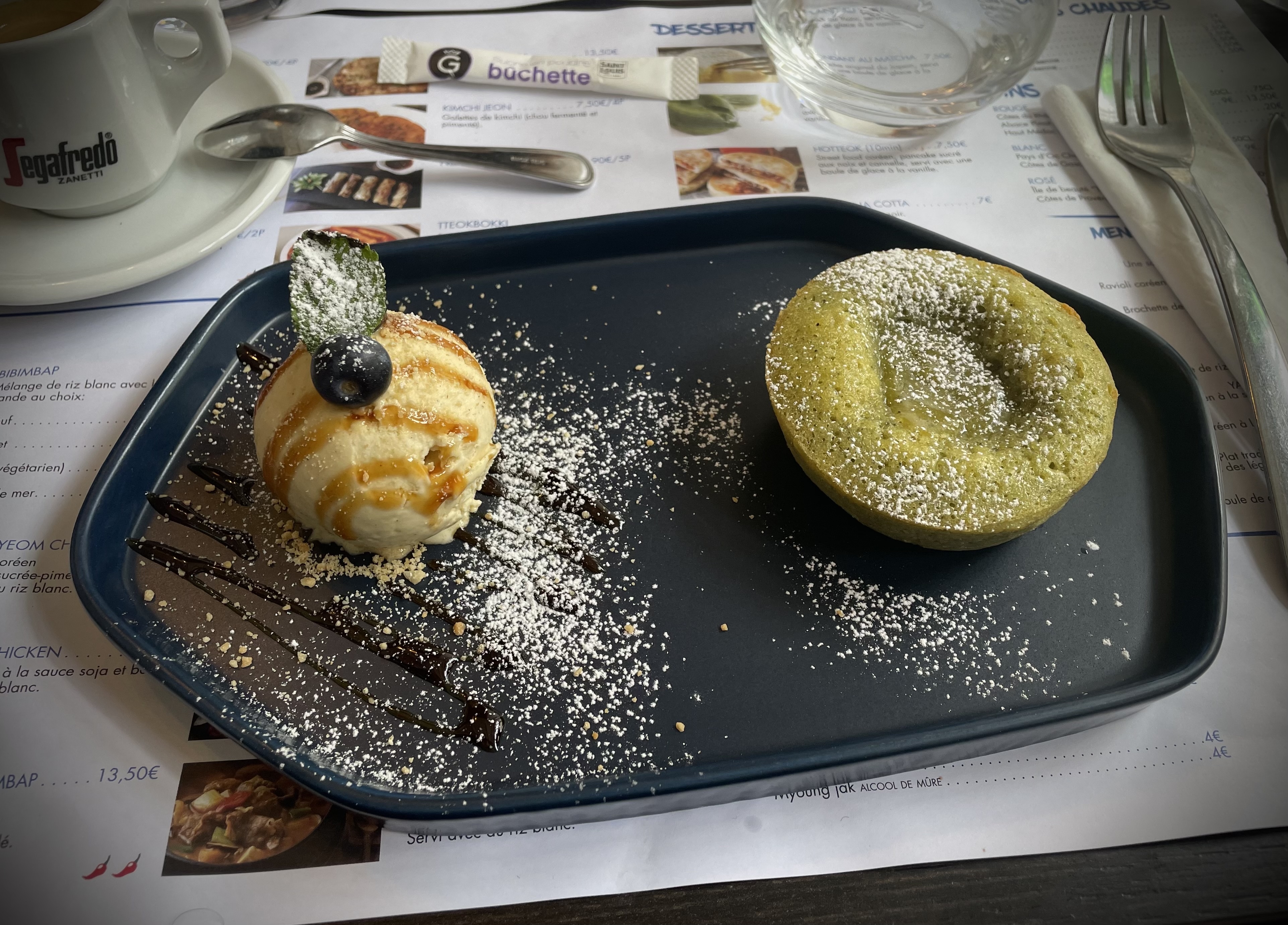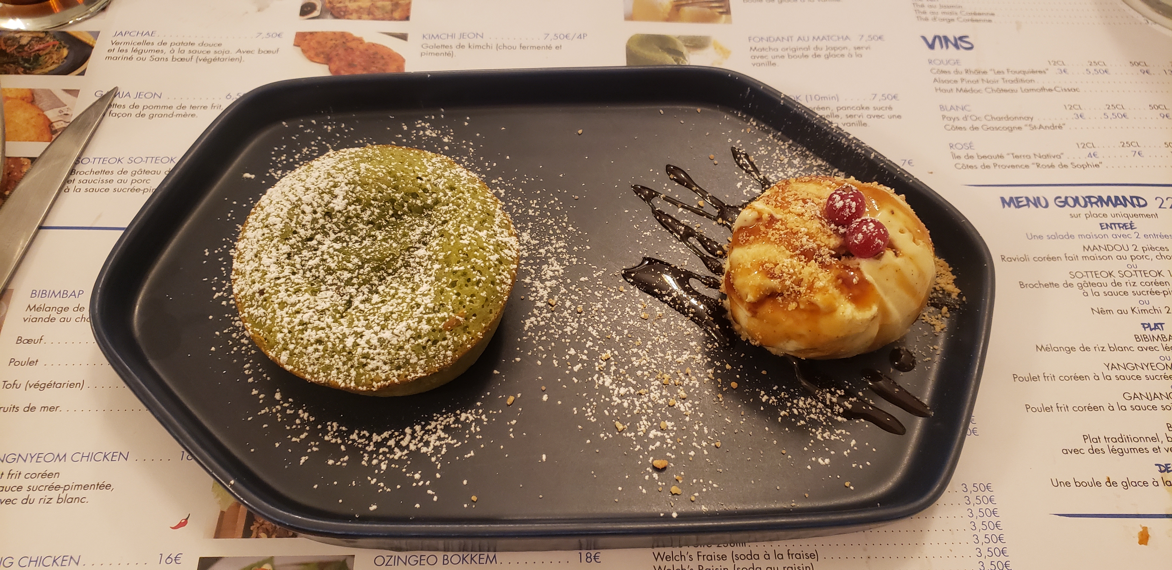 Les plats sont bons on retrouve le goût coréen, c'est agréable. Une bonne surprise: les deux desserts proposés sont excellents: moelleux cannelle ou matcha, avec glace.