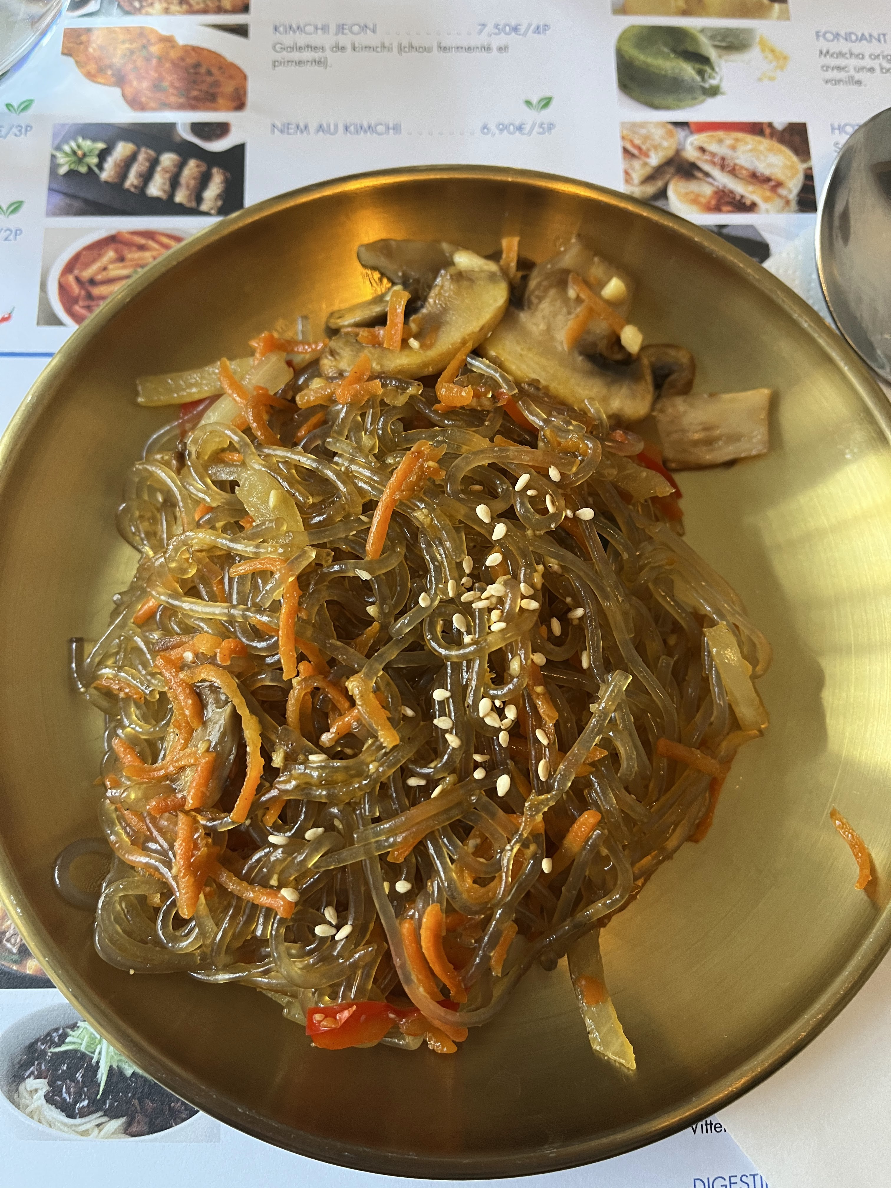 Nous sommes désolés de votre mauvaise expérience. Pour le Japchae c'est une entre ,vous ne pouvez pas vous attendre ce qu'il est la quantite d'un plat.Et vous avez dit que vous commendez Japchae "aux legume" ,donc biensur qu' il n'y a pas de beuf dedans. Cordialement.