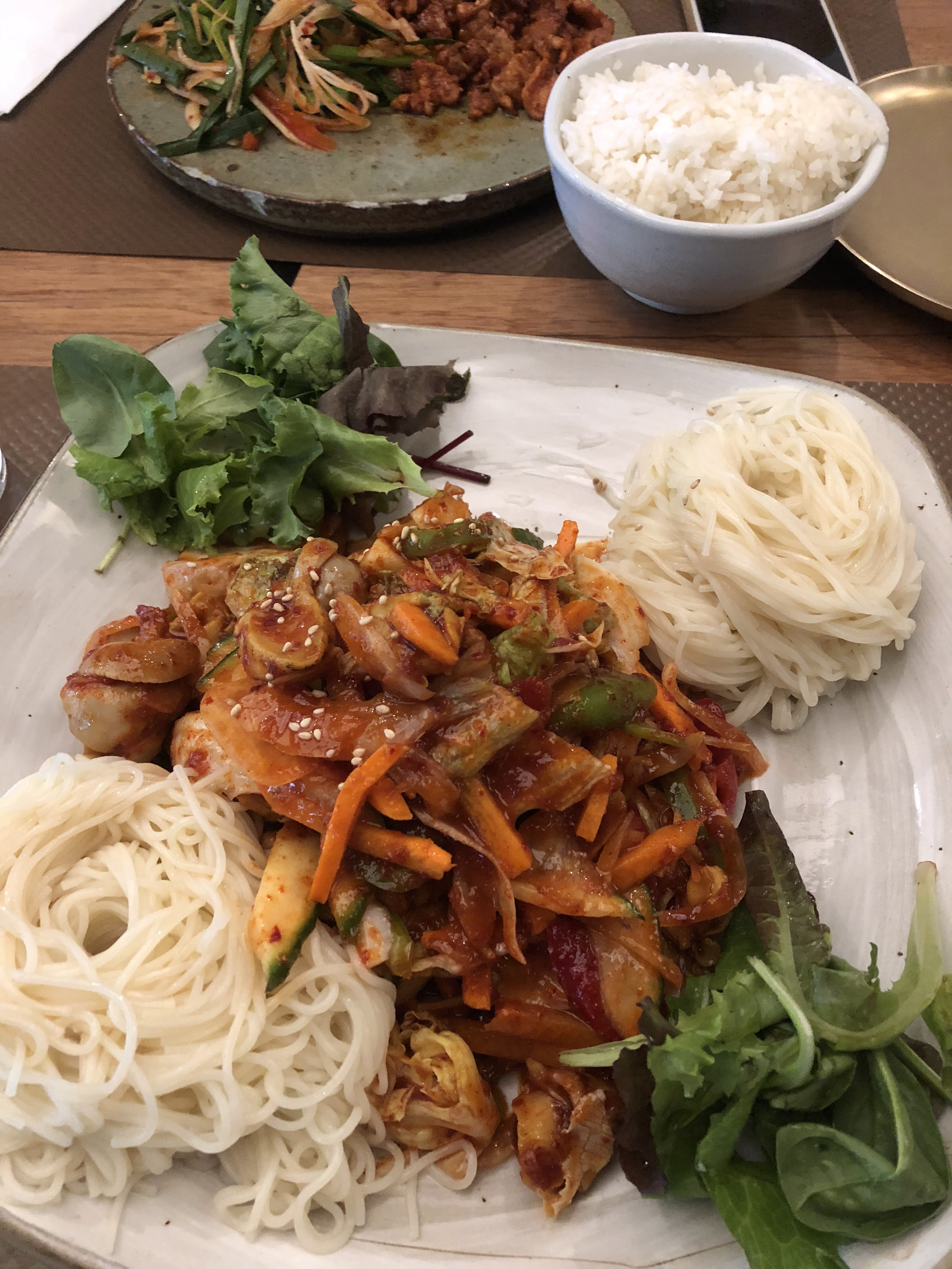 Excellente cuisine je ne connaissais pas la cuisine coréenne c'est bon goûteux et très bien servi!