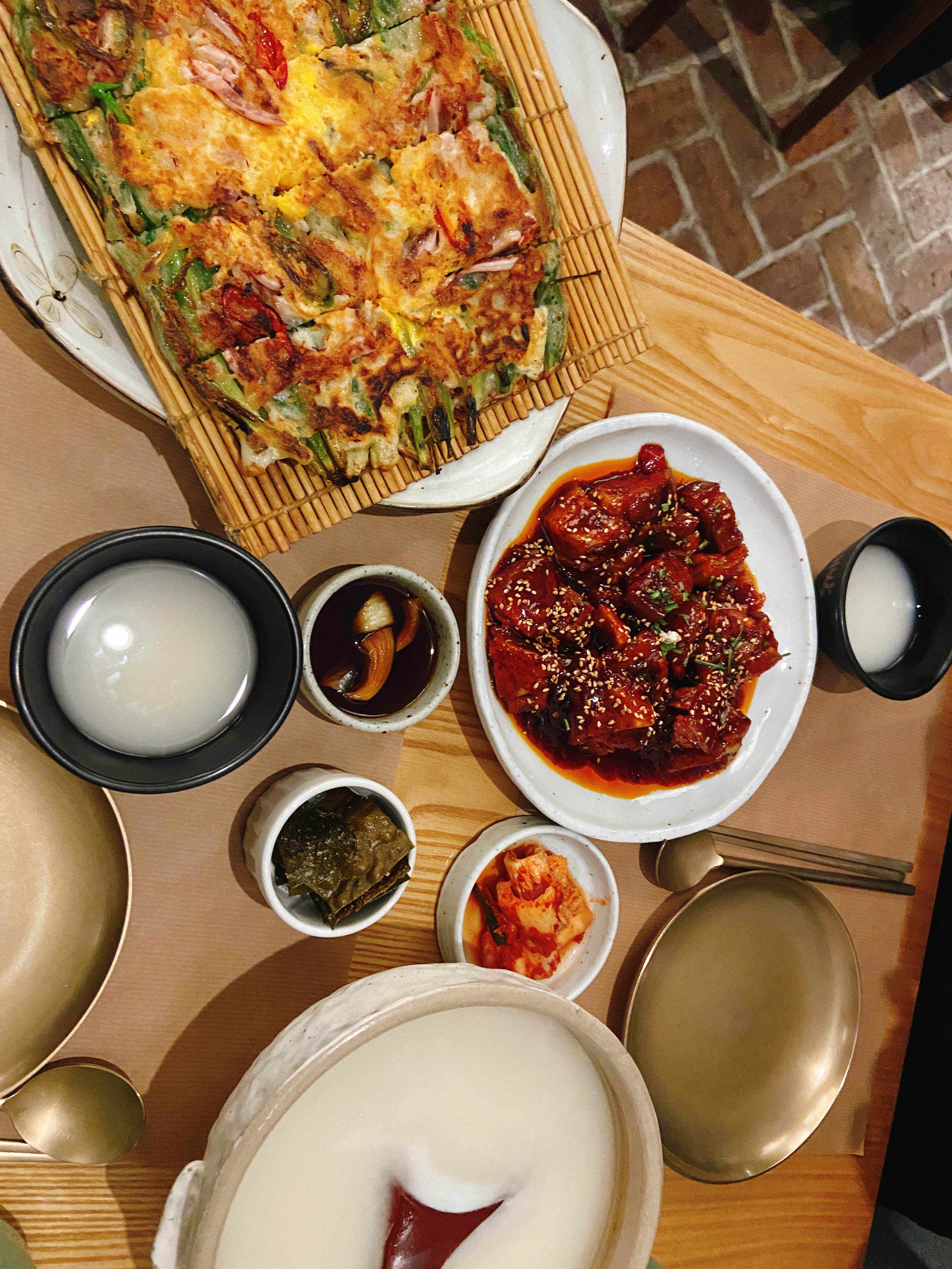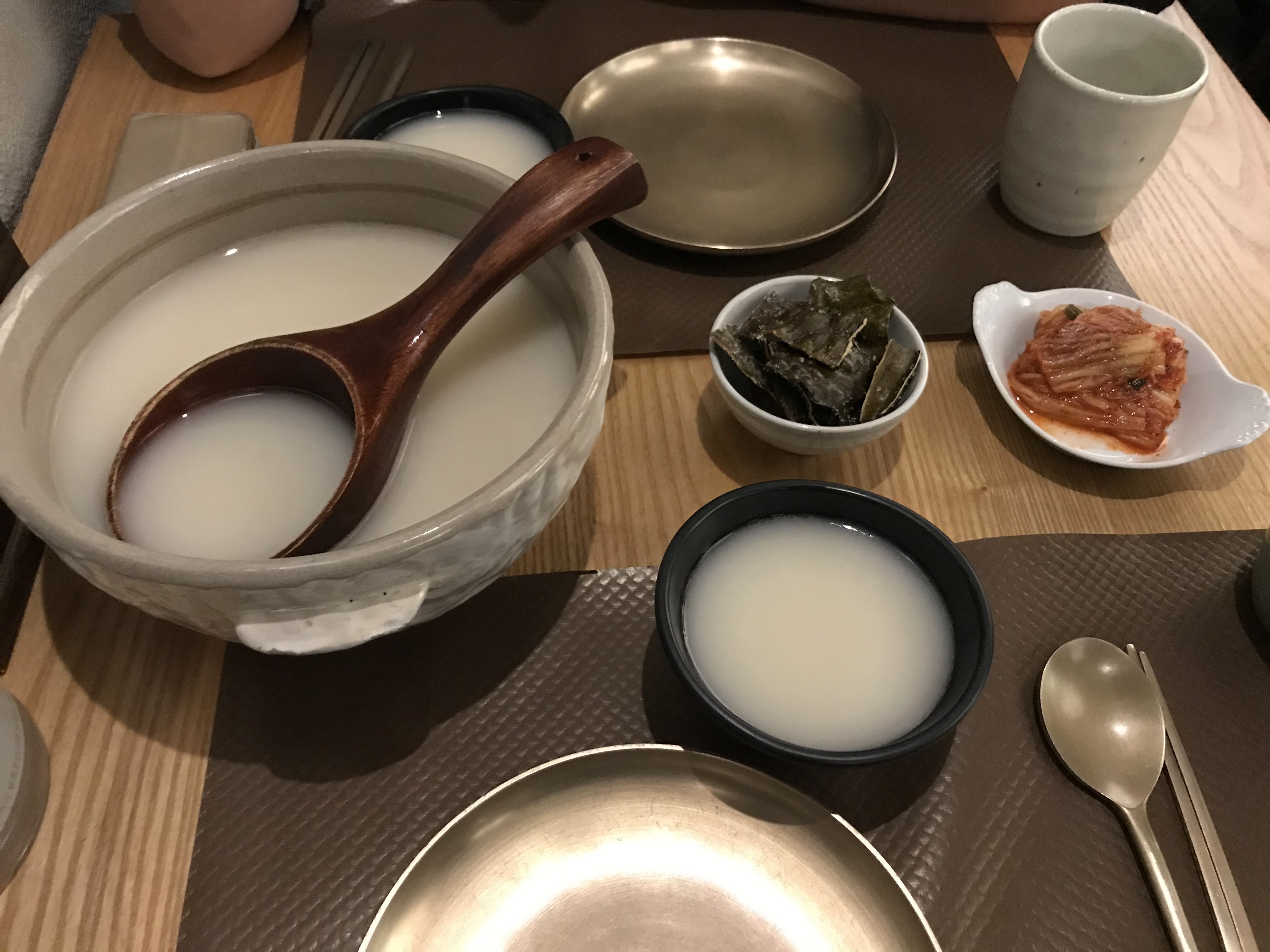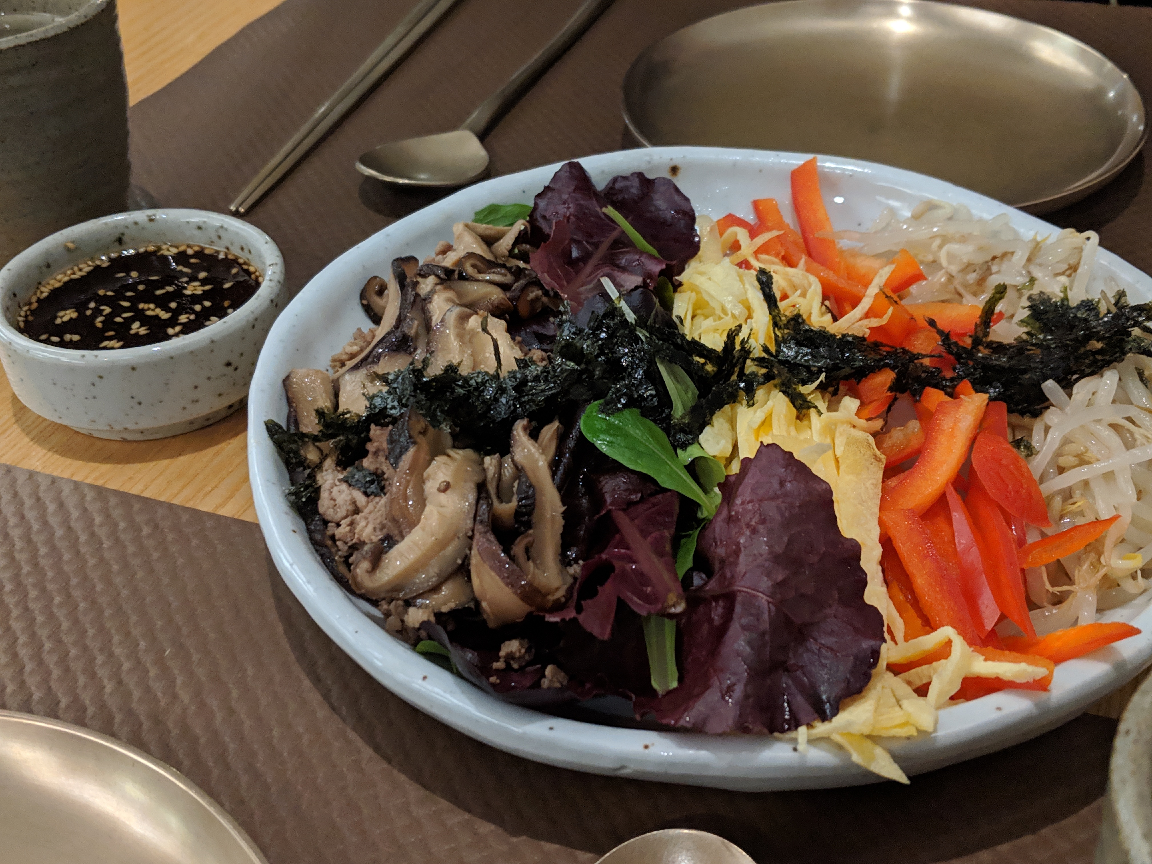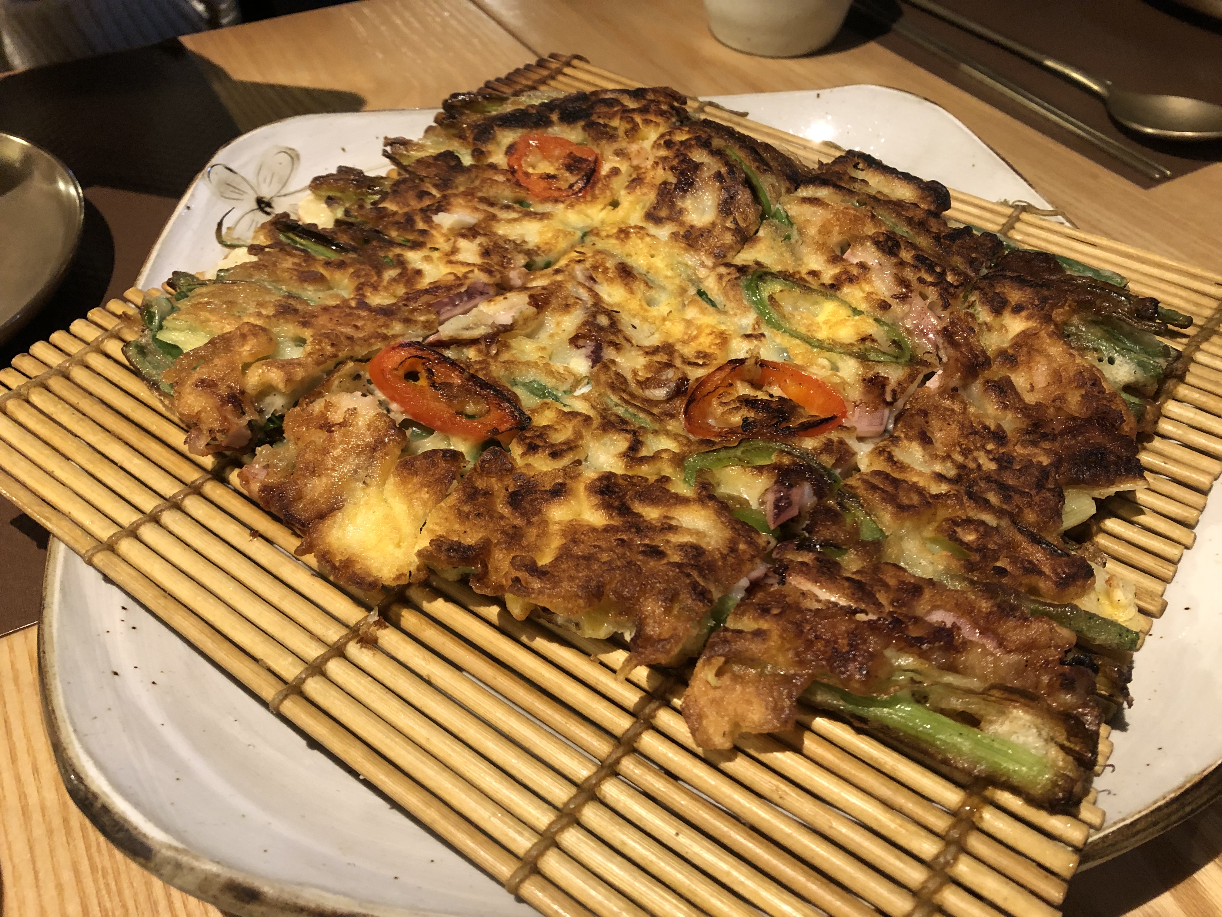 L'ambiance assez sympathique, les serveurs agréables. POURTANT je suis sincèrement déçue parce qu'il n'y avait pas des accompagnants/des petits plats à côté (Banchan) qui sont pour moi essentiels d'une cuisine coréenne. (on m'a expliqué qu'il n'y en a pas pendant le soir et que c'est seulement pour le midi, mais je ne trouve pas ça logique puisque le soir c'est plus cher.) C'était quand même pas mal la qualité de plat, mais ce n'était pas si bon non plus.