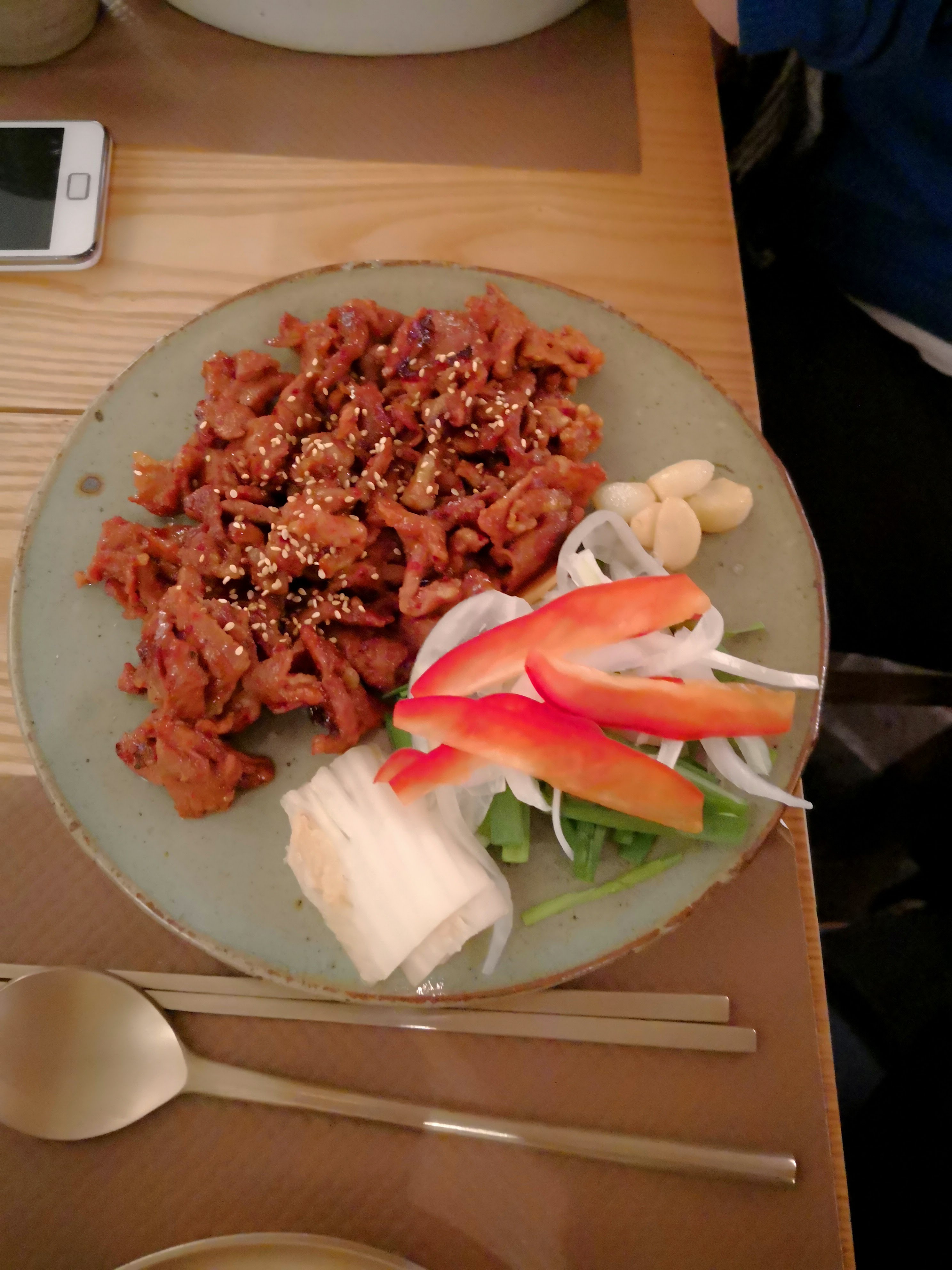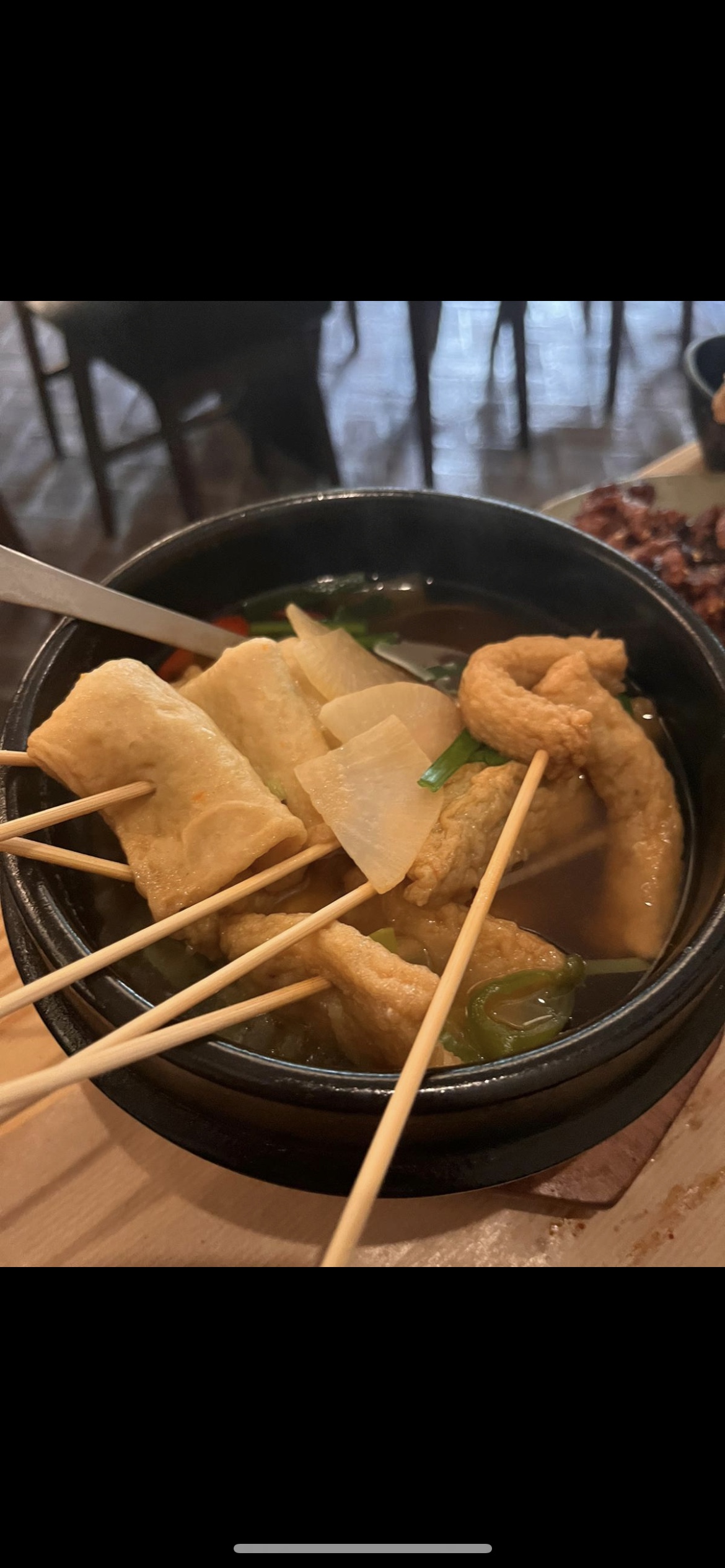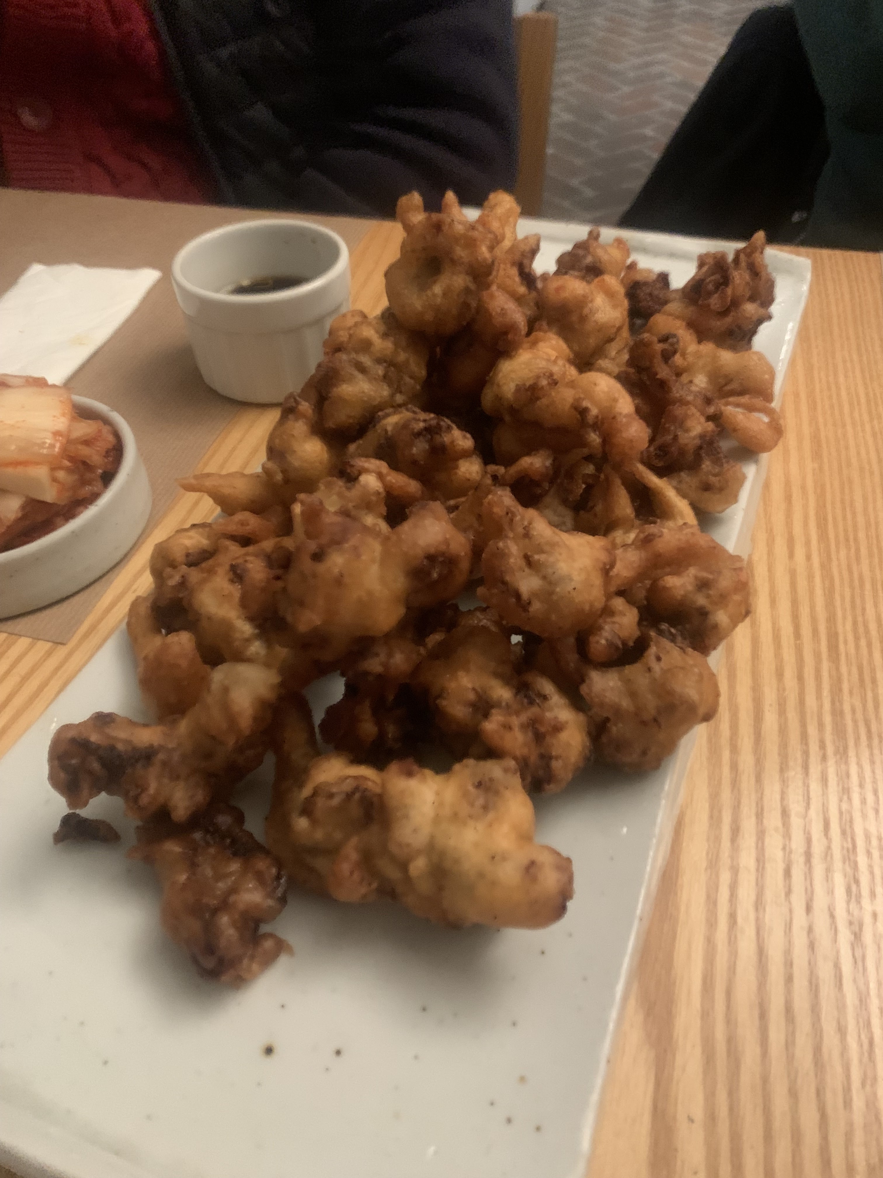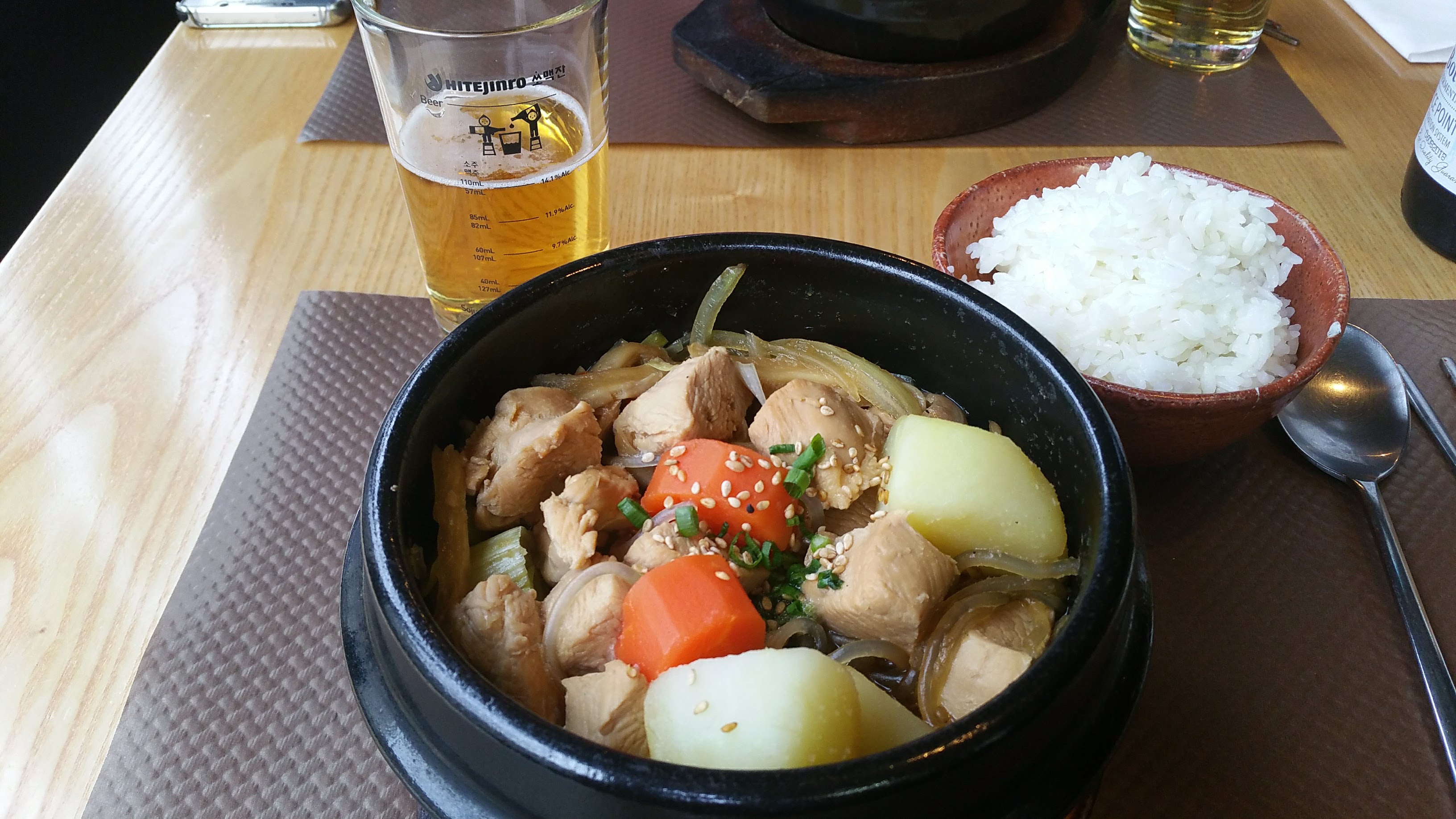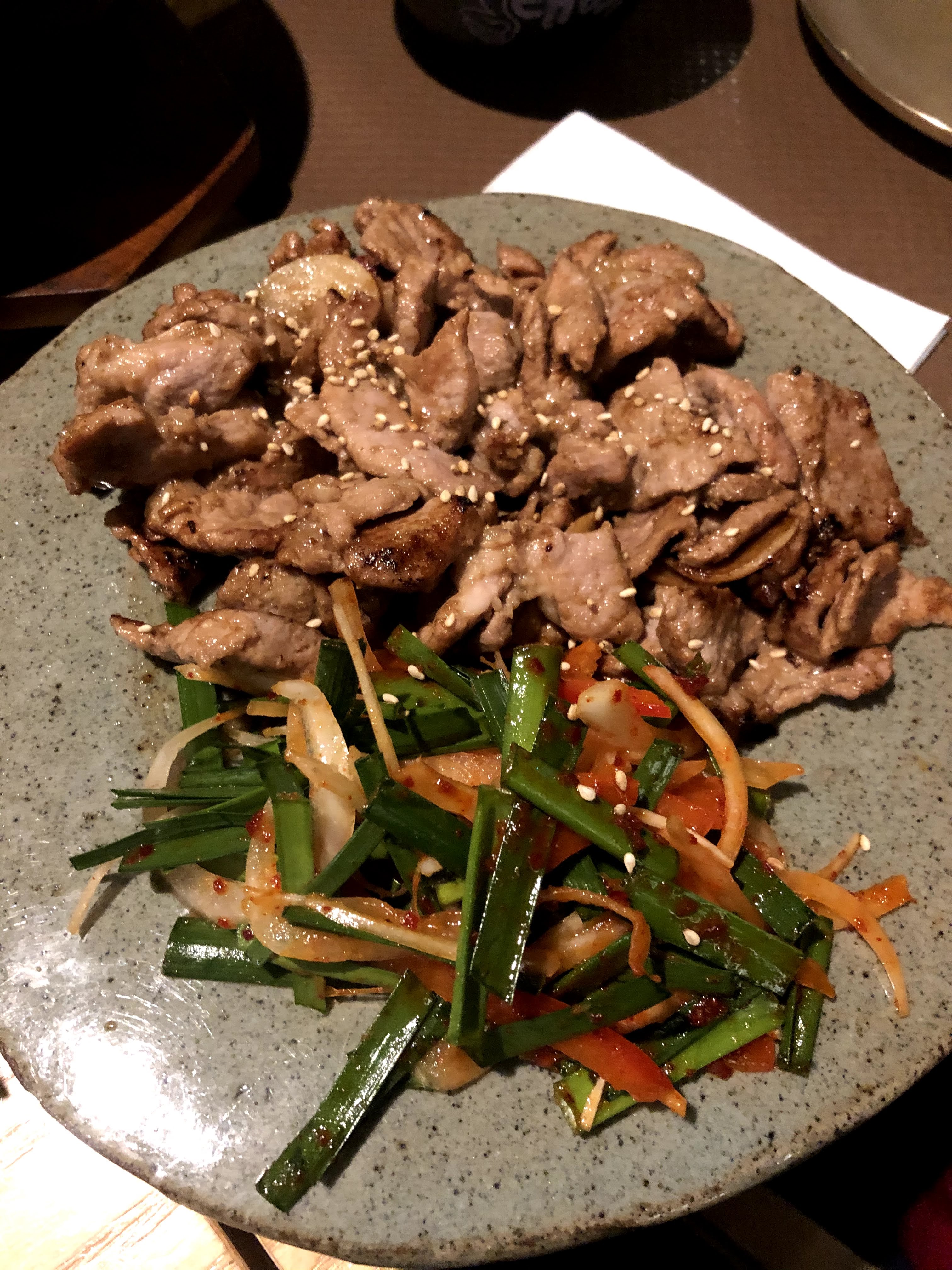 L'ambiance assez sympathique, les serveurs agréables. POURTANT je suis sincèrement déçue parce qu'il n'y avait pas des accompagnants/des petits plats à côté (Banchan) qui sont pour moi essentiels d'une cuisine coréenne. (on m'a expliqué qu'il n'y en a pas pendant le soir et que c'est seulement pour le midi, mais je ne trouve pas ça logique puisque le soir c'est plus cher.) C'était quand même pas mal la qualité de plat, mais ce n'était pas si bon non plus.