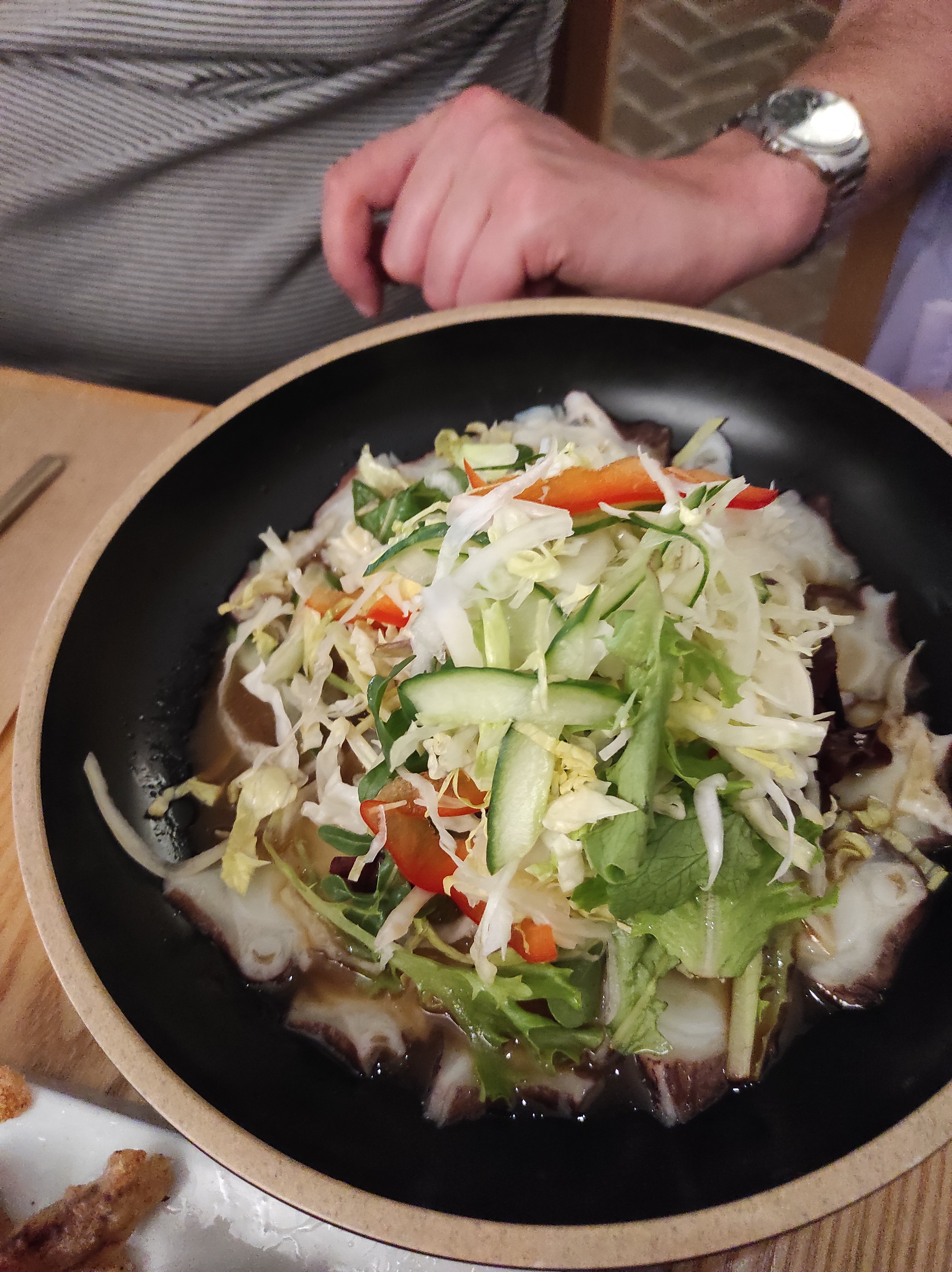 Une belle table, copieux, venir à 4, Nous avons pris à 2 ; - des pieds de porc - poulpe sautés - morceau de bœuf frit Nous n’avions pas fini : Boîte à emporter. Service délicat et aimable. Merci Plats goûteux, épicés. À revenir.