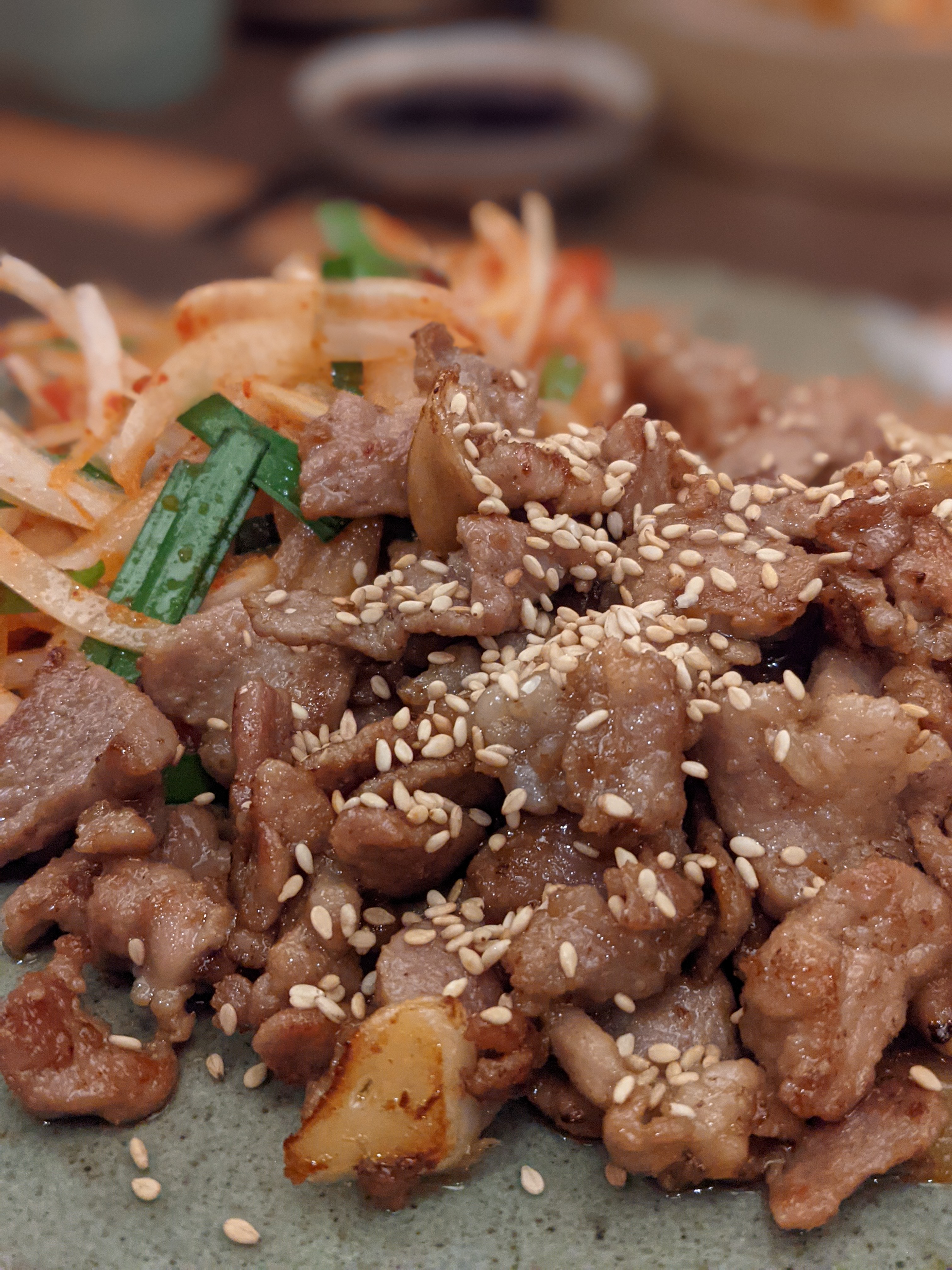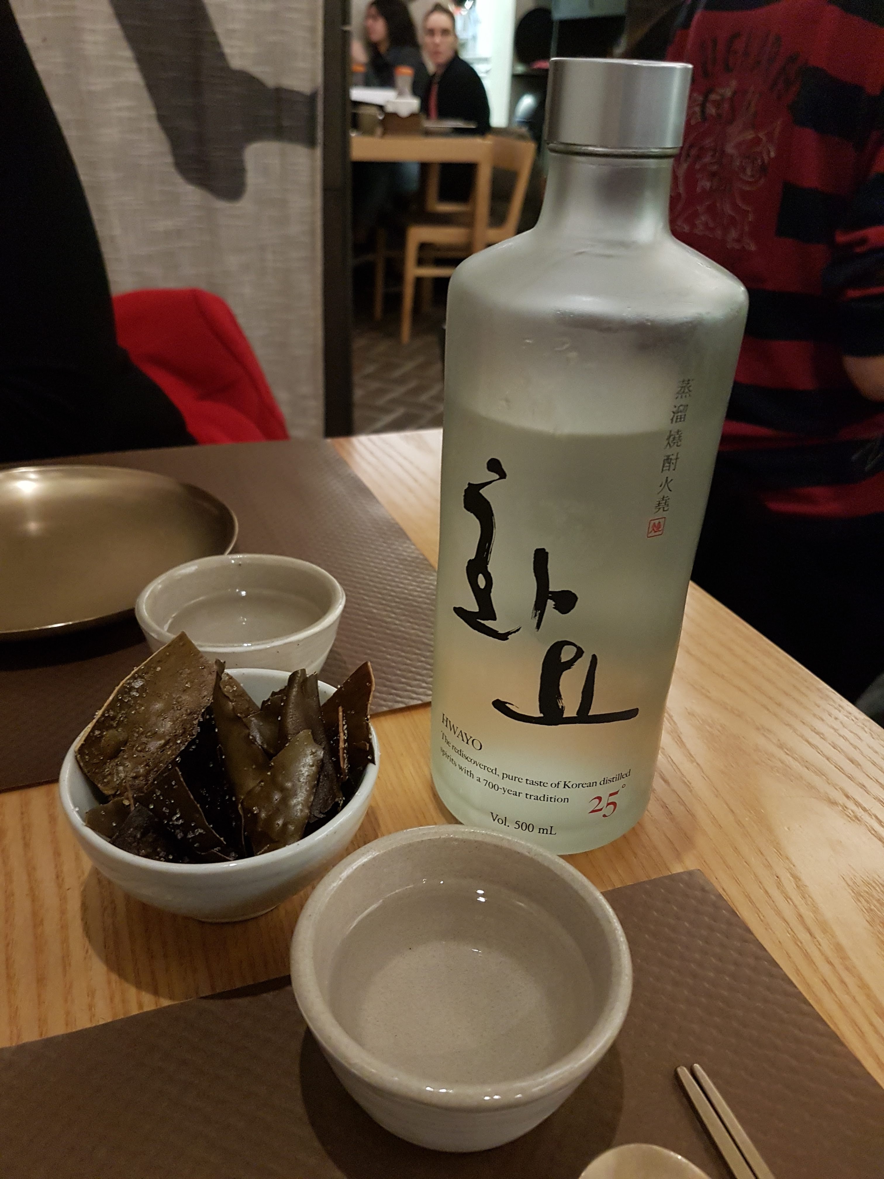Belle découverte. Très bons plats et bon rapport qualité-prix le midi. Service souriant et agréable. En revanche, j'ai commandé un verre de soju - qui est la boisson censée accompagner les repas Coréens (5€ le shot tout de même) et je n'ai pas pu le boire. On m'a dit en fin de repas que c'était plutôt un digestif. Alors que pour être aller en Corée, on boit le soju au cours du repas et il n'est pas fort comme un digestif. Déçue sur ce point.